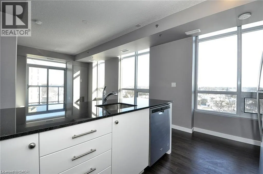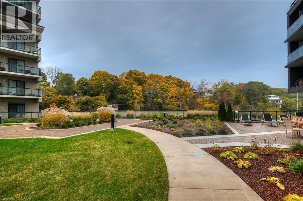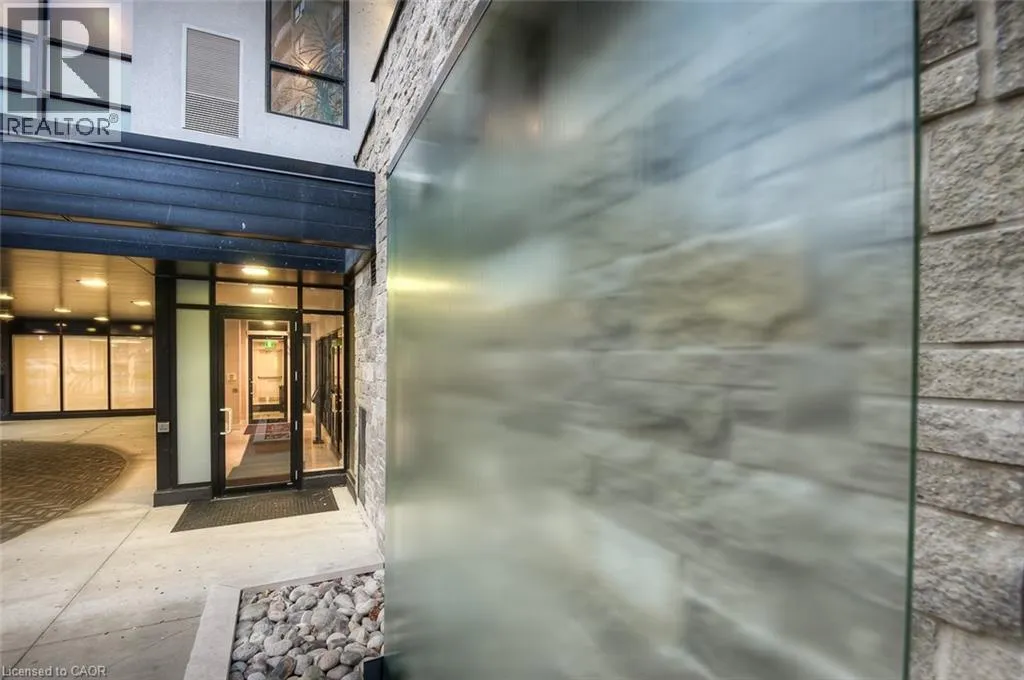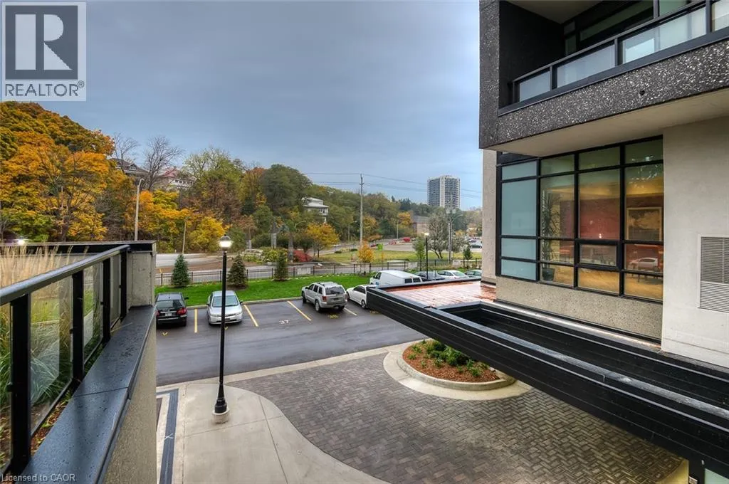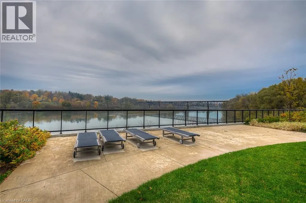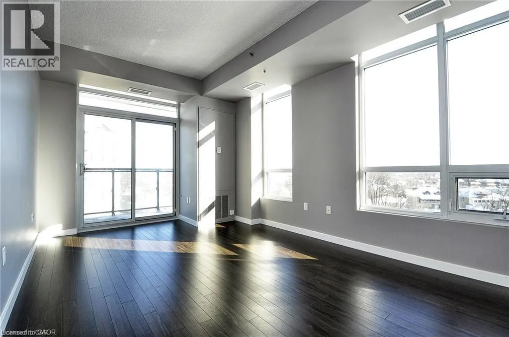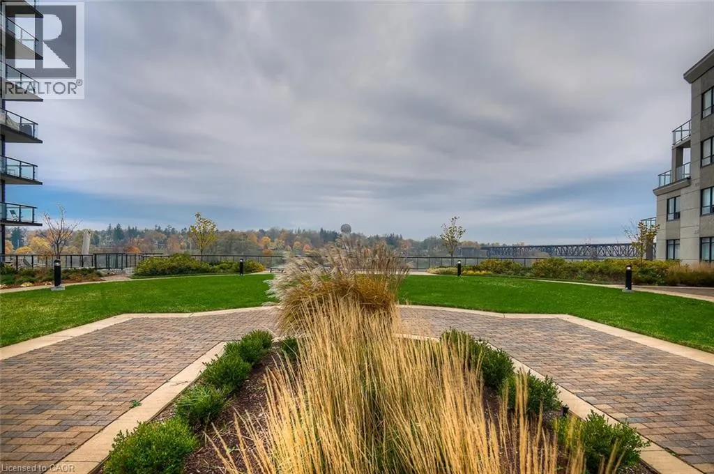 Ainslie St N and Water St N This Stunning 1 bed 1 bath corner end unit offers stunning picturesque views of the Grand River from the 105sq.ft balcony. Additional large airy windows also give you views of the gardens and street, this unit is really a must see to appreciate it. This unit offers laminate flooring, granite countertops, SS appliances and separate storage/laundry room that contains a stackable washer and dryer leaving plenty of room for your storage needs. 2 seperate owned parking spots come with this unit, 1 underground and 1 at the front of the building. A Storage locker, gym and party room round out the added features included. You will be steps away from Shopping, restaurants, trails and the Hamilton Family Theater. (id:27476)