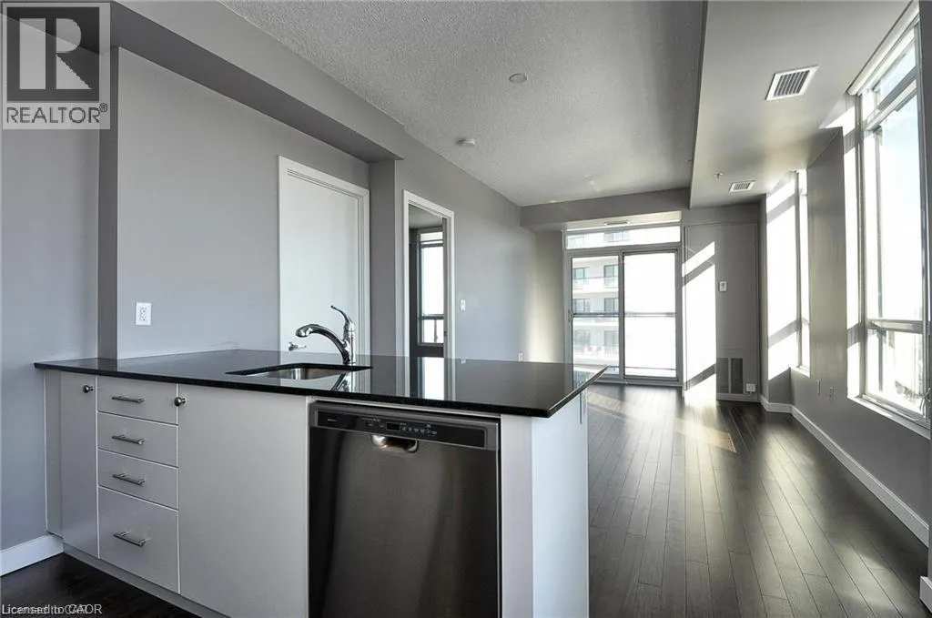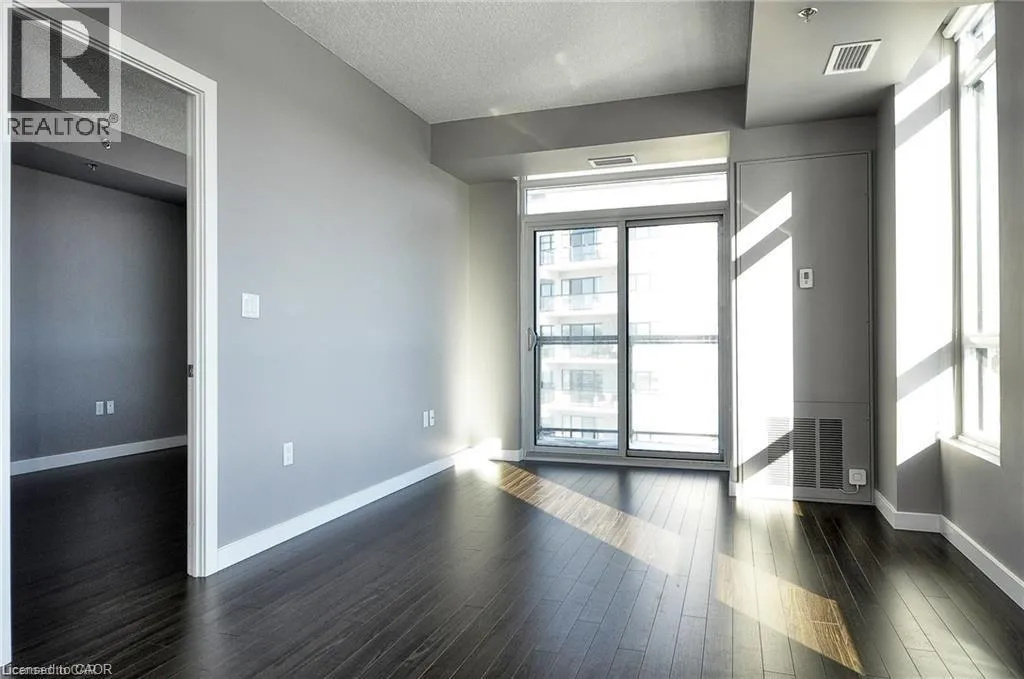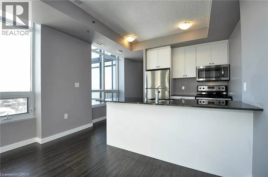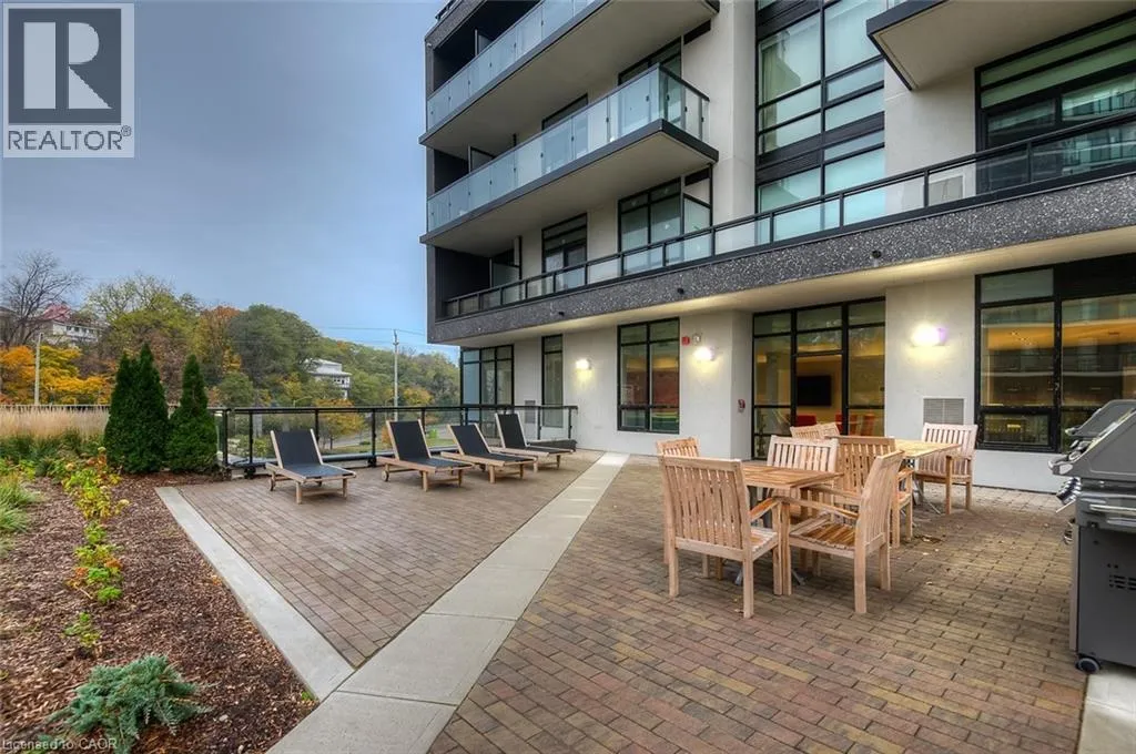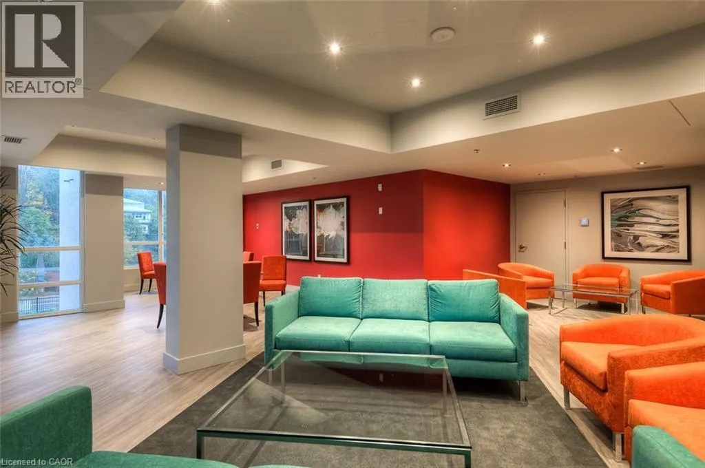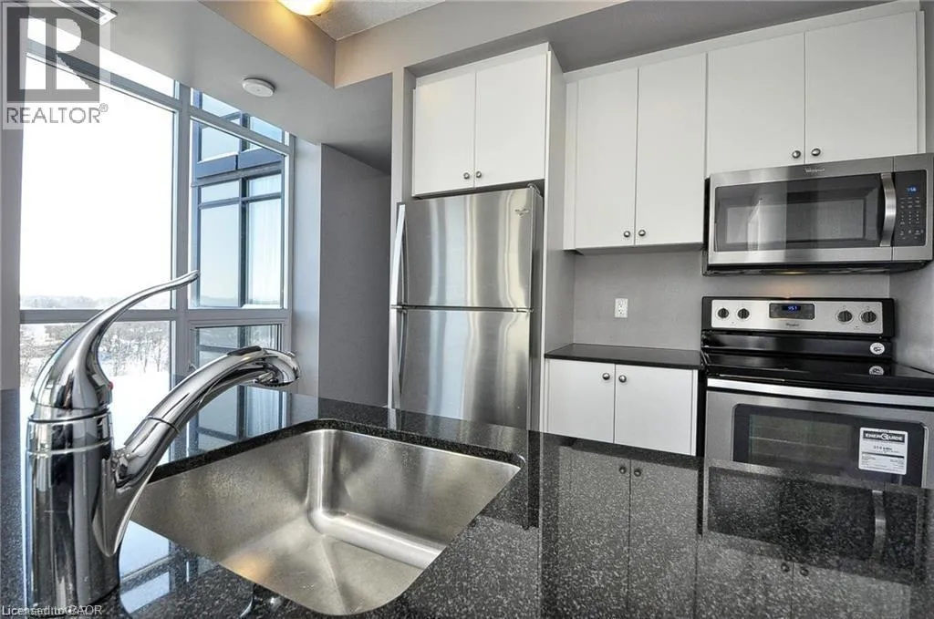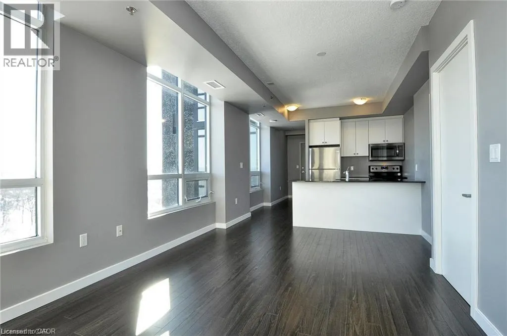 Ainslie St N and Water St N This Stunning 1 bed 1 bath corner end unit offers stunning picturesque views of the Grand River from the 105sq.ft balcony. Additional large airy windows also give you views of the gardens and street, this unit is really a must see to appreciate it. This unit offers laminate flooring, granite countertops, SS appliances and separate storage/laundry room that contains a stackable washer and dryer leaving plenty of room for your storage needs. 2 seperate owned parking spots come with this unit, 1 underground and 1 at the front of the building. A Storage locker, gym and party room round out the added features included. You will be steps away from Shopping, restaurants, trails and the Hamilton Family Theater. (id:27476)