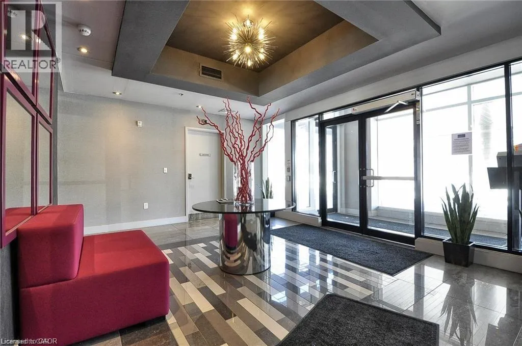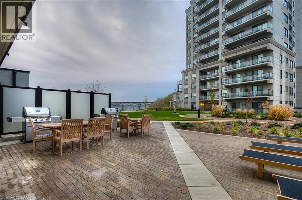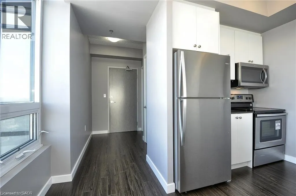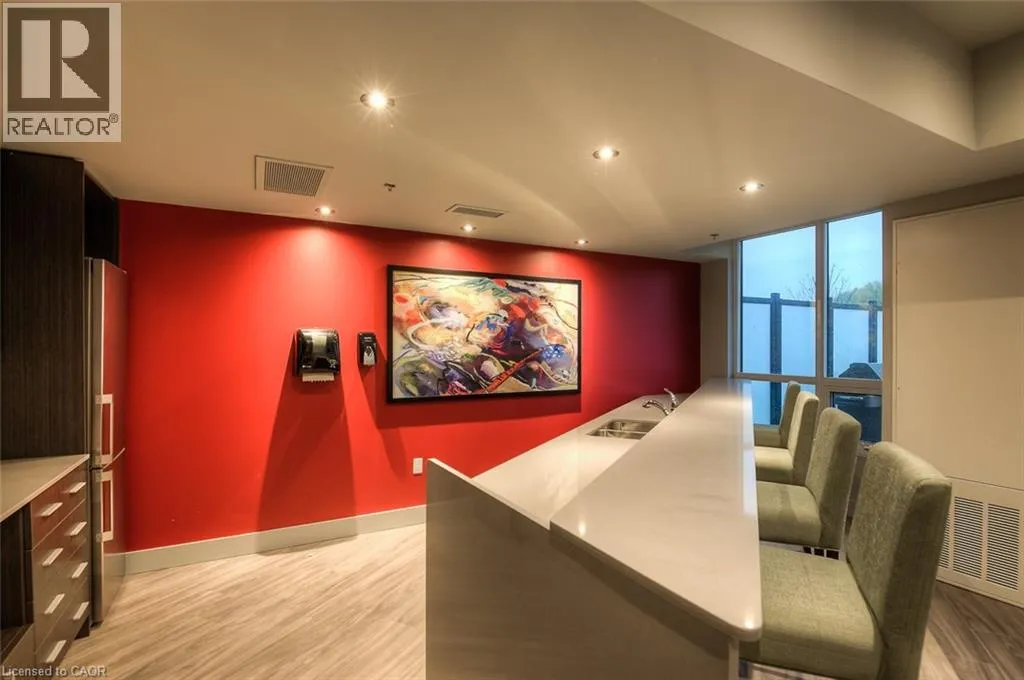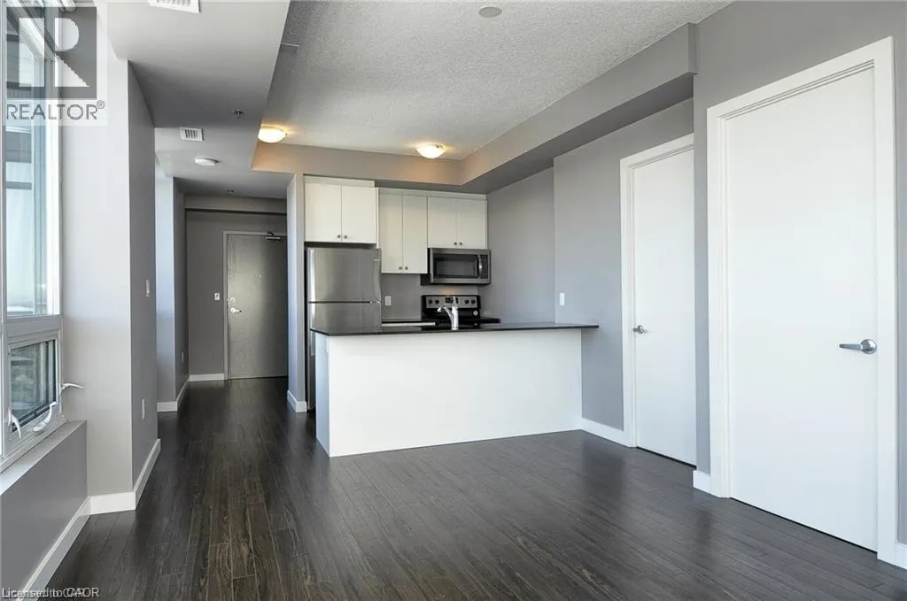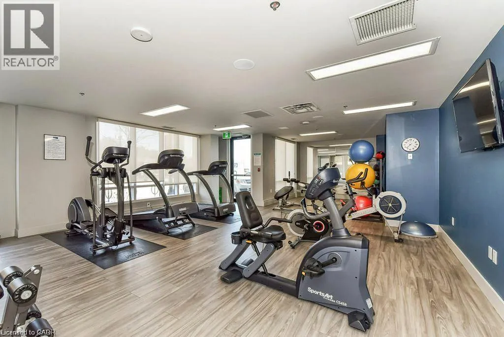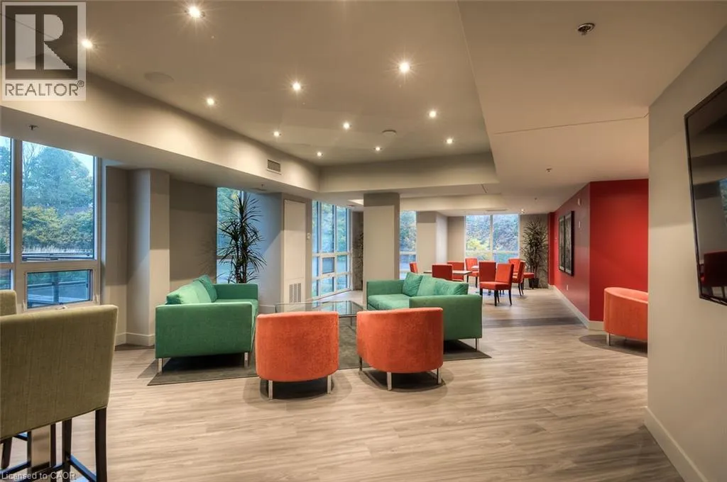 Ainslie St N and Water St N This Stunning 1 bed 1 bath corner end unit offers stunning picturesque views of the Grand River from the 105sq.ft balcony. Additional large airy windows also give you views of the gardens and street, this unit is really a must see to appreciate it. This unit offers laminate flooring, granite countertops, SS appliances and separate storage/laundry room that contains a stackable washer and dryer leaving plenty of room for your storage needs. 2 seperate owned parking spots come with this unit, 1 underground and 1 at the front of the building. A Storage locker, gym and party room round out the added features included. You will be steps away from Shopping, restaurants, trails and the Hamilton Family Theater. (id:27476)