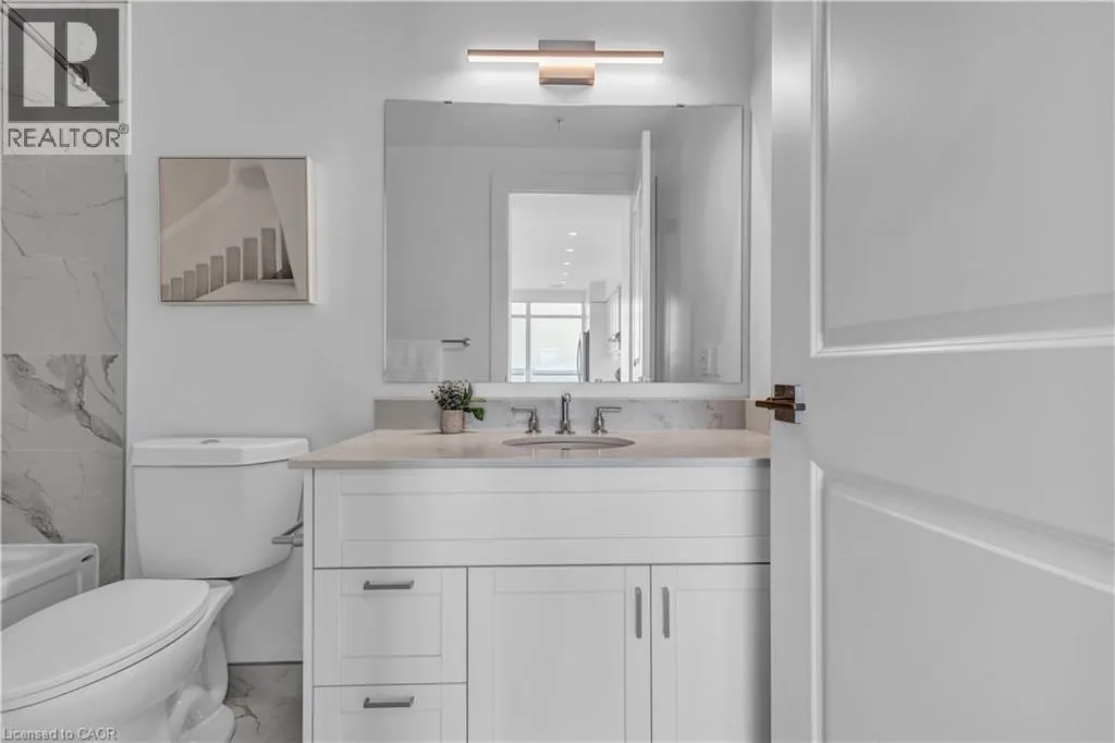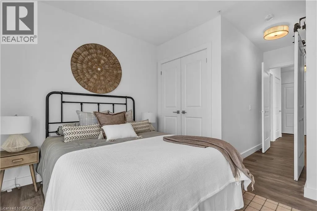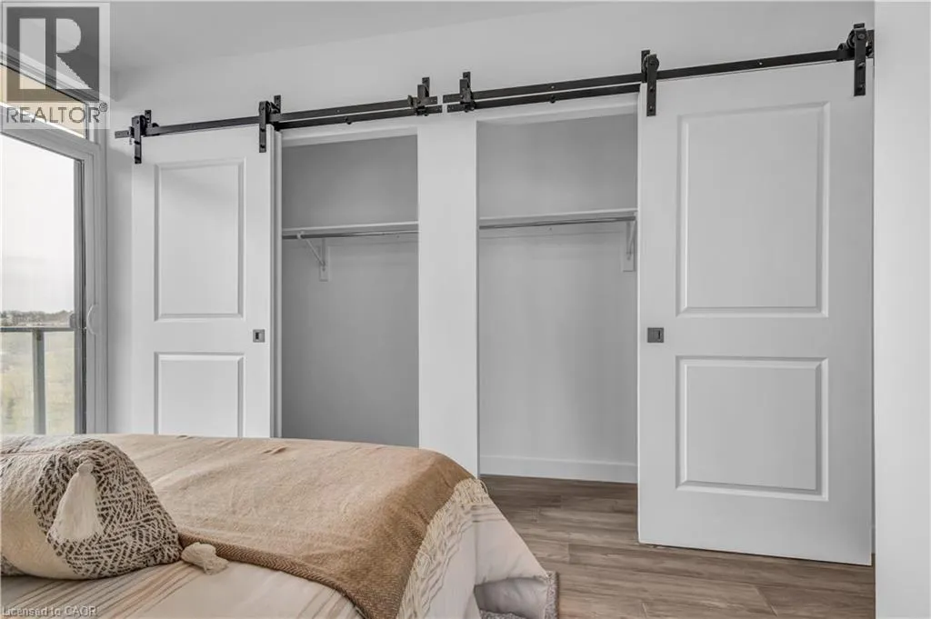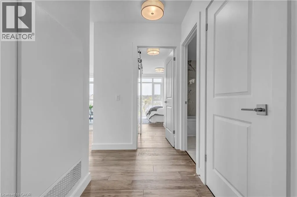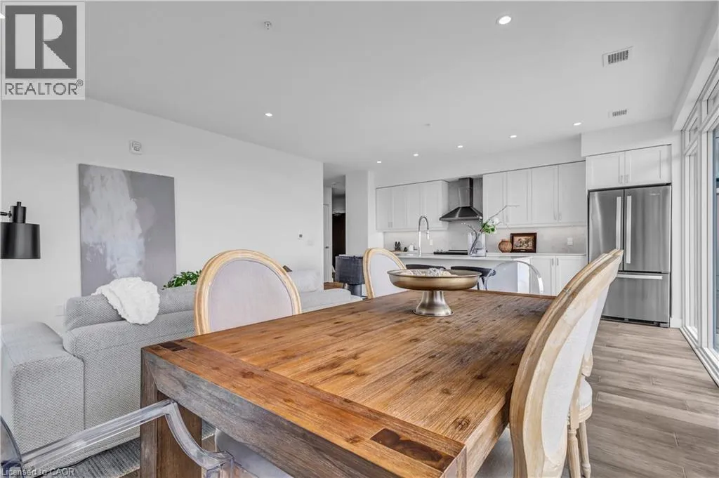 St Andrews St to Glebe St 2 BED, 2 BATH CONDO IN THE HIGHLY DESIRED GASLIGHT DISTRICT! This upgraded 1,126 sq. ft. unit offers impressive views of the Grand River and Gaslight Square. Featuring 9-foot ceilings and an open-concept layout, the kitchen and dining area include shaker-style cabinetry, quartz countertops, backsplash, and upgraded appliances. Enjoy premium engineered hardwood throughout, large windows providing plenty of natural light, and in-suite laundry for convenience. Step out onto the spacious balcony with access from both the kitchen and primary bedroom â perfect for taking in the panoramic city views. This unit includes two underground parking spaces and access to exceptional building amenities such as a fitness centre, games room, study/library, and an expansive outdoor terrace with pergolas, fire pits, and BBQ areas overlooking Gaslight Square. (id:27476)