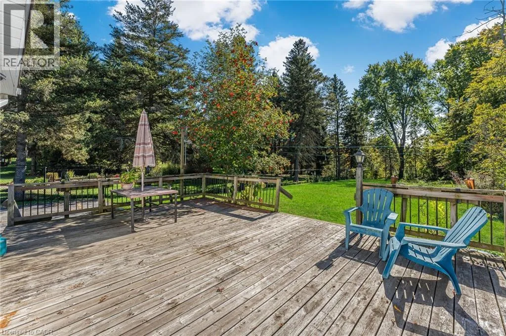 King St E to Riverbank Dr Outstanding opportunity on a .71-acre property with 63 ft frontage and 492 ft depth, extending beyond the fenced yard to a creek. Enjoy a rare âcountry-likeâ setting within city limits, just steps to the Grand River, canoeing, and the Walter Bean Trail system, while being minutes to amenities, Highway 401, and Highway 8. Features include a large sundeck with scenic views, open-concept living/dining room, some newer windows, 2 main-floor bedrooms plus laundry, and a 3rd bedroom on the finished lower level. Lower level also offers a spacious rec room, separate games room with bar, and workshop. Complete with a double garage, abundant storage, and parking for several vehicles - this home blends tranquility and convenience in one exceptional property. (id:27476)