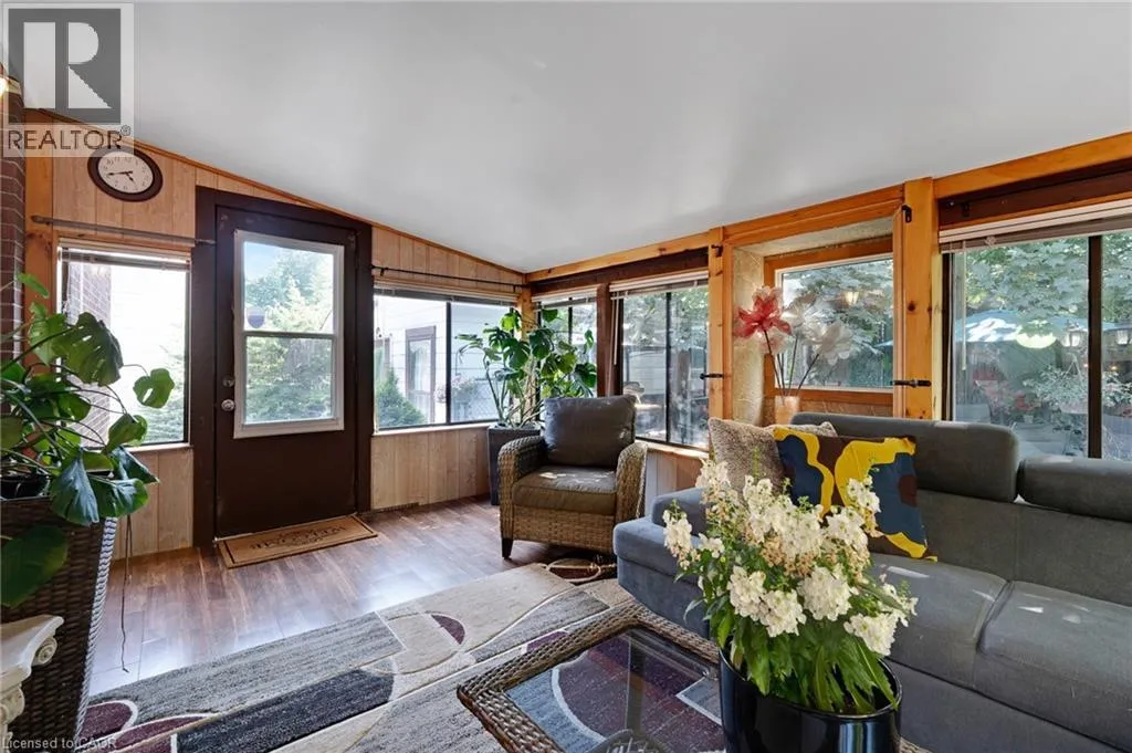 Concession Street to Centre Street Welcome to 30 Centre Street â a charming and beautifully maintained 1.5-storey detached home in the heart of Cambridge. This inviting property blends character with modern comfort. The main floor features a convenient bedroom, recently refinished hardwood floors in the living room, and a cozy natural gas fireplace that creates a warm and welcoming atmosphere. Just off the dining room, the sunroom offers a peaceful retreat with a gas stove and picturesque views of the private backyard gardens and flagstone patio â perfect for morning coffee or quiet evenings. Upstairs, youâll find two generously sized bedrooms filled with natural light. The lower level provides additional versatile space, ideal for a home office, gym, or recreation area. Outside, the landscaped yard and stone patio create a serene setting for entertaining or relaxing. Youâll also appreciate plenty of parking along with the oversized single-car garage, offering both convenience and extra storage space. With its prime location near downtown Cambridge, riverside trails, schools, shopping, and dining, this home is the perfect blend of comfort, charm, and convenience. Donât miss your chance to make 30 Centre Street your new home â book your private showing today! (id:27476)