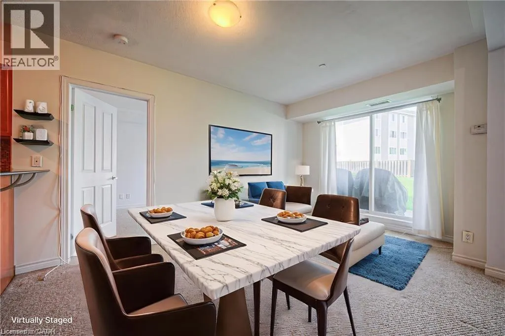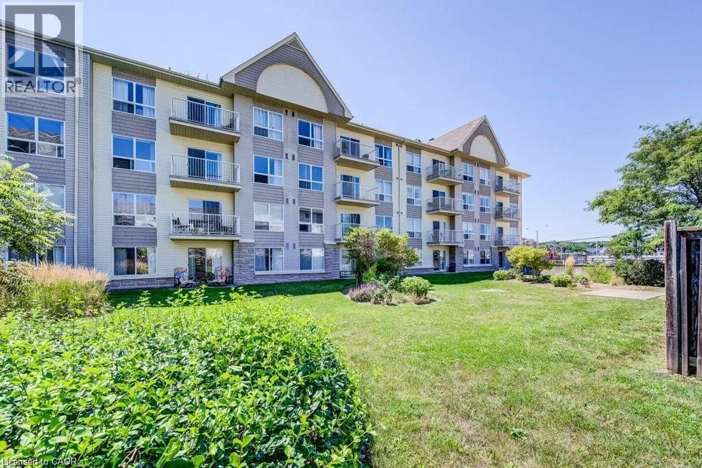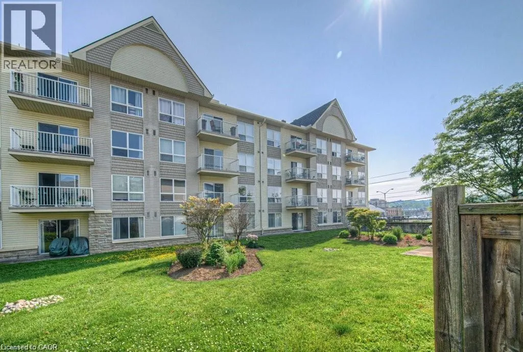 WELLINGTON AND MAIN Welcome to effortless downtown living in the heart of historic Galt! This polished and thoughtfully upgraded condominium offers the perfect blend of style, comfort, and convenience ideal for professionals, downsizers, or first-time buyers. Step inside and enjoy a well-designed layout featuring in-suite laundry, an open-concept kitchen with a granite dining bar, upgraded cabinetry, and a stylish tile backsplash. Durable ceramic flooring runs through the foyer, kitchen, and bathrooms, adding both elegance and practicality. The bright living area opens directly onto a private, fenced courtyard that's perfect for morning coffee, evening relaxation, or a safe space for your pets. This unit also includes a dedicated parking space and storage locker. The all-inclusive condo fees cover heat, air conditioning, and hot softened water, adding tremendous value and simplicity to your monthly budget. Pet-friendly and move-in ready, this is your opportunity to enjoy low-maintenance urban living with Galtâs shops, restaurants, trails, and riverfront just steps away. (id:27476)