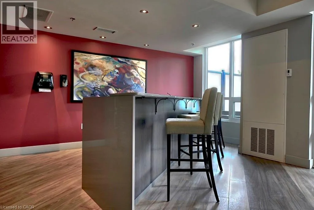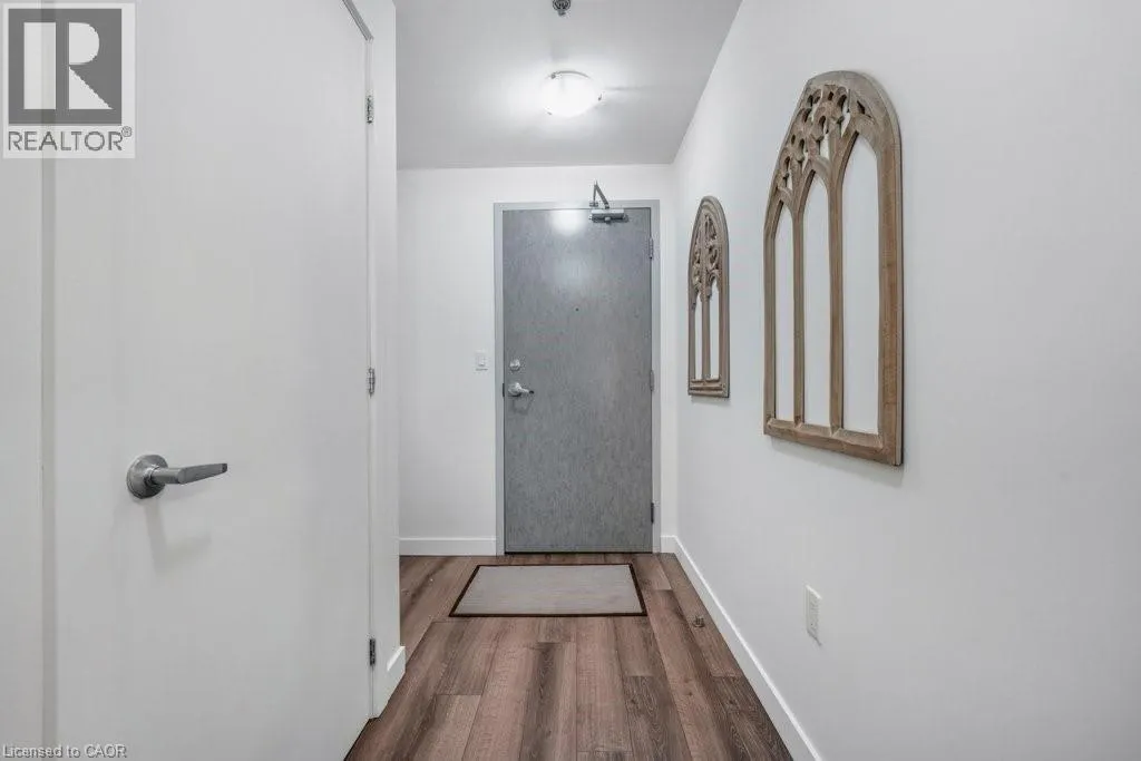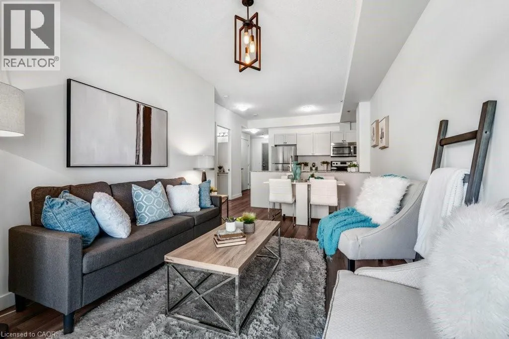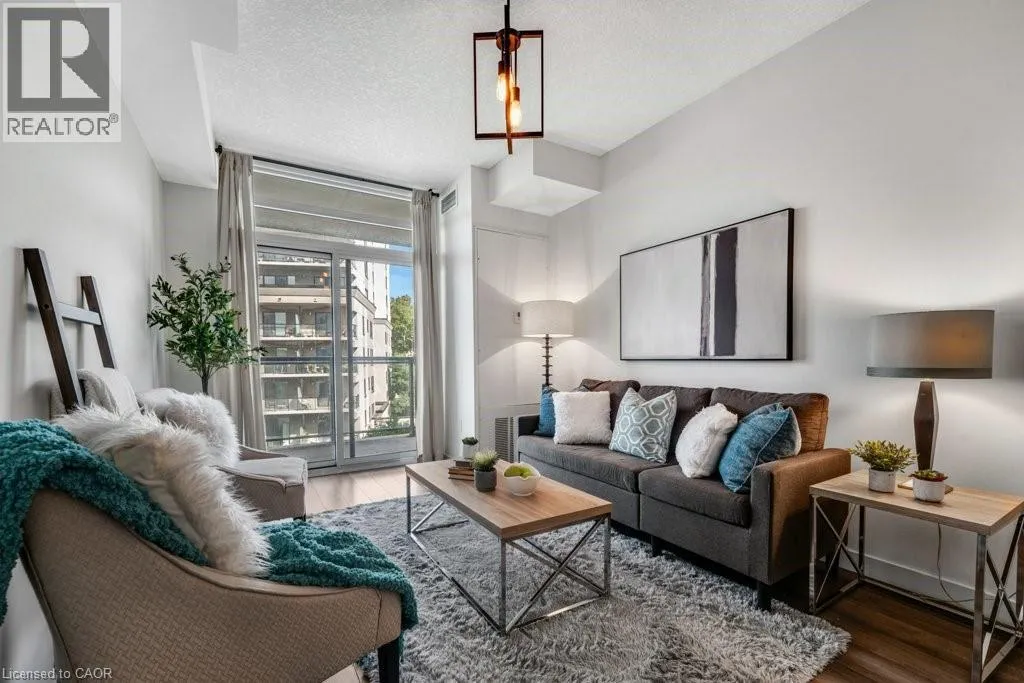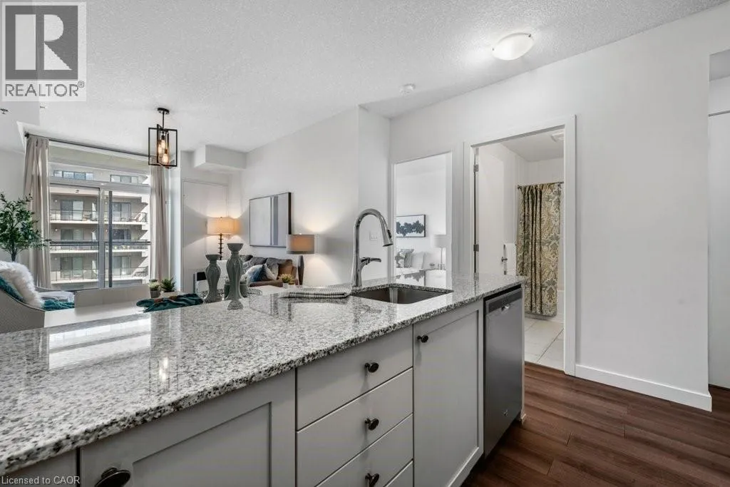 At intersection of Water and Ainslie Streets For lease with immediate occupancy! This beautifully updated one-bedroom condo showcases sweeping views of the Grand River and a bright, spacious living/dining area with an open-concept kitchen and breakfast bar. The kitchen features four stainless steel appliances, while a convenient laundry closet with a stacked washer and dryer adds everyday ease. This freshly painted move-in ready unit offers modern laminate flooring, pot lighting, and granite countertops. Step through the living room patio door to your private balcony and enjoy tranquil river views. The buildingâs expansive riverside terrace provides lush gardens, generous seating, gas fire pits, and gas BBQsâperfect for relaxing or entertaining. Additional amenities include a fitness center, guest suite, party room, storage, and underground parking. Ideally located within walking distance to live theatre, scenic river trails, the farmersâ market, boutique shops, and great restaurants. A must-see! (id:27476)
