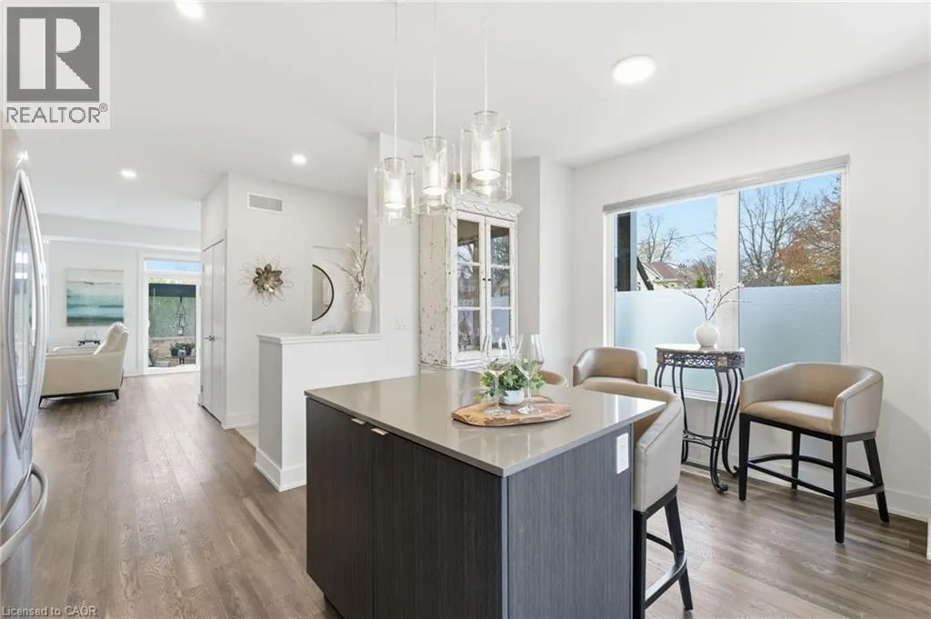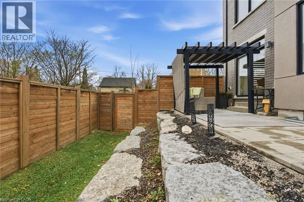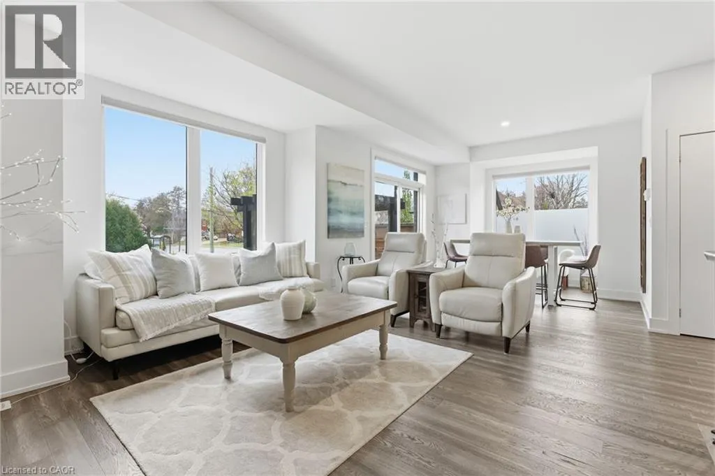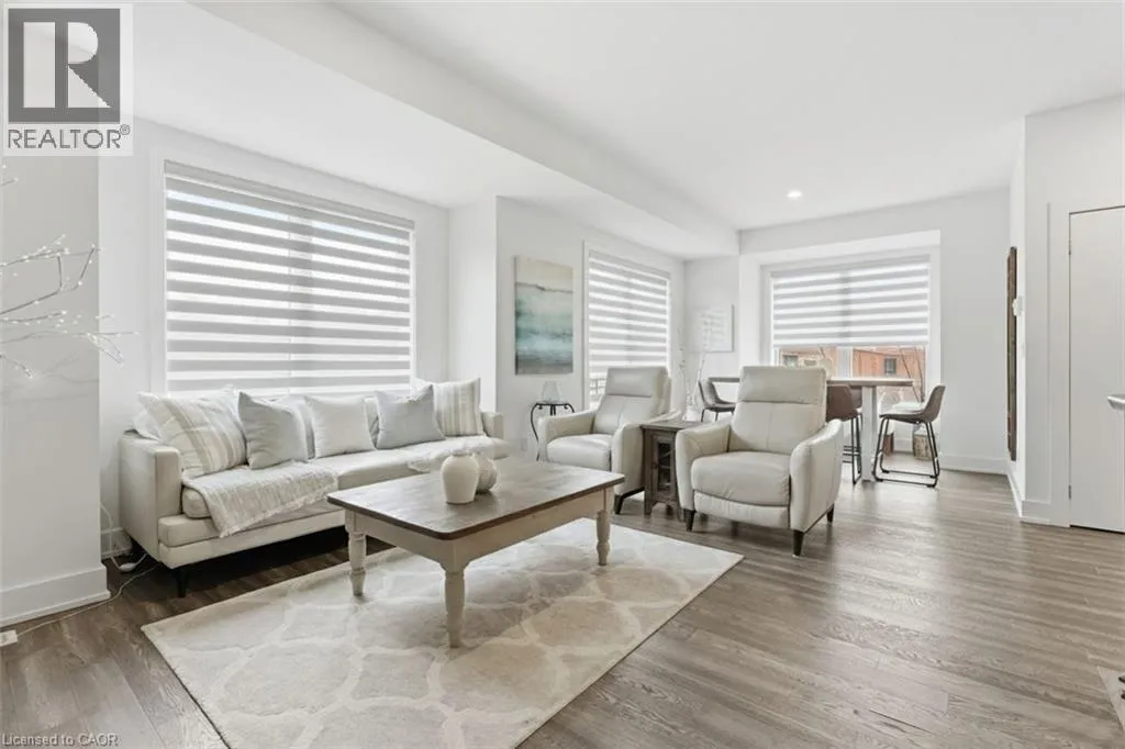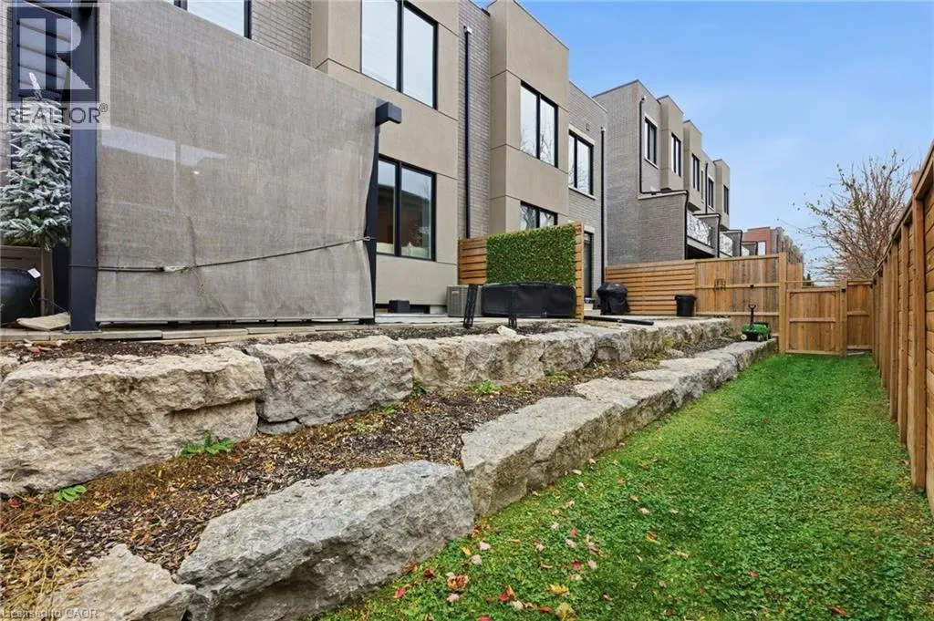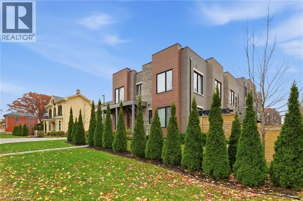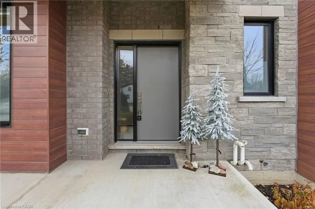 Concession Street between Centre street and East street. Discover refined living in Black Walnut- Private residences - an enclave of contemporary homes within walking distance of historic Galt. This sun-filled corner semi showcases striking modern architecture and over 1,800 sq. ft. of thoughtfully designed living space. Inside, youâll find 9â ceilings, hardwood floors, stone countertops, stainless steel appliances, and an oak staircase that adds timeless sophistication. Recent upgrades include designer light fixtures, an updated powder room, and freshly completed exterior landscaping that enhances curb appeal and outdoor enjoyment. The open-concept layout is ideal for entertaining, complemented by 3 spacious bedrooms, 3 bathrooms, and a primary suite with a glass shower and elegant finishes. Complete with privacy fencing, an attached garage, and low condo fees, this home blends modern comfort and effortless living. Steps to the Grand Riverâs scenic trails, local cafés, and the buzzing Gaslight District, this location captures the perfect balance of modern living and heritage charm. (id:27476)