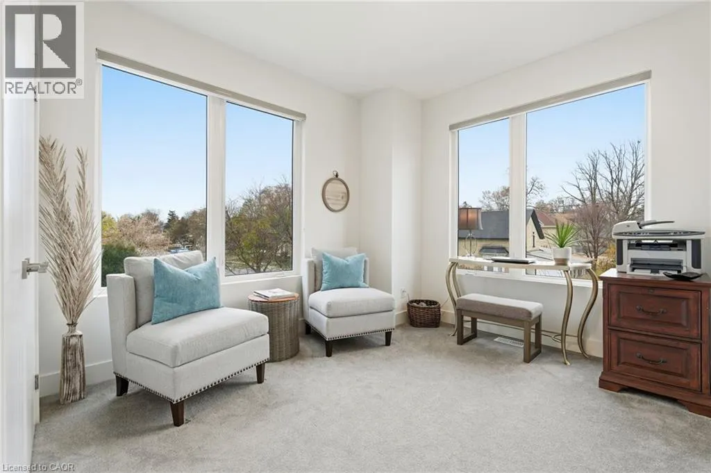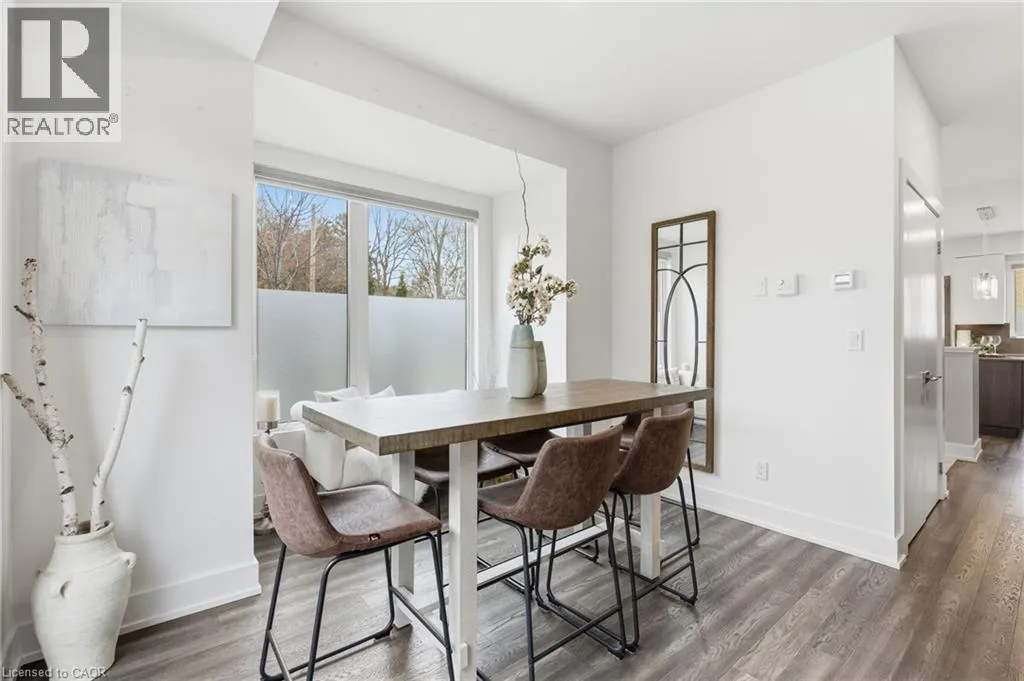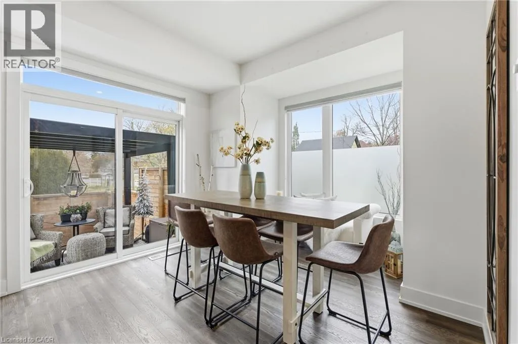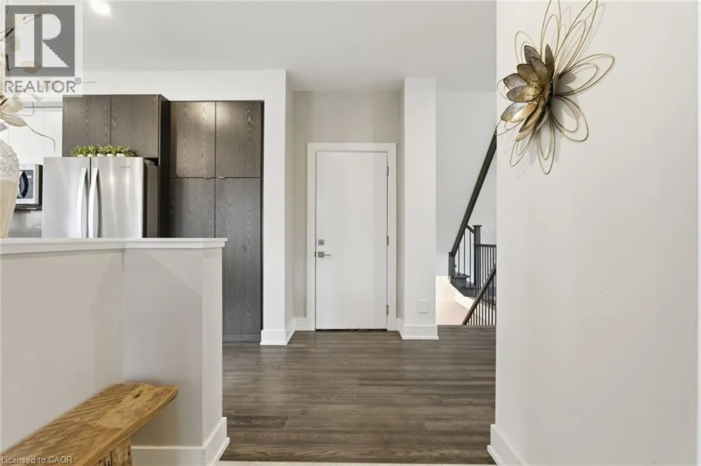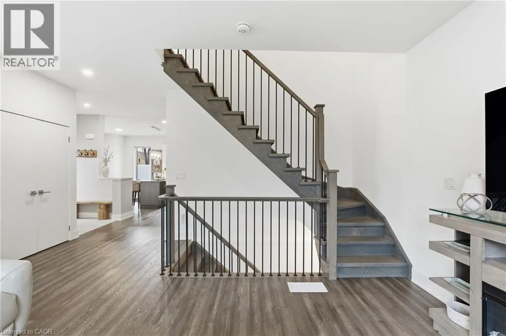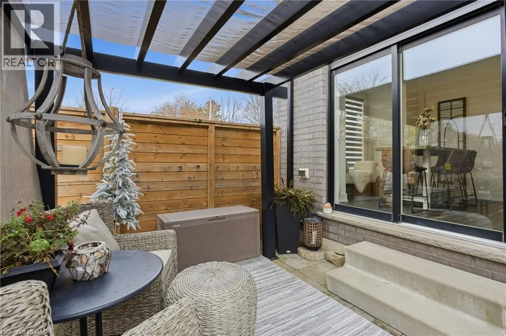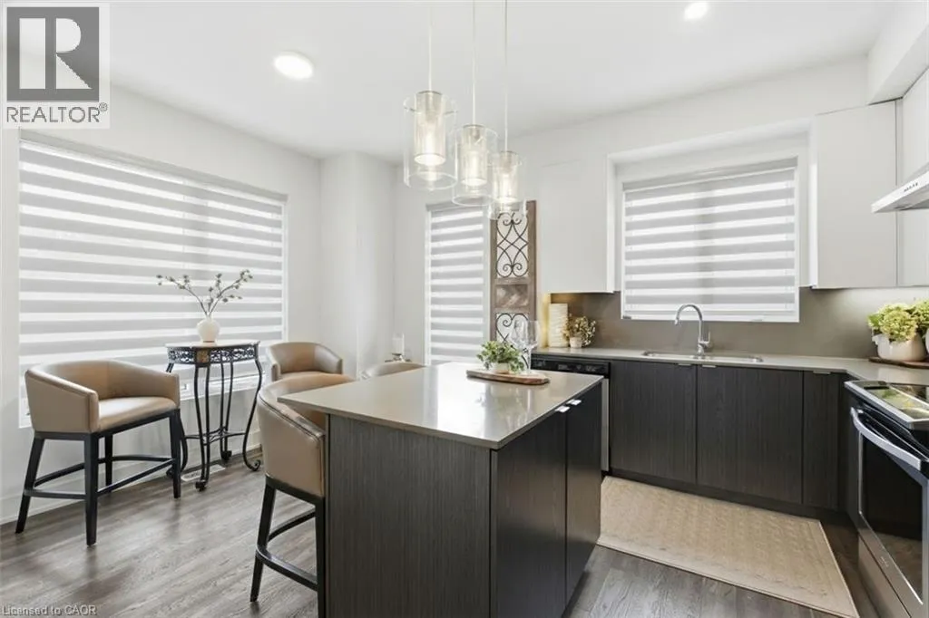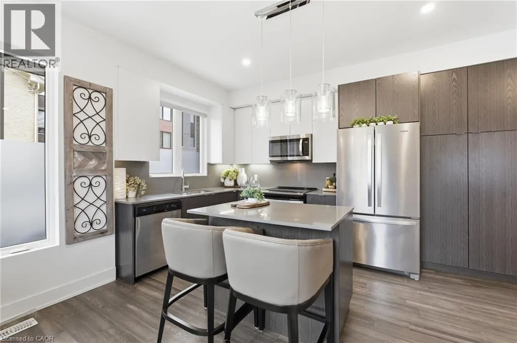 Concession Street between Centre street and East street. Discover refined living in Black Walnut- Private residences - an enclave of contemporary homes within walking distance of historic Galt. This sun-filled corner semi showcases striking modern architecture and over 1,800 sq. ft. of thoughtfully designed living space. Inside, youâll find 9â ceilings, hardwood floors, stone countertops, stainless steel appliances, and an oak staircase that adds timeless sophistication. Recent upgrades include designer light fixtures, an updated powder room, and freshly completed exterior landscaping that enhances curb appeal and outdoor enjoyment. The open-concept layout is ideal for entertaining, complemented by 3 spacious bedrooms, 3 bathrooms, and a primary suite with a glass shower and elegant finishes. Complete with privacy fencing, an attached garage, and low condo fees, this home blends modern comfort and effortless living. Steps to the Grand Riverâs scenic trails, local cafés, and the buzzing Gaslight District, this location captures the perfect balance of modern living and heritage charm. (id:27476)