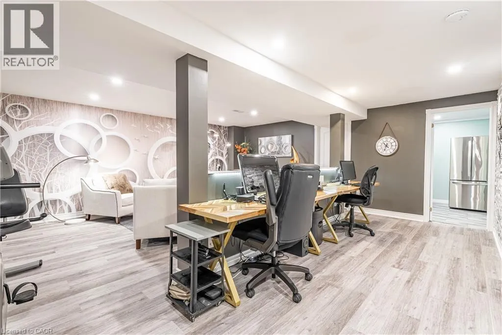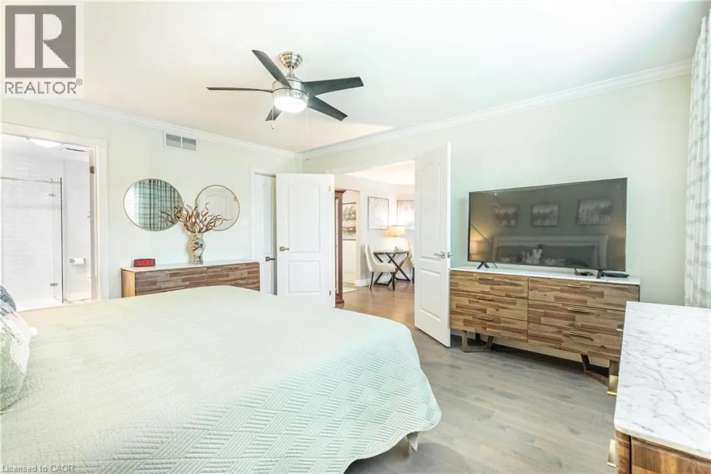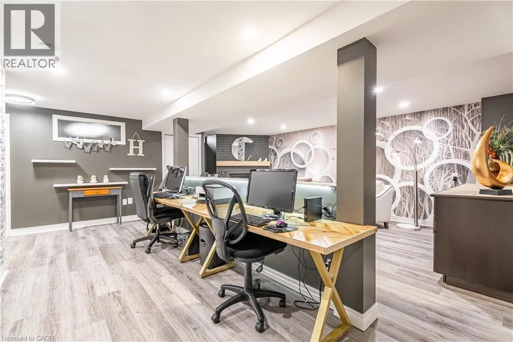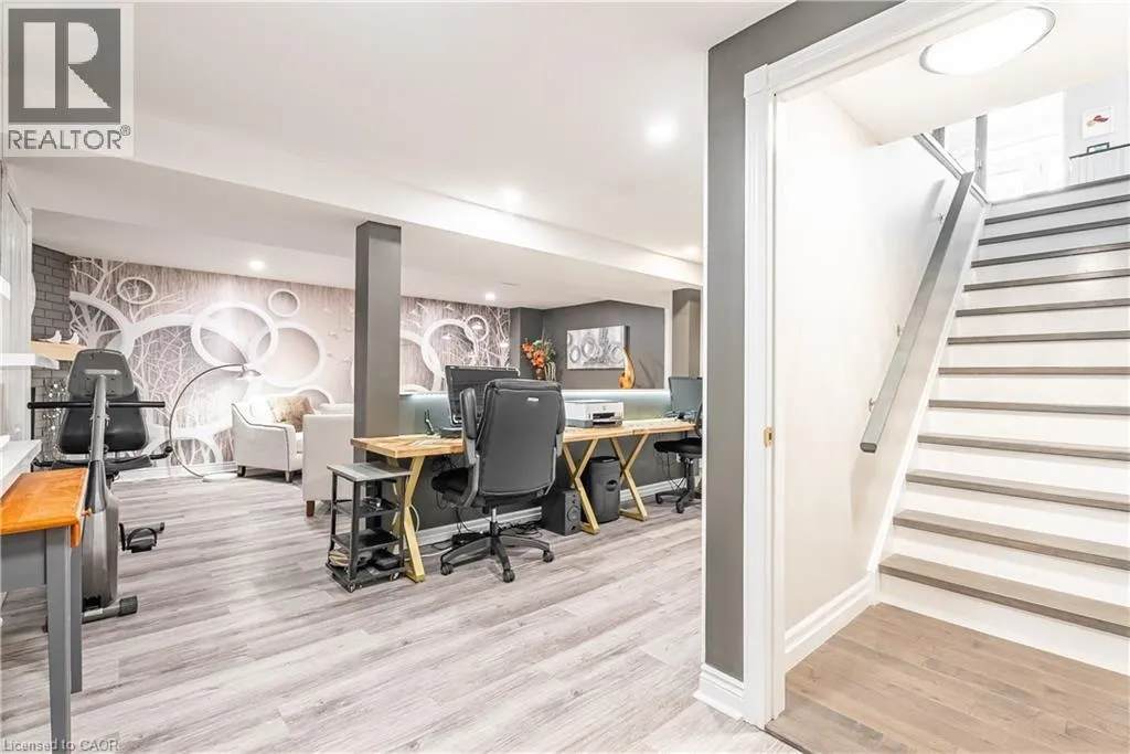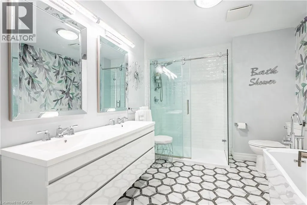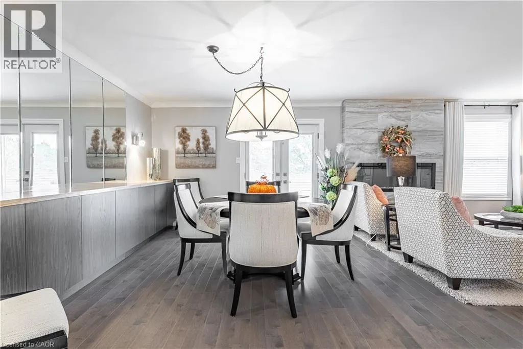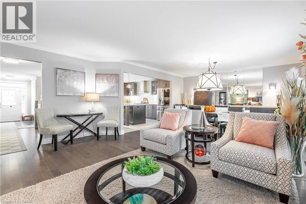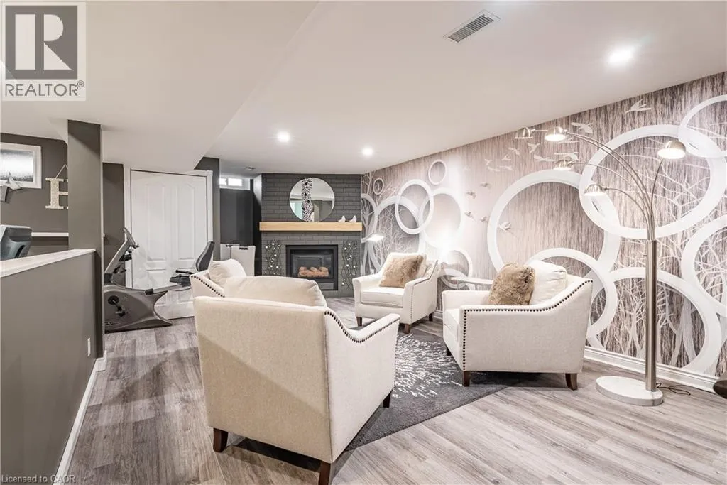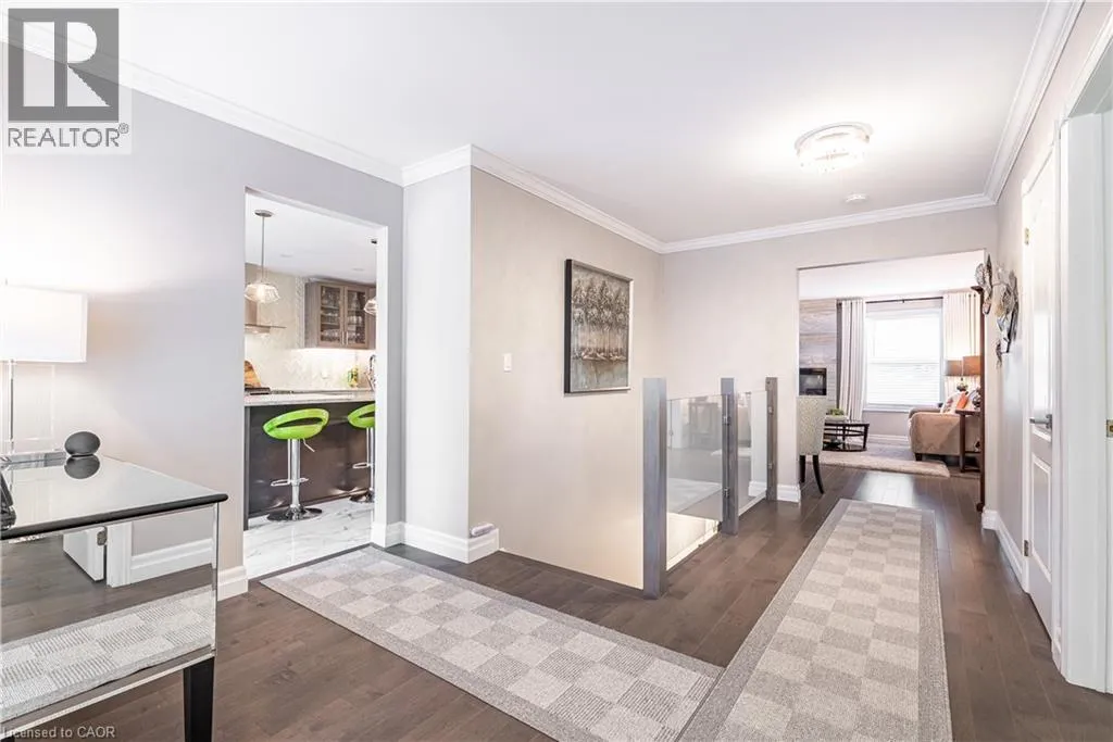 FRANKLIN BLVD TO AVENUE ROAD TO BEASLEY CRES. Welcome to 9â75 Beasley Crescent, where sophistication meets comfort in this totally upgraded 3-bedroom plus den home, designed for modern living and effortless entertaining. Every detail has been thoughtfully crafted with high-end finishes and smart functionality throughout. Step inside to find solid hardwood and marble tile flooring, an inviting electric fireplace with a marble tile surround, and an open-concept layout perfect for gatherings. The chef-inspired kitchen features quartz counters, a large island that seats four, custom cabinetry with pantry, glass tile backsplash, built-in second oven and microwave, coffee bar, and a built-in server in the dining area that blends form and function beautifully. On the main level, the primary suite feels like a boutique hotel retreat with a 5-piece ensuite offering a standalone tub, glass shower, double-sink vanity, and a walk-in closet. Each bedroom is enhanced with ceiling fans for comfort and airflow. The glass-railed staircase leads to a fully finished basement featuring a large guest bedroom with ensuite and walk-in closet, an office, recreation room with gas fireplace, den with closet, laundry room, and ample storage, providing versatile living spaces for guests, work, and relaxation. Step outside to a large composite deck that is perfect for summer barbecues or quiet morning coffee overlooking your private outdoor space. Enjoy resort-style amenities in this friendly community, including a clubhouse with games room, library, pool, and tennis/pickle ball courts. Ideally located close to shopping, dining, trails, and Shades Mills Conservation Area, everything you need is within reach. Move-in ready and loaded with upgrades, this home offers the perfect blend of elegance, comfort, and convenience. Live in luxury at 9â75 Beasley Crescent. Book your private showing today â this one wonât last! (id:27476)