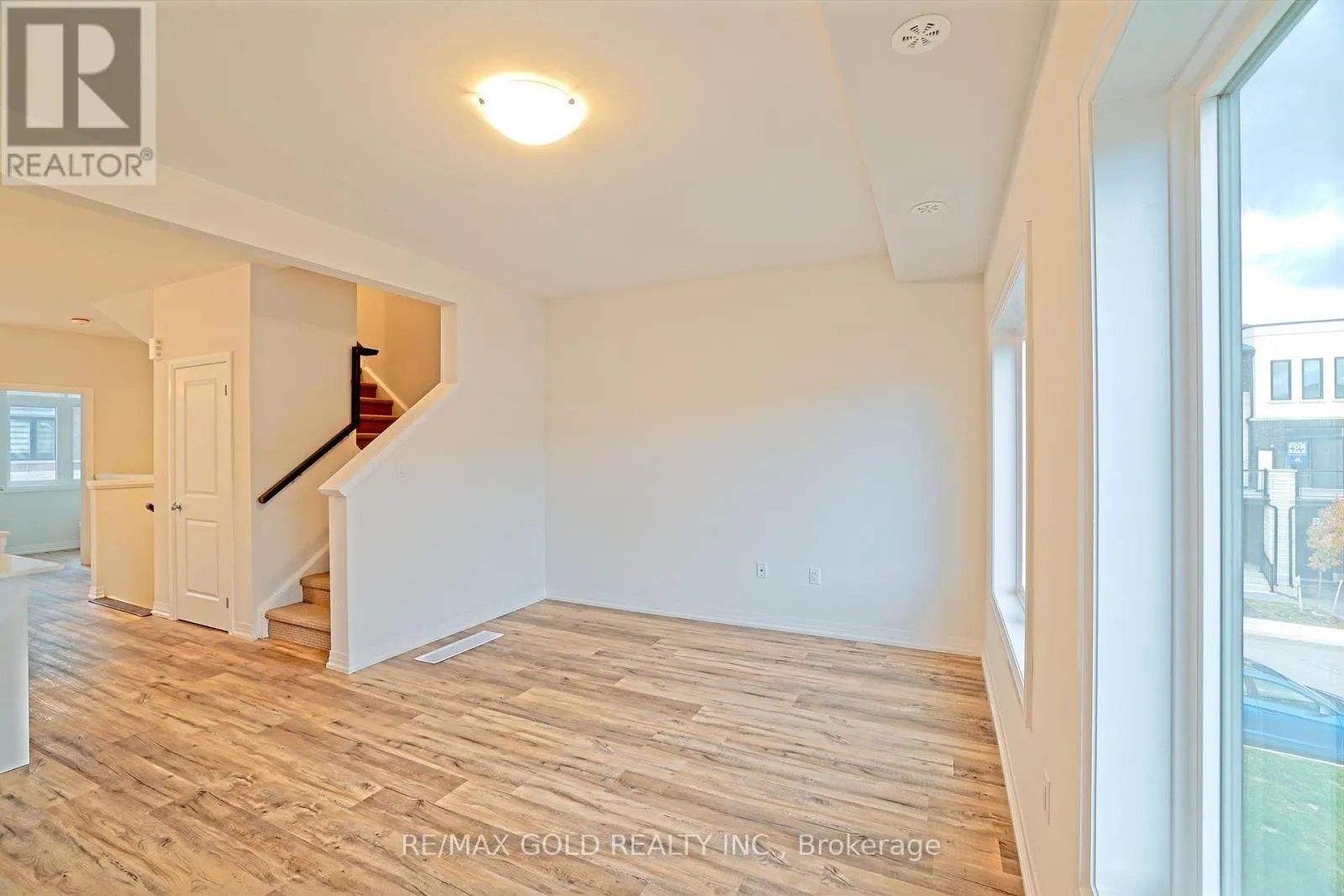 Speedsville Rd & Equestrian Way Beautiful brand new modern townhome, never lived in! This spacious 3-storey home features 3 bedrooms, 2 bathrooms, and a bright open layout. The ground level offers a single-car garage with extra parking and a versatile den that can be used as an office, extra living space, or bedroom. The second floor has a modern kitchen that opens to a sun-filled living and dining area, perfect for everyday living or entertaining. The top floor includes three comfortable bedrooms, including a large primary suite with big windows and a walk-in closet. You also get convenient backyard access and direct entry from the garage. Located just minutes from Highways 401 and 8, you're only a short drive from major shopping in Cambridge and Kitchener, as well as employers like Toyota Canada. This move-in-ready home offers the perfect mix of style, comfort, and convenience. (id:27476)
