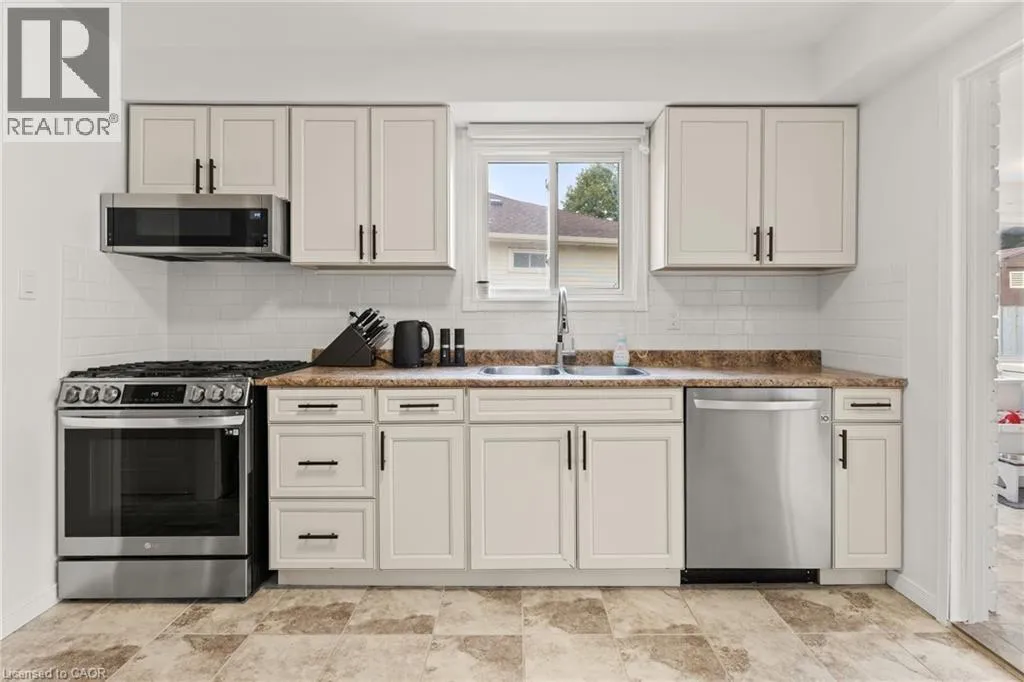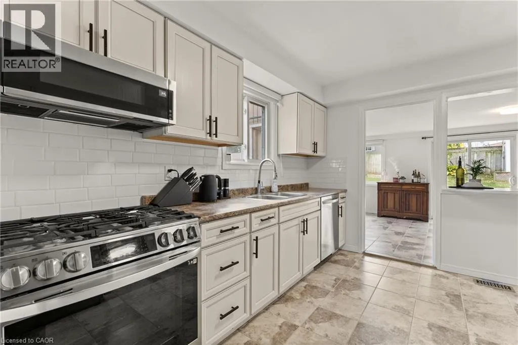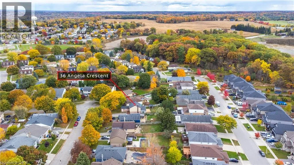 GRANDRIDGE TO JOHANNA DR. TO ANGELA CRES. Welcome to 36 Angela Crescent, Cambridge! Tucked away on a quiet mini cul-de-sac in desirable West Galt, this charming home offers peace and privacy with very little traffic. Thoughtfully updated over the past five years, it features mostly newer windows, roof (2018), furnace (2018), replaced kitchen and bathrooms, updated flooring, new deck, modern light fixtures, fresh paint, and newer appliances. This home was the original model home and the garage was converted to the builders office. It is now the 4th bedroom, there's a possibility to convert that back to the garage. The finished basement provides additional living space, perfect for family, hobbies, or guests. Enjoy the convenience of parking for four cars, a welcoming front deck ideal for morning coffee or evening drinks, and a prime location close to schools, parks, and scenic trails. Local shopping is just 3 minutes away, and downtown Galt is a quick 5-minute drive. This home truly combines comfort, updates, and an excellent location. (id:27476)