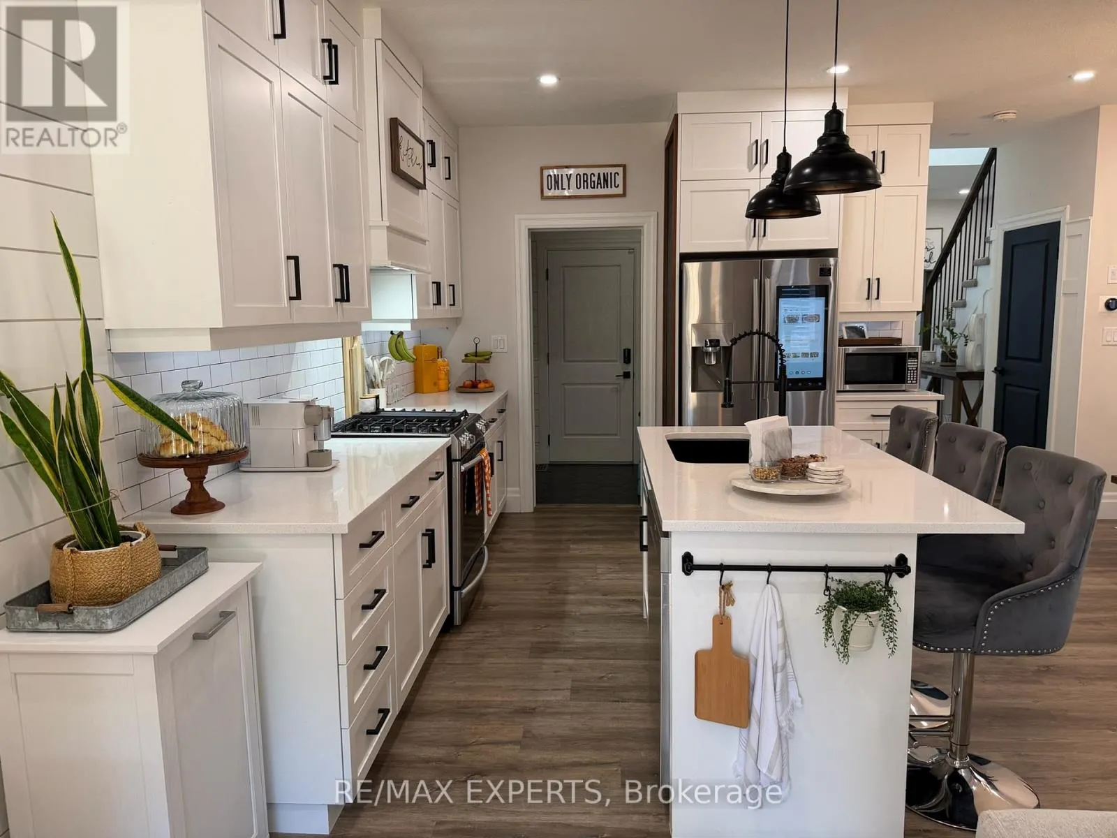 Cross Streets: Dundas St South and Branchton Rd. ** Directions: As per Google Maps. Step into this beautifully upgraded 3-bedroom home offering approx. 2,100 sq. ft. of living space plus a newly finished basement, perfectly located in the sought-after Galt community. From the moment you arrive, you'll appreciate the extended driveway with parking for 4 cars plus garage, a freshly replaced front lawn, a newly built deck, and a fully fenced yard enhanced with Gemstone outdoor lighting for year-round ambiance.Inside, the home features 9' ceilings, pot lights on the main floor and basement (with mood-lighting options), California shutters throughout, custom California Closets in all upstairs bedrooms, stylish accent walls, and a cozy gas fireplace. The upgraded kitchen stands out with quartz countertops, a gas stove, Reverse Osmosis water system and Smart Home features including a Nest thermostat.The newly finished basement adds valuable additional living space, perfect for a rec room, home office, gym, or guest suite.Location is unbeatable-just steps to elementary, kindergarten, and high school, and minutes from downtown Cambridge, Zehrs, Shoppers, restaurants, banks, community centre, gyms, and the hospital. Only a 10-minute drive to Hwy 401 and Cambridge Centre Mall. (id:27476)