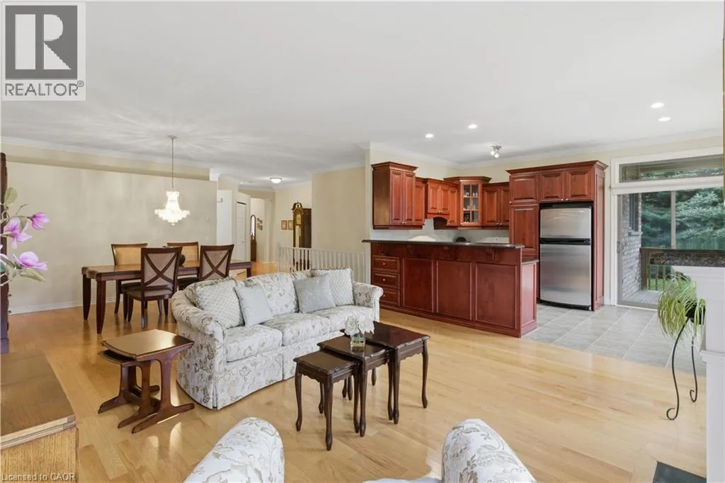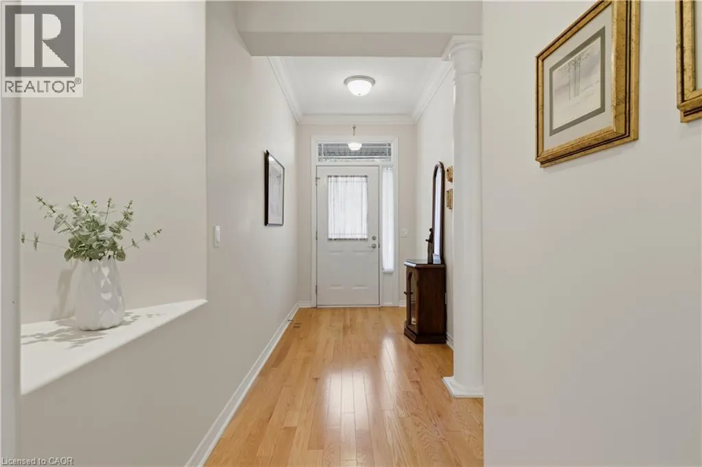 Hespeler Rd to Isherwood Ave End-unit home offering over 2,000 sq ft of beautifully maintained living space by the original owner. Sun-filled rooms and big bright windows create an inviting atmosphere throughout. The main floor features hardwood maple flooring, tile in the kitchen, and a comfortable layout ideal for everyday living and entertaining. The kitchen is equipped with stainless steel appliances, cherry cabinets topped with granite counters, an eat-in dining space, and a welcoming breakfast bar. From here, access to the backyard makes it easy to step outside and enjoy the deckâan ideal spot for peaceful morning coffee or relaxed outdoor dining. Nearby, the main-floor laundry room provides direct entry to the garage, offering convenience on busy days and easy transitions in all seasons. The primary bedroom includes a generous walk-in closet and a 4-piece ensuite with a soaker tub and walk-in shower. A second 4-piece bathroom serves the main level. The lower level adds exceptional flexibility with a privately situated second bedroom and a 3-piece bathroom - perfect for guests, extended family, or a comfortable home office suite. Warm details such as crown molding, California shutters, and updated window coverings complement the natural light throughout the home. Both the upper and lower levels feature cozy gas fireplaces, and the carpet-free main floor enhances the clean, modern feel. A partially finished basement extends the living space, while a large unfinished storage room with built-in cabinetry offers outstanding organization options. Additional updates include a security system for added peace of mind. This well-cared-for home delivers comfort, functionality, and inviting spaces in every corner. (id:27476)