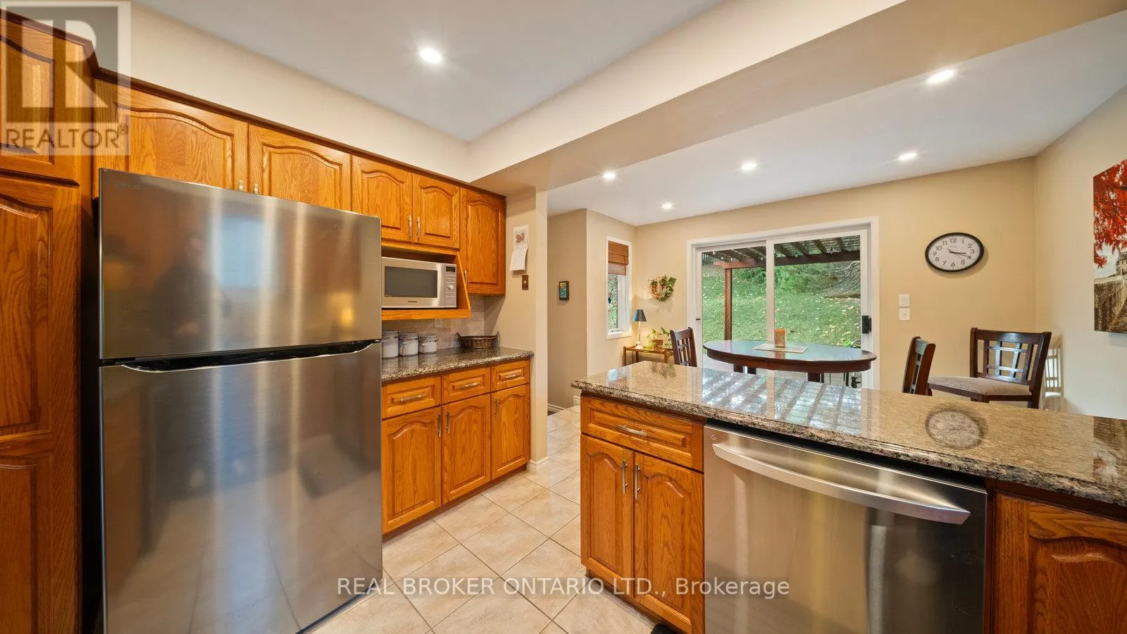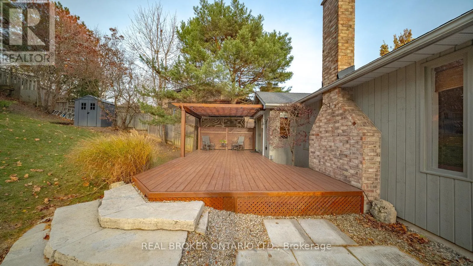 Cross Streets: Tait. ** Directions: Tait To Gordon. Set on a beautiful, elevated lot in West Galt, 74 Gordon Street offers the kind of space and layout that growing households look for in this sought-after area. A grand raised-ranch entry welcomes you with room to breathe, leading easily to both levels and setting the tone for how much space this home gives you. The upper level features an expansive formal living room with a bay window, a dedicated dining room, and a sunken family room anchored by a gas fireplace. The chef's eat-in kitchen has granite counters, stainless steel appliances, and direct access to the deck for easy indoor-outdoor living. Hardwood floors run throughout the main areas, and the private wing includes a generous primary suite with a walk-through closet and spa-like bathroom, along with two more large bedrooms and a second designer bath. The lower level adds even more flexibility with a massive rec room with large windows, an additional bedroom, a full bathroom, laundry room, storage, and direct access to the oversized two-car garage. Outside, the yard feels like cottage country with its terraced design, mature trees, and multiple outdoor spaces including a deck with pergola, a patio ready for a hot tub, and a private front sitting area perfect for morning coffee. This is a well-kept home in a quiet corner of West Galt with quick access to schools, parks, and everyday amenities. Come see what makes this one so special. (id:27476)