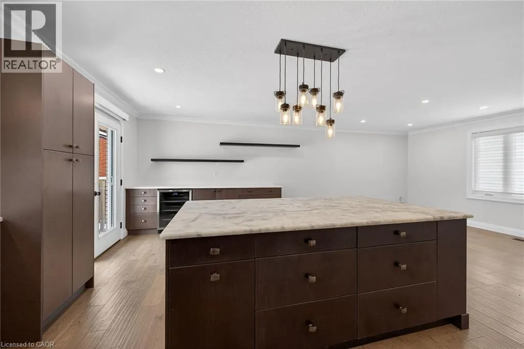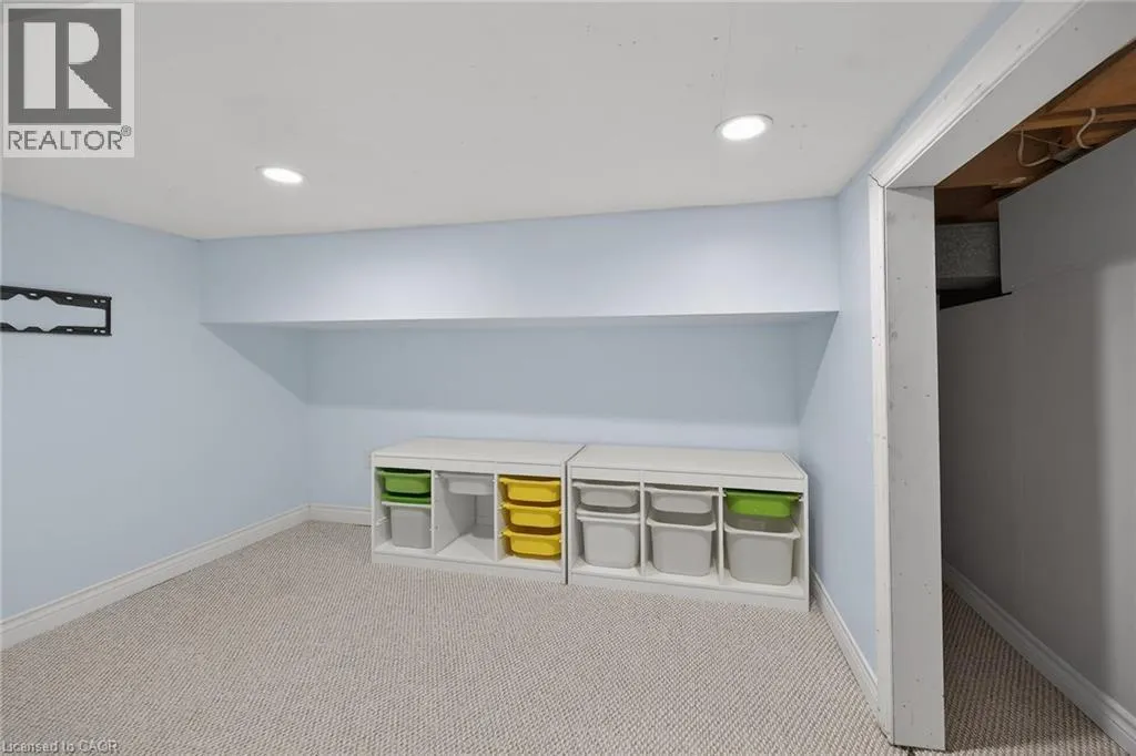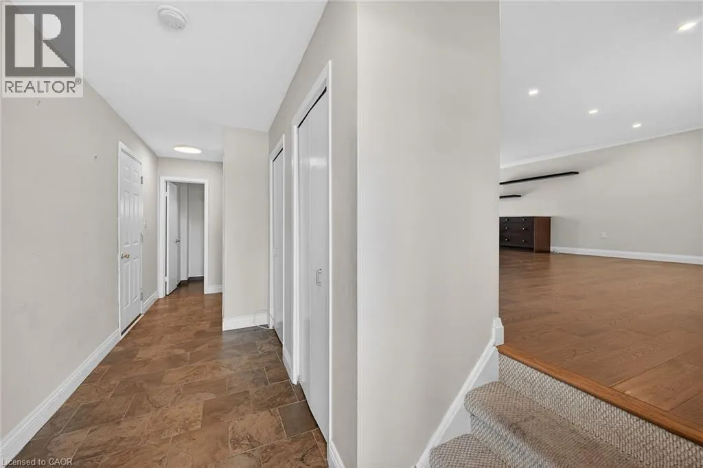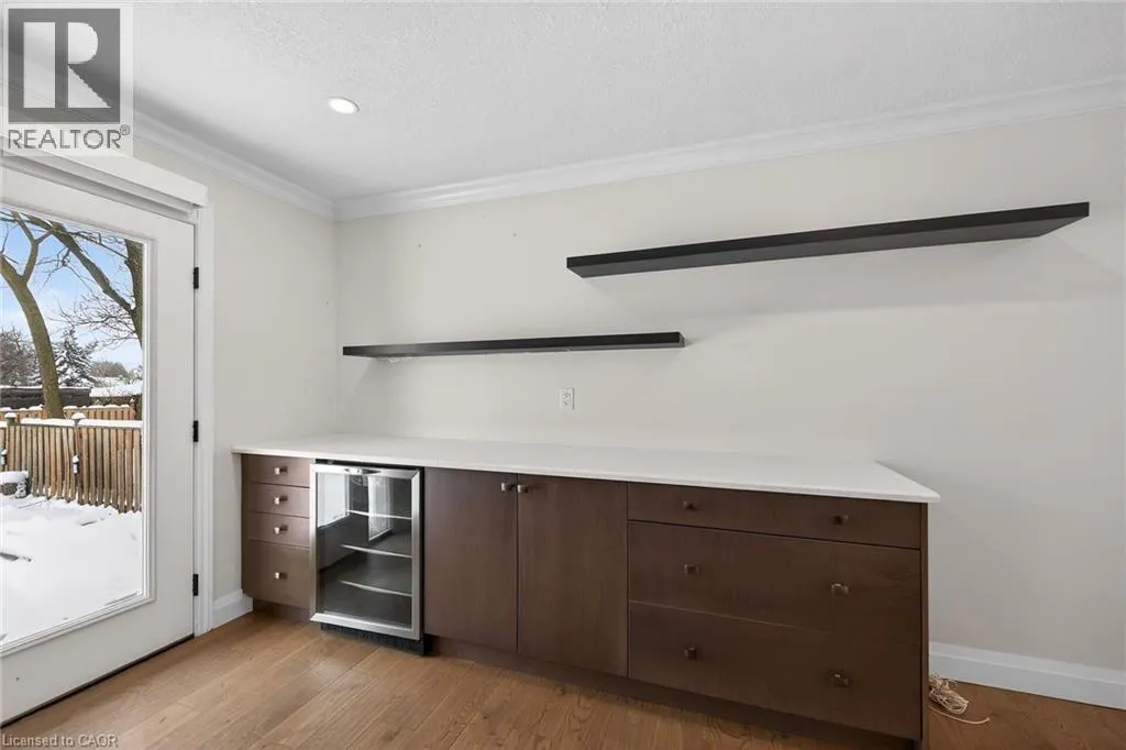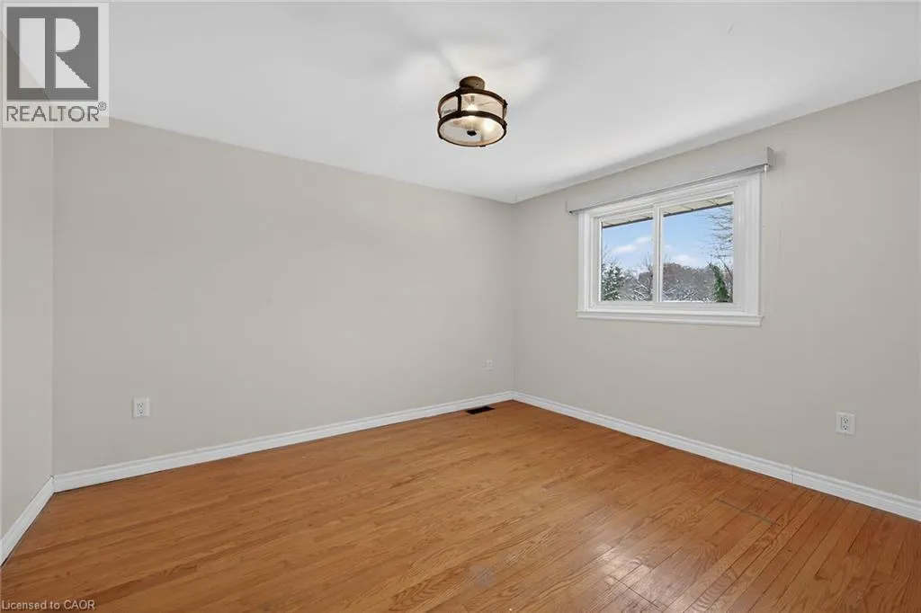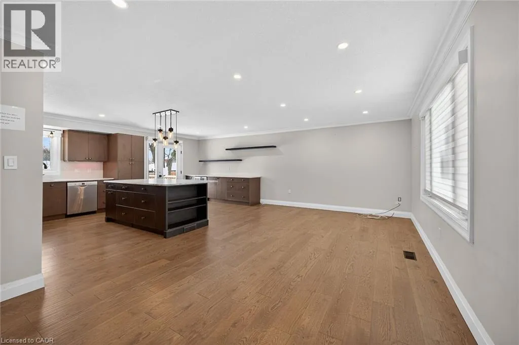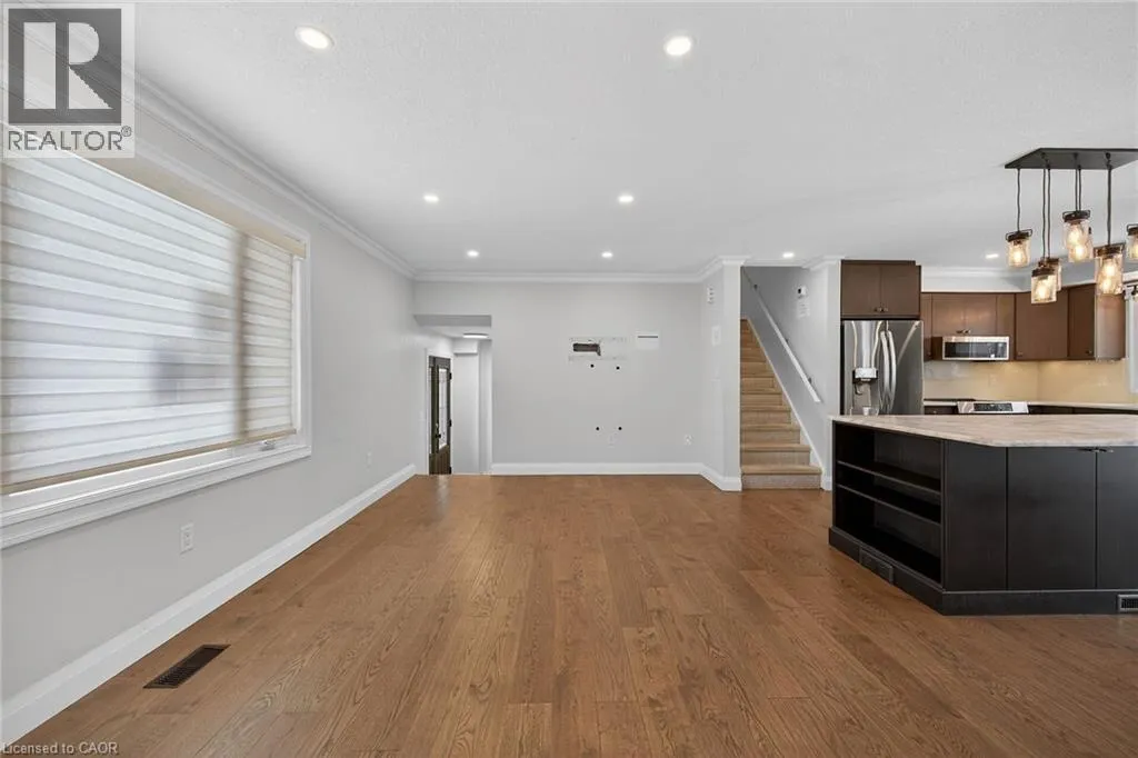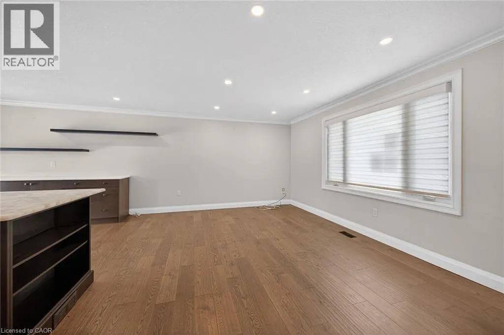 Southwood between White Oak and Westwood Tidy, updated side split in desirable West Galt location. This 3 bedroom 2 bathroom home features a open concept main level. Updated kitchen with abundant cabinetry, solid surface counters and backsplash, pantry and huge island. The sun filled living room and dining room offer crown molding, wide plank hardwood floors and led pot lights. Dining room features patio door to back yard and a servery/coffee bar and open shelves. Bedroom level provides 3 spacious bedrooms and a modern 5 pce. bathroom. The finished lower level provides loads of additional living space. Cozy rec room, kids play area and big laundry room. Private, mature back yard with cement patio area and storage shed. Enjoy the summer shade in the spacious yard while the kids play. Wide double, exposed aggregate driveway, makes a memorable first impression. Recent front entry door. 23 ft X 13 ft garage. Great neighborhood steps to school and park. Don't miss out! (id:27476)