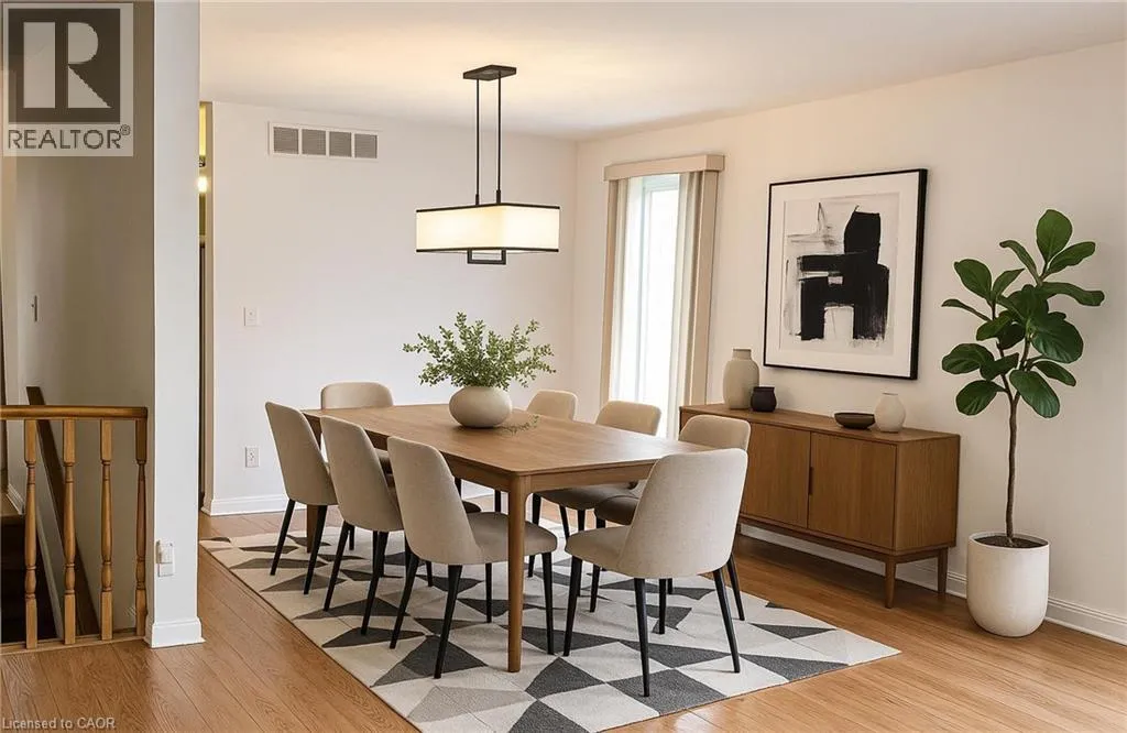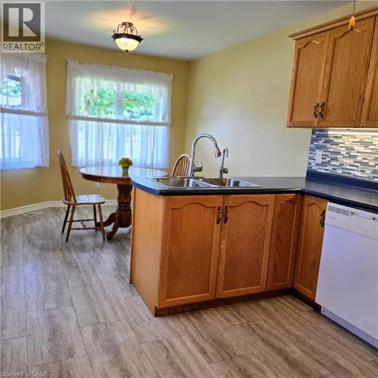 Hespeler Rd and Isherwood Ave Savannah Oaks end-unit bungalow offering 1,372 sq. ft. of bright, open-concept living in a quiet, highly sought-after community. This beautifully maintained Intego model features newer hardwood flooring in the living and dining areas, and a spacious kitchen with large windows overlooking the lush front gardens. The living room provides a garden door walk-out to a private back deck and patio, complemented by a charming front courtyardâideal for outdoor relaxation or entertaining. This 2 bedroom, 3 bathroom home includes a partially finished basement with a rec room, games room, den/office, workshop, and ample storage space, plus convenient access to the double car garage. Located close to parks, scenic trails, shopping, and amenities. Images are for reference purposes only. Photos are virtually staged. (id:27476)