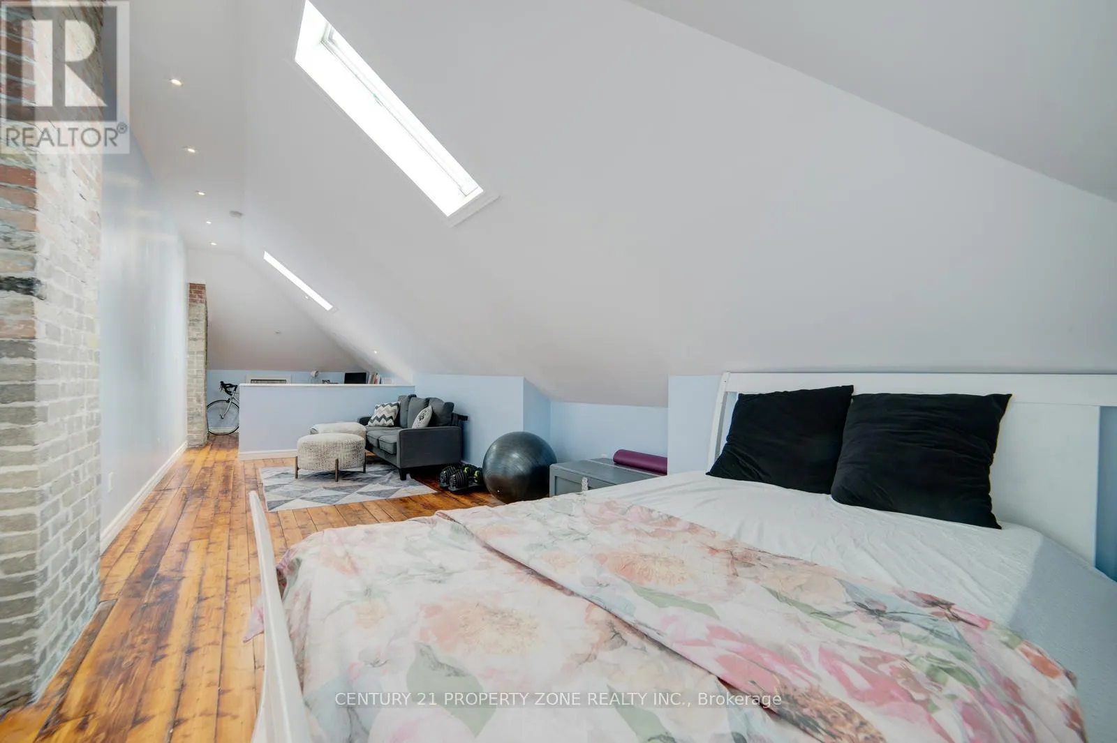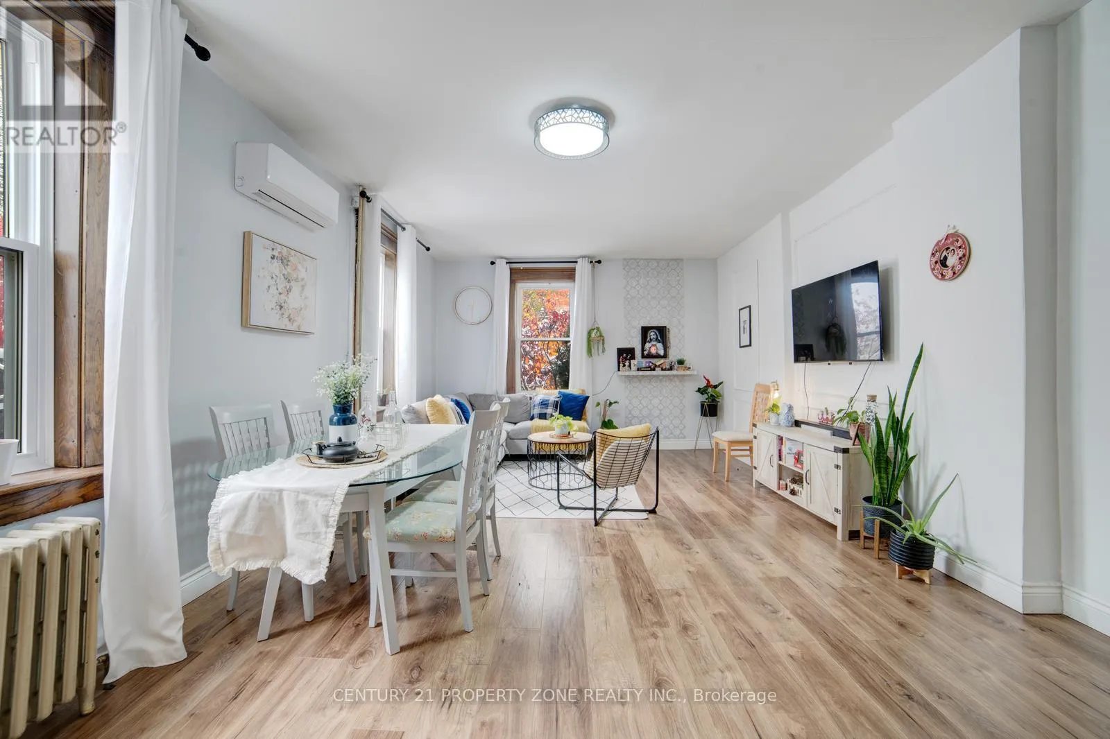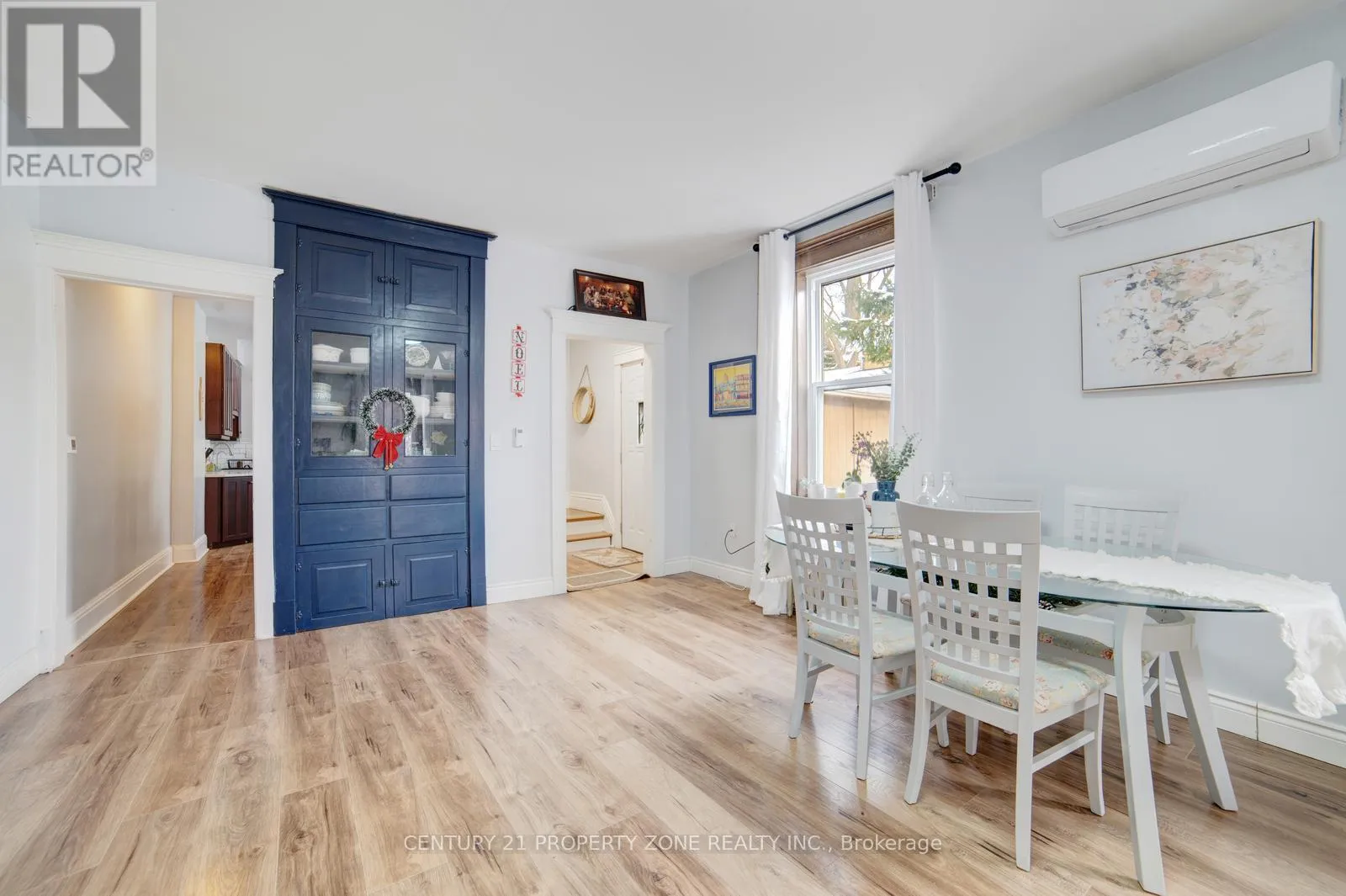Duke St/Waterloo St N Welcome to your new home in the heart of Preston! Step into a charming foyer with space to hangcoats and store shoes, leading to a warm living area showcasing the timeless woodwork. The open-concept living and dining rooms feature south and west-facing windows, updated laminateflooring, and original built-in wood cabinets that add both charm and character. Down the hall,you'll find a spacious kitchen, a convenient laundry area, and a 2-piece bath. Upstairs offers two spacious bedrooms with built-in closets and a modern 5-piece bathroom (updated in 2022)with double sinks and garden views. The third-floor loft serves as an expansive primaryretreat, complete with two skylights, a west-facing window, hidden storage behind the kneewall, and a built-in desk perfect for a cozy home office. A/C (2023),Deck (2023), Gazibo(2024). (id:27476)