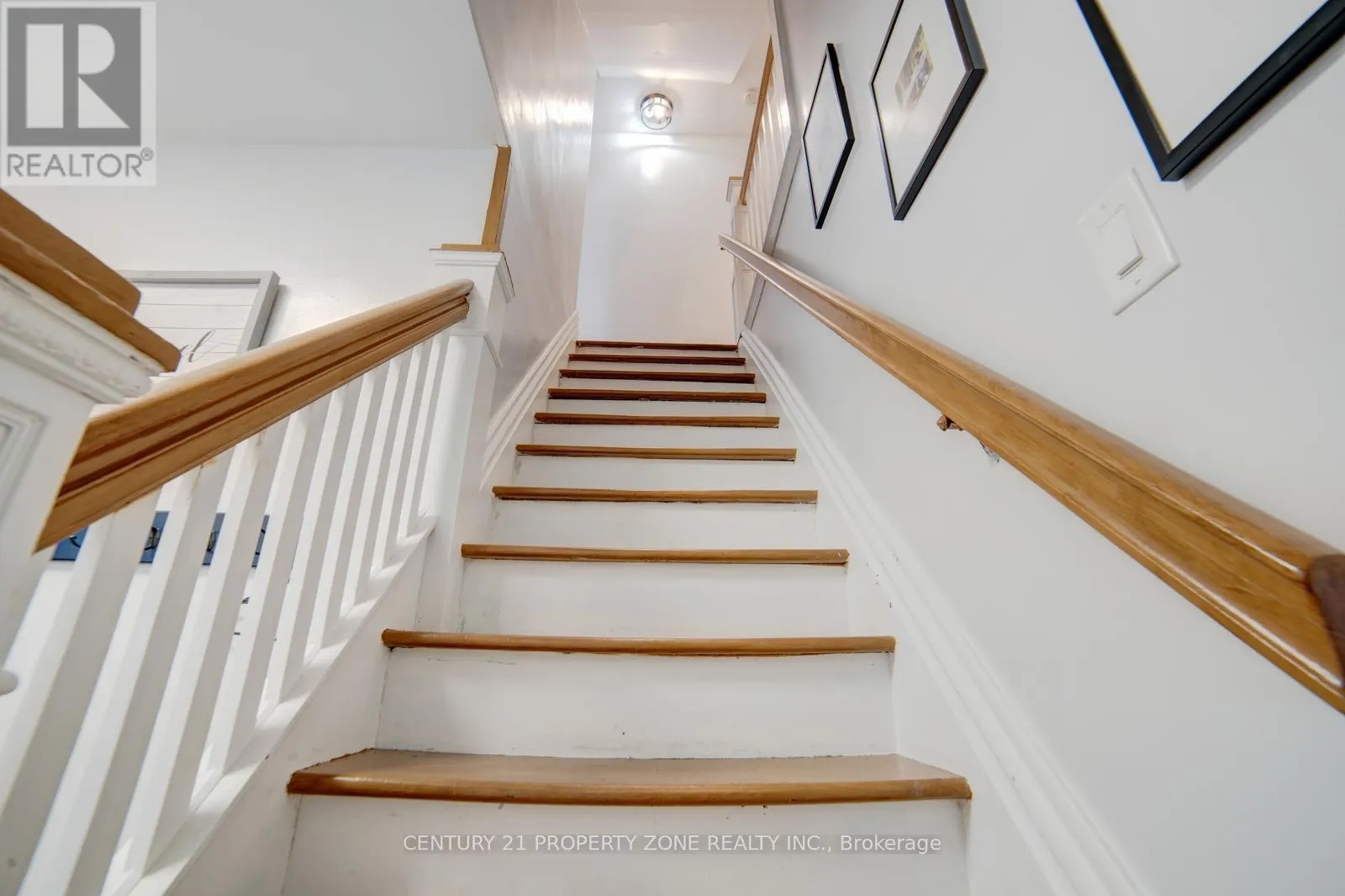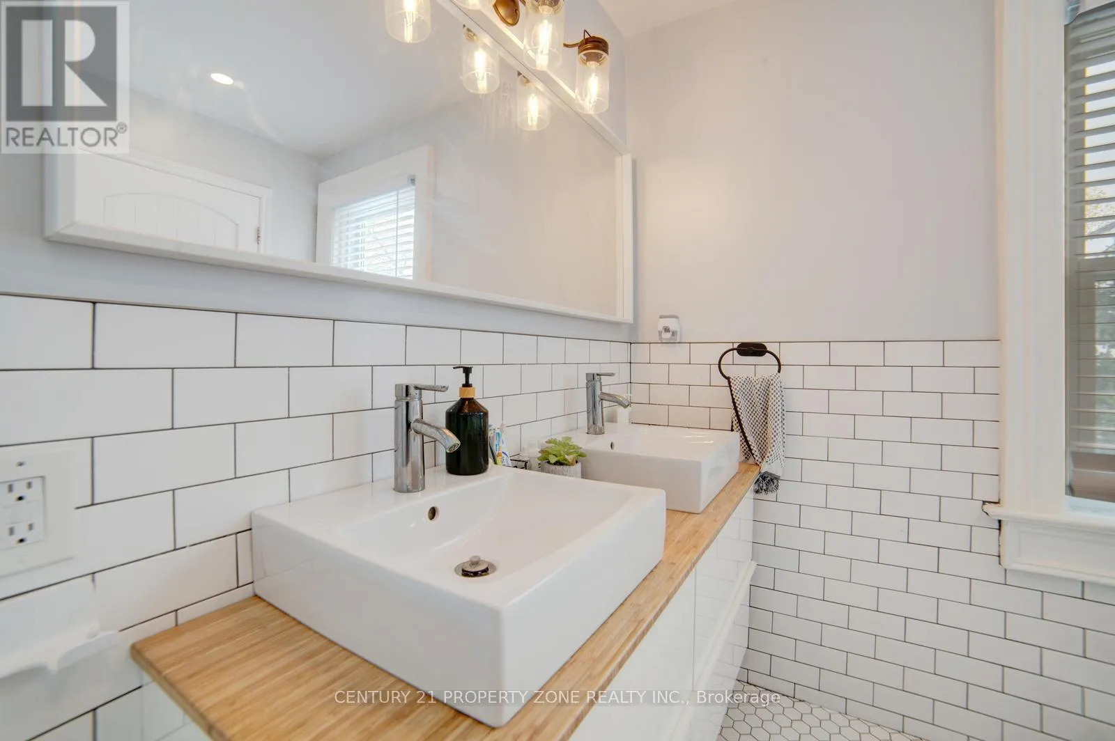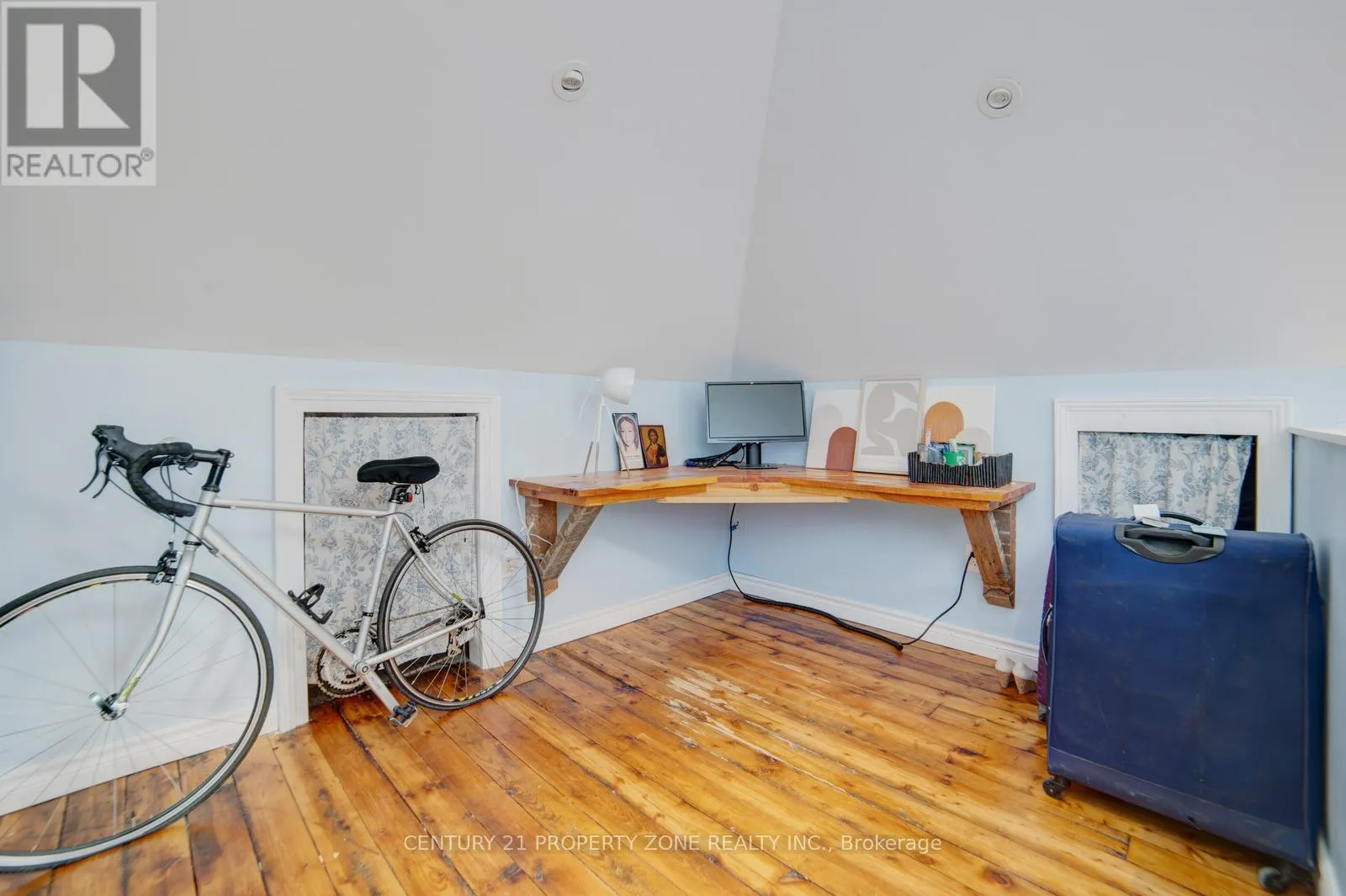 Duke St/Waterloo St N Welcome to your new home in the heart of Preston! Step into a charming foyer with space to hangcoats and store shoes, leading to a warm living area showcasing the timeless woodwork. The open-concept living and dining rooms feature south and west-facing windows, updated laminateflooring, and original built-in wood cabinets that add both charm and character. Down the hall,you'll find a spacious kitchen, a convenient laundry area, and a 2-piece bath. Upstairs offers two spacious bedrooms with built-in closets and a modern 5-piece bathroom (updated in 2022)with double sinks and garden views. The third-floor loft serves as an expansive primaryretreat, complete with two skylights, a west-facing window, hidden storage behind the kneewall, and a built-in desk perfect for a cozy home office. A/C (2023),Deck (2023), Gazibo(2024). (id:27476)
