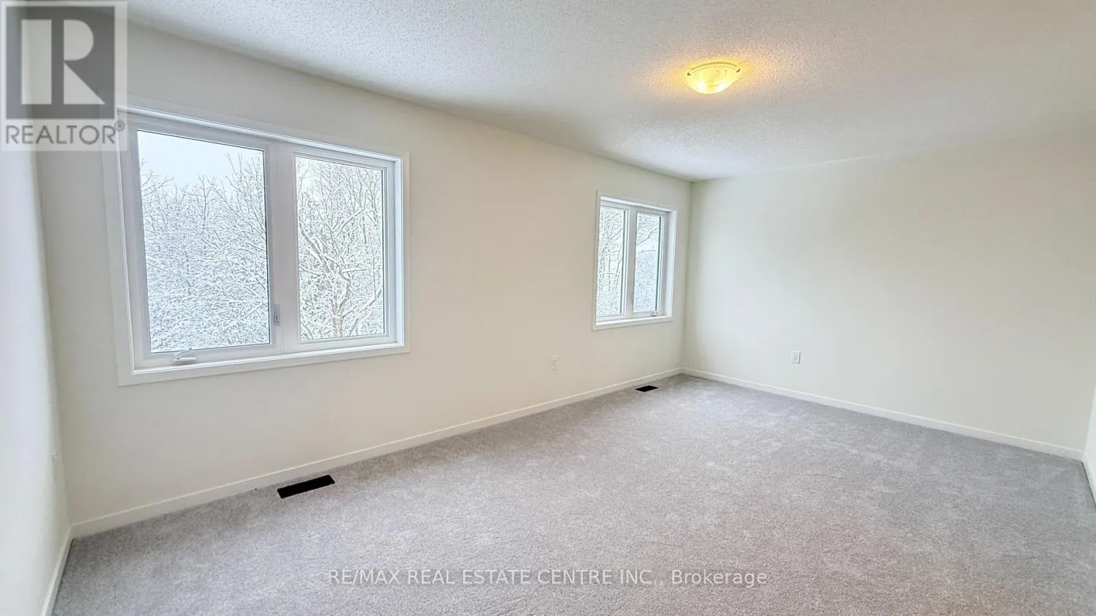 Highway 8 & Branchton Road Welcome to 44 Seahorse Common a brand-new, never-lived-in end-unit freehold home backing onto a breathtaking ravine! This modern 3-bed, 3-bath beauty offers the perfect blend of style, comfort & convenience for families or couples looking for more space.Step inside through the elegant double doors into a bright, open-concept main floor filled with natural light, soaring ceilings & expansive windows showcasing spectacular ravine views. The upgraded kitchen features stainless steel appliances, double sink, tons of cabinet space, and generous counters-ideal for those who love to cook. The spacious living room includes an electric fireplace and opens to a private balcony overlooking the lush ravine, perfect for morning coffee or relaxing evenings.Upstairs, a winding staircase leads to three oversized bedrooms. The primary suite boasts a 3-piece ensuite, large walk-in closet, and grand windows framing serene views. The additional bedrooms are spacious and bright, making them perfect for kids, guests, or a home office. Enjoy the convenience of upstairs ensuite laundry.The unfinished walk-out basement offers a massive rec room and direct access to the backyard-excellent for storage, a gym setup, or extra play space, all while enjoying the peaceful ravine backdrop.Exterior features include modern brick & aluminium siding, garage with remote, and parking for two cars.Located in a growing Cambridge community near schools, parks, trails, grocery stores, shopping, and quick access to HWY 401, this home offers the lifestyle you've been waiting for. Minutes from Cambridge Centre, Shades Mills Conservation Area, Dumfries Conservation Area, and vibrant dining amenities.Be the first to call this stunning ravine-lot home yours. Perfect for families or professionals seeking tranquility without sacrificing convenience. (id:27476)