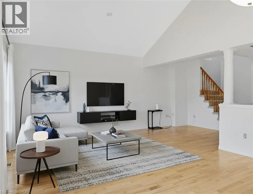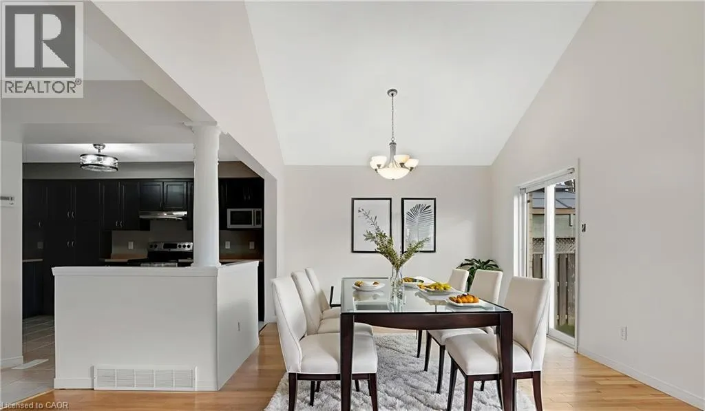 BRANCHTON ROAD A BEAUTIFULLY FINISHED 3+1 BEDROOM HOME WITH ROOM TO GROW. Tucked into a family-friendly pocket of Cambridge, this meticulously cared-for home unfolds with over 1,900 sq. ft. of finished living space. Step inside and be greeted by vaulted ceilings that stretch above the living and dining areas, creating a sense of airiness and calm. Sunlight drifts across the hardwood floors, guiding you toward the heart of the home â a spacious kitchen featuring ample cabinetry, modern lighting, and a functional layout perfect for busy mornings or lingering weekend breakfasts. The open dining area flows seamlessly to the large, fully fenced backyard through sliding glass doors. Itâs an ideal setup for gatherings, playtime, or quiet evenings under the sky. Upstairs, 3 beautifully appointed bedrooms await, including a serene primary suite framed by an elegant arched window. Neutral tones and thoughtful finishes make each space feel instantly welcoming. A stylish full bathroom with double sinks adds a practical touch for families. The lower level extends the homeâs versatility with a fully finished basement, complete with a spacious rec room, 4th bedroom, and a 3pc bathroom â perfect for guests, teens, or an in-law setup. With 2.5 bathrooms in total, tasteful updates throughout, and a bright, open layout, this home embodies comfort, style, and everyday functionality. A wonderful opportunity for families, first-time buyers, or anyone seeking a move-in-ready home. Located minutes to all amenities, schools, parks, & shopping. (id:27476)