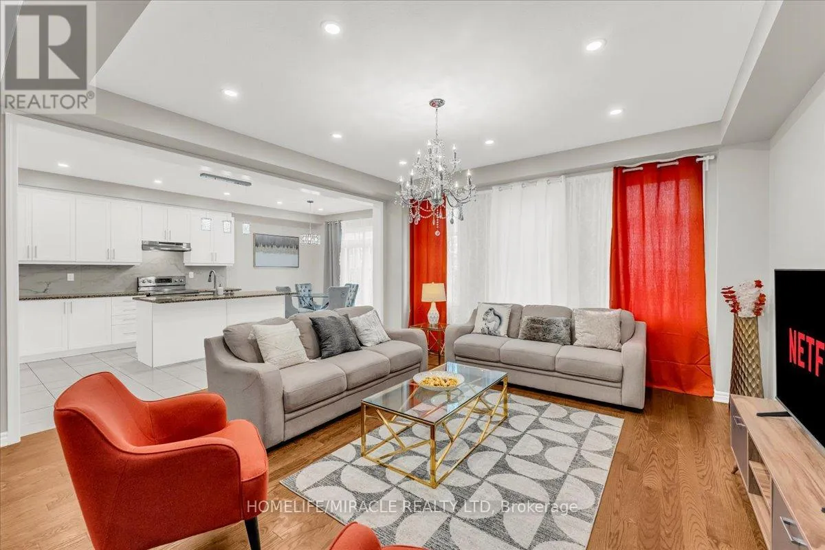 Maple Grove Rd & Compass Trail Welcome to this beautifully upgraded 4-bedroom, 4-washroom home nestled in the highly sought-after River Mills community of Cambridge. Boasting 2,835 sq. ft. of thoughtfully designed living space, this home combines comfort, functionality, and modern elegance. Step into a bright, open-concept main floor featuring pot lights, elegant chandeliers, and fresh paint throughout. The spacious kitchen showcases a stylish backsplash, ample cabinetry, stainless steel appliances and a seamless flow into the breakfast nook and living area - perfect for entertaining family and friends. A separate den/office provides ideal space for working from home or quiet study.The upper level offers four generous bedrooms, including a luxurious primary suite with a large walk-in closet and spa-inspired ensuite bath. The convenient upper-floor laundry adds ease and practicality to your daily routine. Each washroom reflects modern finishes and comfort.Enjoy a fully fenced backyard, perfect for outdoor dining, play, or relaxing in privacy. Situated close to schools, parks, shopping, restaurants, and major highways, this home offers both convenience and community charm. For added comfort and convenience, this home can also be rented furnished at an additional cost. Move-in ready with modern finishes throughout. (id:27476)