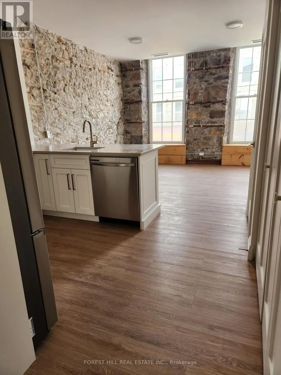 Water St Welcome to Granite Lofts, located at 35 Main Street in the heart of historic downtown Galt, Cambridge. This unique heritage building blends early 20th-century industrial charm with modern loft-style living. Step inside to soaring ceilings, exposed brick and beam architecture, oversized windows, and open-concept layouts that flood each unit with natural light. Carefully restored and thoughtfully updated, these lofts feature modern kitchens and con temporary finishes that highlight the character of the original structure. Located just steps from the Grand River, trendy cafes, art galleries, and boutique shopping, Granite Lofts offers both convenience and culture. With easy access to trails, transit, and key commuting routes, this location is ideal for professionals, creatives, and those looking for a vibrant urban lifestyle with a touch of history. Parking passes to be purchased through the City of Cambridge for any of their downtown lots. Authentic loft. Style units with exposed brick and timber beams. One bedroom, open-concept layouts with high ceilings and large windows. Modern kitchens with quartz countertops and stainless-steel appliances. In-suite laundry and secure building access. Walkable to shops, restaurants, and the Gaslight District. Easy access to Highway 401 and public transit (id:27476)