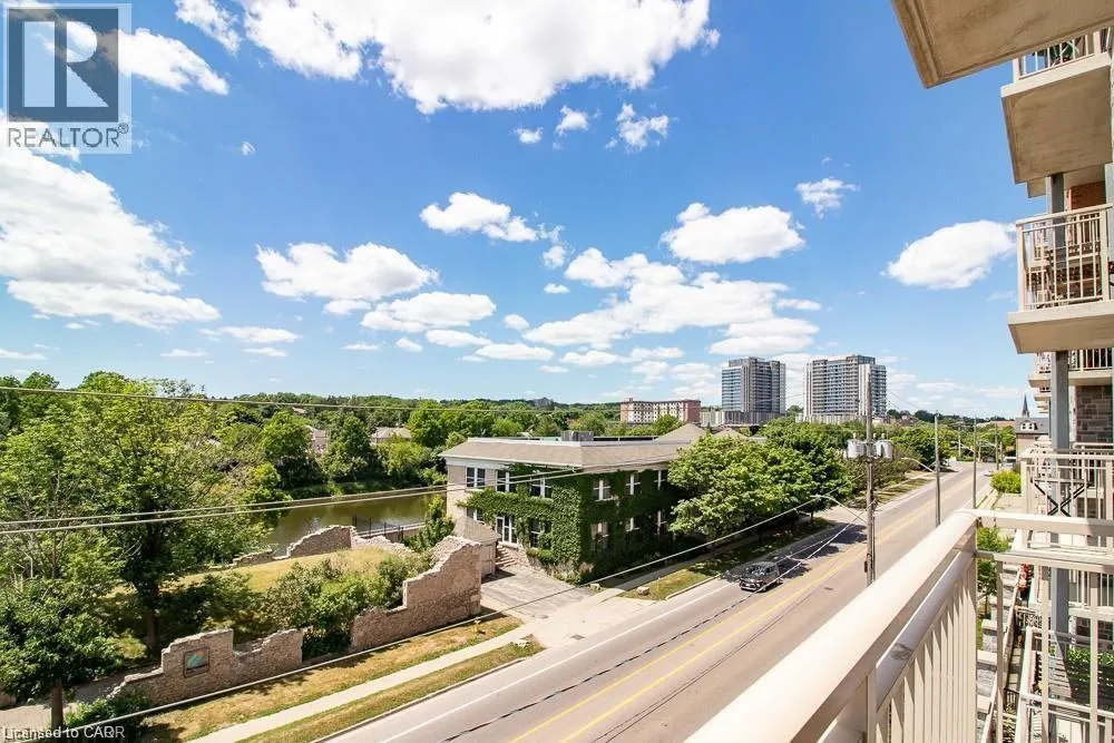 AINSLIE ST. S. TO WATER ST. S. No maintenance required in this condo with all fees included in the rent. This unit has 2 bedrooms and 2 full baths. Primary bedroom has walk in closet and 2nd bedroom was used as a den/office. Full kitchen with SS appliances and open concept living space, private balcony and lots of natural light, in unit laundry and private premium 1 car parking in the main indoor garage. Pets are welcome but some restrictions apply. This building is located close to historic downtown Galt with cafes, restaurants, and shopping right at your doorstep as well trails and the Grand River to explore. All you have to pay for is the rent, hydro and water. Available January or earlier. (id:27476)
