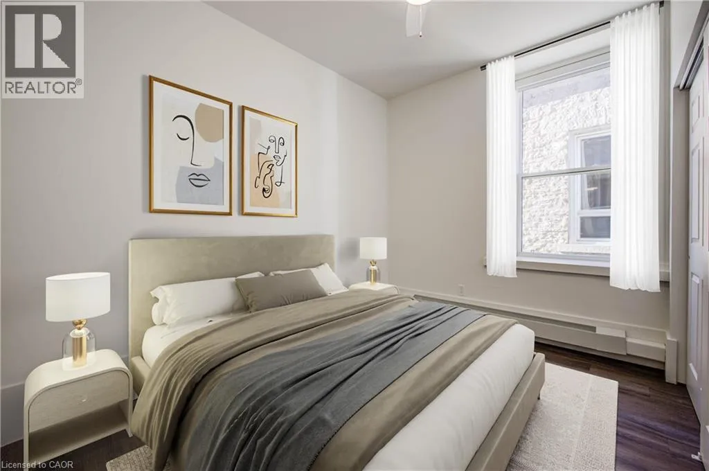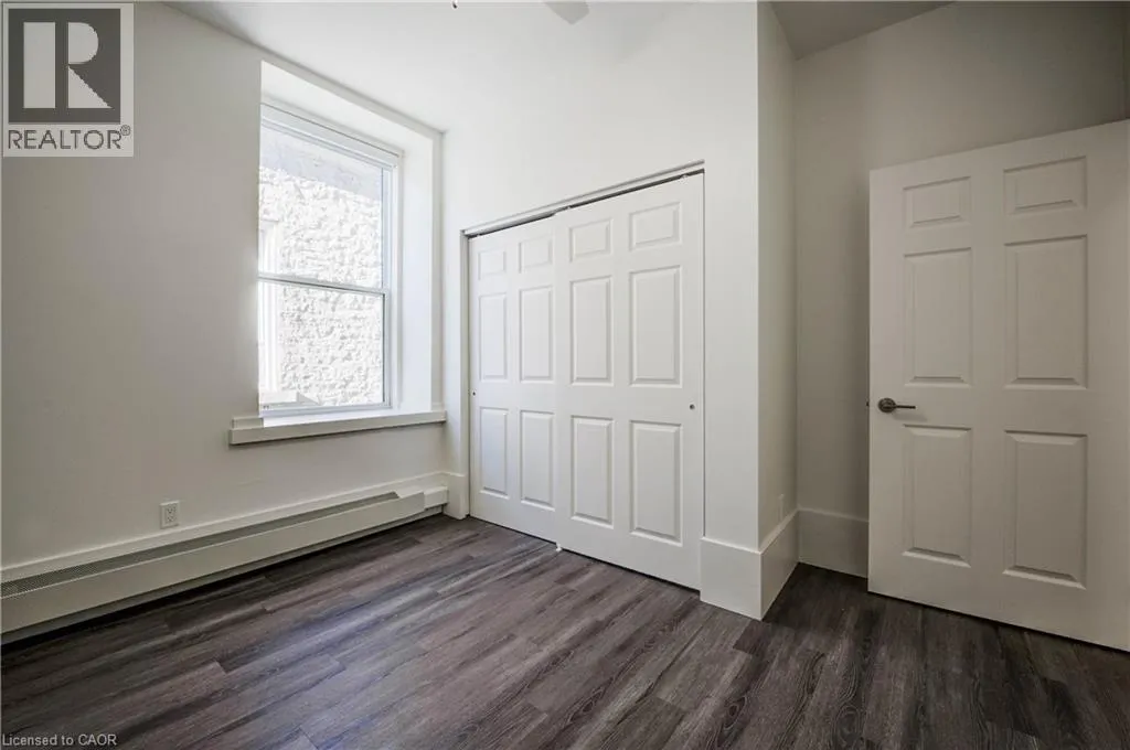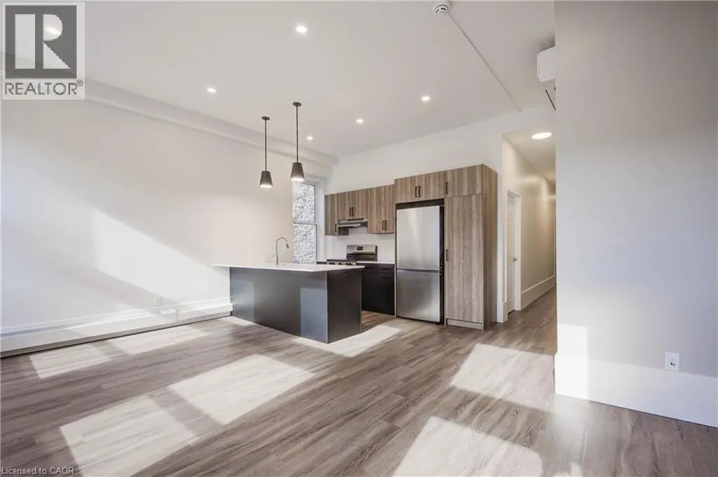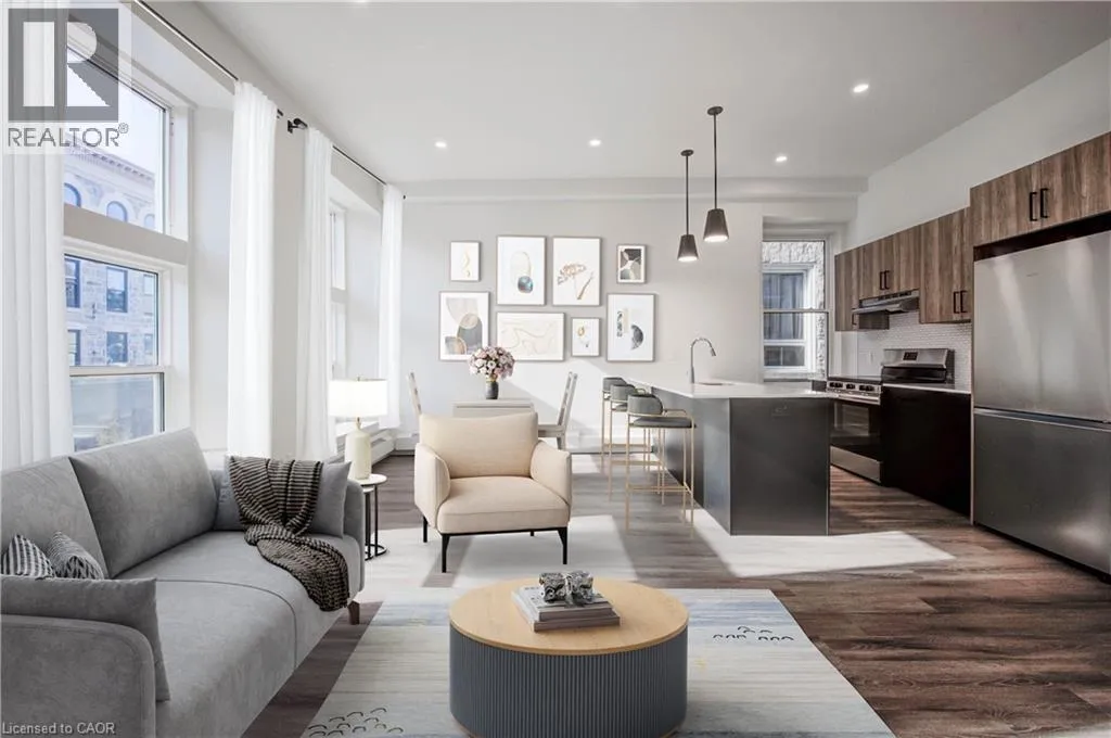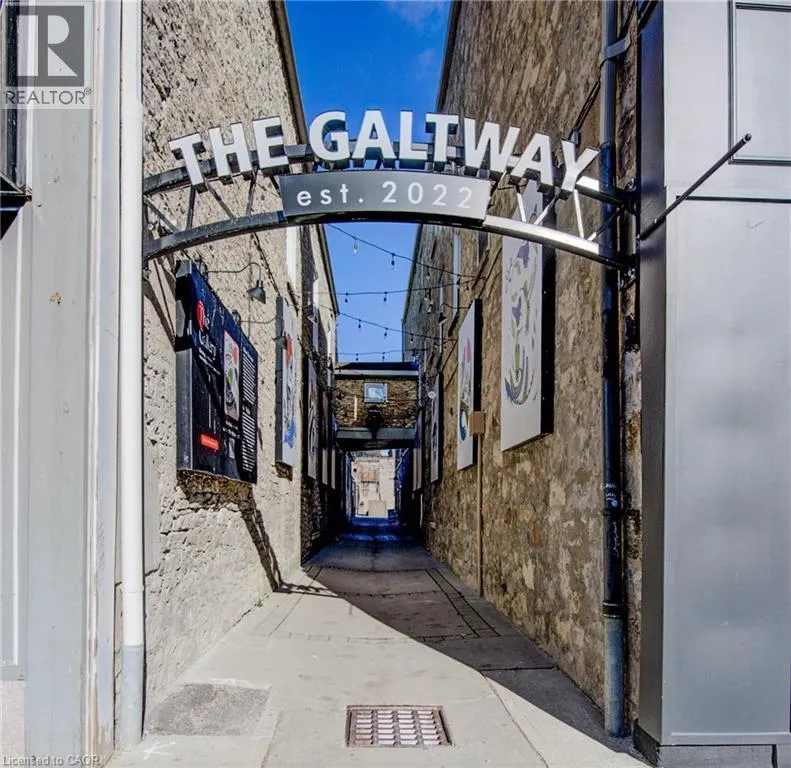 Water Street to Main Street. Laneway Lofts presents contemporary upscale living in a landmark heritage building nestled in the heart of historic Galt, downtown Cambridge. This vibrant urban community is just steps away from local cuisine, shopping, entertainment, parks, and more. Whether youâre enjoying the picturesque city centre or relaxing in your thoughtfully-designed suite, Laneway Lofts offers the perfect blend of comfort, convenience and charm. Our recently renovated two-bedroom apartment, is located in a 160-year-old limestone building that has been fully modernized. This unit has stunning views of the Galt urban landscape and âThe Galtway,â an outdoor gallery of rotational works of art and murals in the laneway below. Apartment 8 has an Open concept layout, Large bright windows with shades, High ceilings, Designer cabinetry with quartz countertops, Kitchen breakfast bar, Energy efficient stainless steel kitchen appliances including dishwasher and microwave, Tiled bathroom with glass shower doors, Contemporary plumbing and light fixtures, Built-in closets with ample storage, Luxury vinyl plank flooring, In-suite laundry, Energy efficient heating and air conditioning, One parking space included. Optional storage space available. Galtâs downtown provides an array of exceptional amenities. Discover quaint shops, cozy cafes, lively pubs, and diverse restaurants, all within walking distance. Explore the year-round Cambridge Farmerâs Market, the Cambridge Idea Exchange libraries, and the Hamilton Theatre, or take a leisurely stroll through the Gaslight District and the scenic Mill Race Park by the Grand River. Easy access to public transit. In the warmer months, Main Street comes alive with local festivities, including live music and vendor events. Your everyday essentials are met with ease â a full-size grocery store, pharmacies, salons, recreational facilities and banking are a short walk away. Exterior cameras on location. Photos are virtually staged. (id:27476)