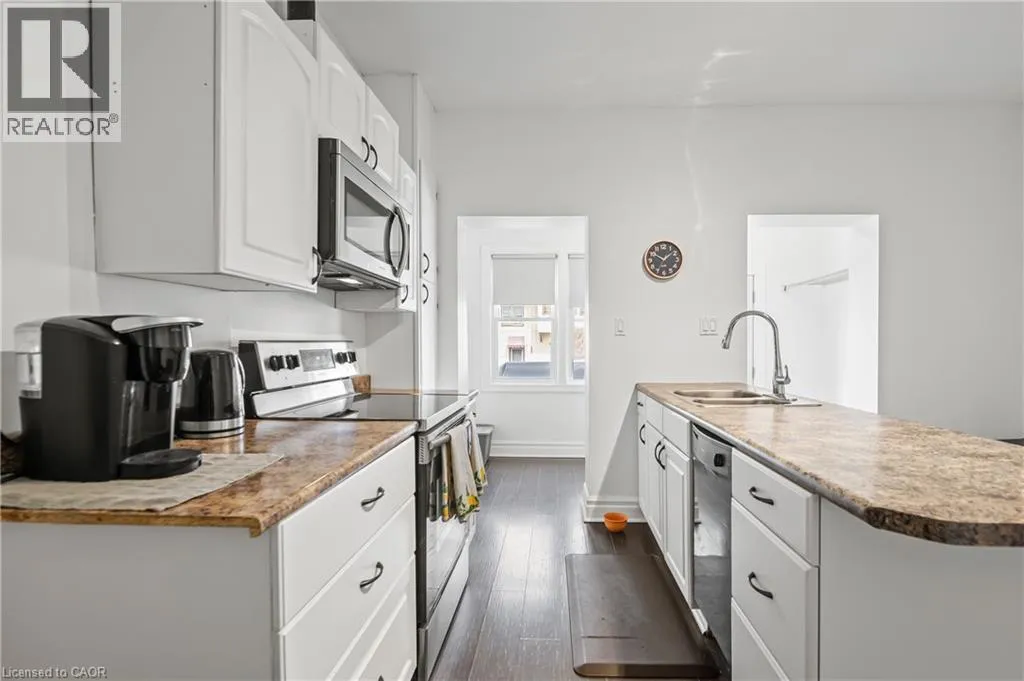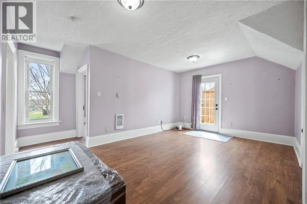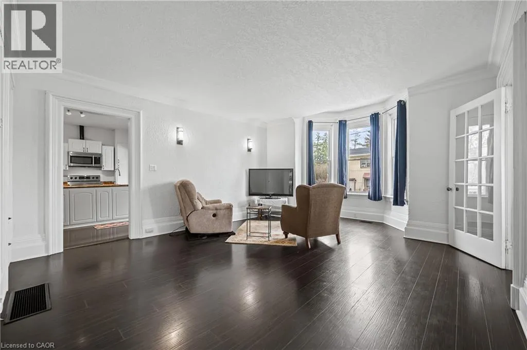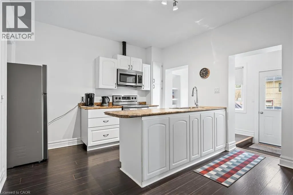 George Street North to James Street EXCEPTIONAL OPPORTUNITY LIES IN THIS HOME / TRIPLEX AS A MULTI-GENERATIONAL HOME / RENTAL / AIR BNB. ALL DWELLINGS ARE ABOVE GRADE! It is three homes contained in a house with stunning curb appeal settled in a well established neighbourhood of West Galt. Situated across from Dickson Park / Arena and within walking distance to Riverbluffs Park Walking Trails along the Grand River, Downtown Galt /Gas Light District and the Hamilton Theatre, you are offered multiple opportunities due to its prime location. Charming characteristics of an older home are still present, with high ceilings and baseboards as well as large windows allowing a stream of natural light throughout the generously sized 2 - Two Bedroom Units and the One Bedroom Unit. Each has its own private fenced in yard space and deck, laundry accessibility, dishwasher, water heater and hydro meter. A large detached 2 car garage / shop and two driveways allows plenty of parking for everyone. Motion lights are present around the exterior of the property. Currently there are no leases in place, so you are free to set your rates/terms. Close to reputable Schools, Church, Library, Pubs, Parks, Trails and Shops. Reach out for more detailed information (id:27476)