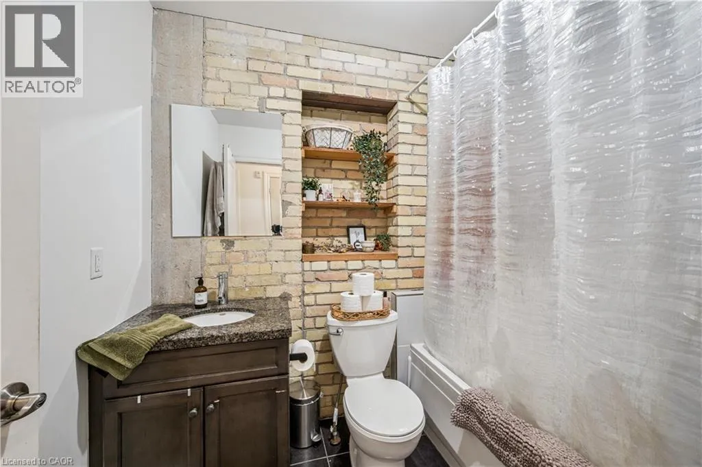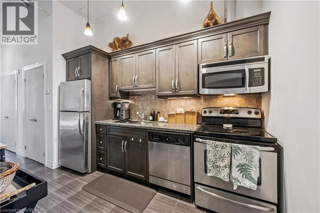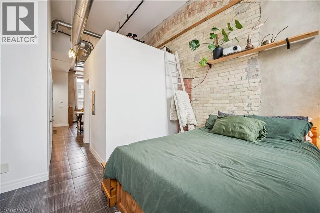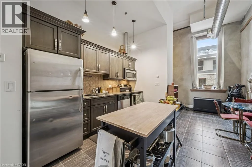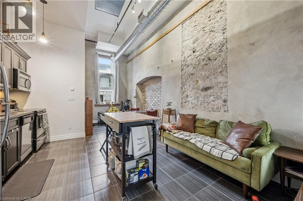 Concession and Water Experience authentic loft-style living steps from the Grand River, restaurants, and cafés. This rare 1-bedroom, 1-bath condo blends heritage character with modern comfort across 620 sq. ft. of thoughtfully designed space. Soaring 14-foot ceilings, 10-foot windows with deep sills, and exposed ductwork showcase the buildingâs industrial roots, while concrete and brick interior walls add timeless texture. The open-concept layout features a unique arched brick alcove in the dining area, granite countertops, stainless steel appliances, in-suite laundry, central air, and in-floor radiant heating. Added conveniences include generous basement storage, a pulley system for bike storage, and one parking space (#27) directly outside the unit. Enjoy a lifestyle surrounded by Galtâs best - scenic river trails, local cafés, shops, theatres, and the U of W School of Architecture are all just a short walk away. Available IMMEDIATELY for $1,850/month + utilities. (id:27476)