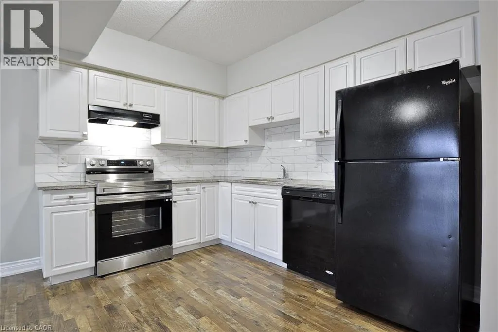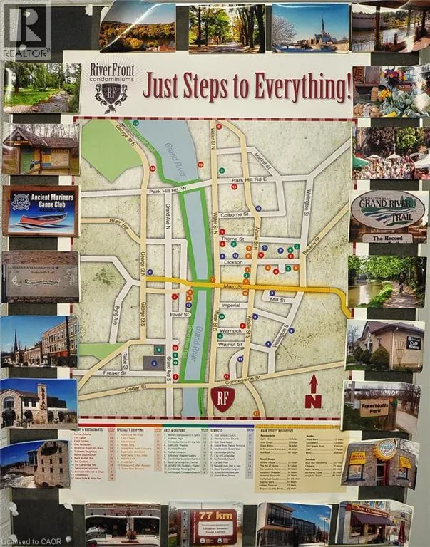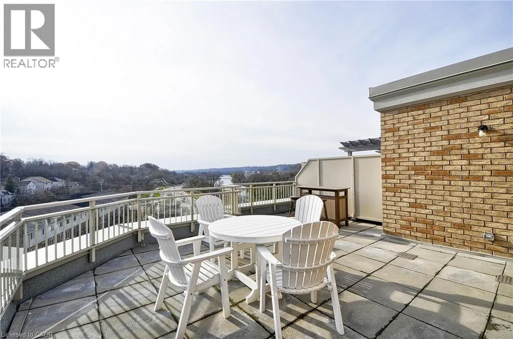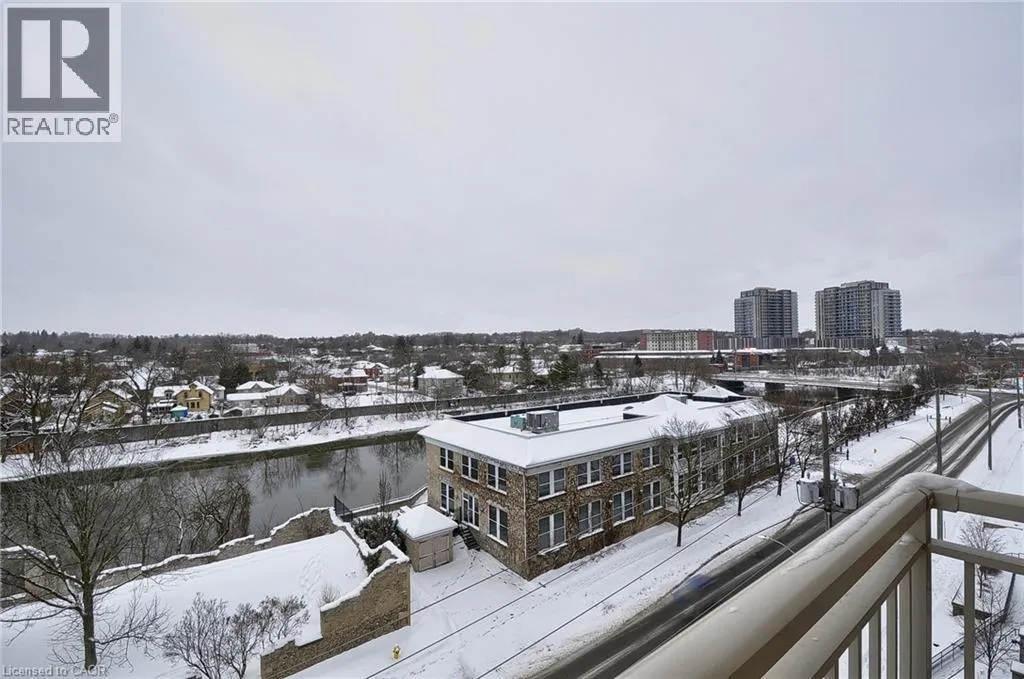 Water Street just past Concession St on the left side across from the Grand River This 2-bedroom 2 Bathroom condo offers beautiful views of the Grand River, a prime location close to all the amenities that downtown Galt has to offer like the Cambridge Mill, University of Waterlooâs School of Architecture, and the vibrant Gaslight District. There is no shortage of trails, parks and activities to engage at your doorstep! As you enter your unit you will step into this freshly painted open-concept floor plan. Featuring expansive windows that flood the space with natural light. The kitchen is spacious and offers Fridge, Stove, Dishwasher & New Backsplash. The living room with new laminate flooring leads to a private balcony, perfect for enjoying peaceful river views and your morning coffee. The spacious primary bedroom offers a serene retreat and 4 pc ensuite, while the versatile 2nd bedroom can be customized as an office, gym or guest room. Both bedrooms have new laminate flooring. Building amenities include a rooftop terrace with a barbecue area and stunning views of the natural surroundings. There is plenty of visitor parking and a kids playground right next to the building at the rear side. Donât miss the opportunity to live in this beautiful condo in a sought-after location! (id:27476)