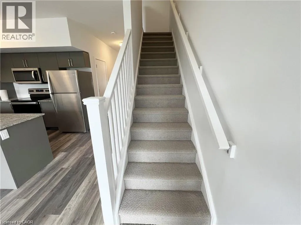 Townline Rd to Melran Dr to River Rd. MODERN LIVING IN NATUREâS SERENITY! Welcome to this stunning Cedar model luxury townhome by award-winning builder Reidâs Heritage Homes, beautifully overlooking the Speed River. Showcasing a striking blend of stone, glass, and wood architectural details, this modern residence offers style, comfort, and an unbeatable location. This nearly new townhome (approximately 3.5 years old) features a functional open-concept layout with luxury vinyl plank flooring throughout. The chef-inspired kitchen is equipped with granite countertops, stainless steel appliances, and an oversized breakfast island, ideal for both everyday living and entertaining. The spacious living and dining area opens to a private balcony with scenic views, perfect for relaxing or enjoying your morning coffee. Offering 3 bedrooms and 2.5 bathrooms, including a primary suite with a contemporary glass-enclosed shower and a walk-in closet, this home provides comfort for professionals, small families, or anyone seeking a stylish retreat. With over 1,400 sq. ft. of living space, the property also includes an unfinished walk-out basement, ideal for storage or future use, as well as upper-level laundry and inside access to the garage. Located in the heart of Hespeler, youâre just steps from Hespeler Village, where charming shops, artisan bakeries, and craft breweries await. Enjoy nearby scenic trails, take a stroll through Forbes Park, or explore the Mill Pond Trail to Ellacott Lookout, all set within a peaceful natural environment. Conveniently minutes to Highway 401, with close proximity to schools, public transit, recreation centres, parks, and nature. Tenant pays utilities, including water, hot water heater, gas, hydro, and tenant insurance. Available February 1st. Donât miss the opportunity to call this beautifully finished townhomeâwhere modern luxury meets natureâyour next home. (id:27476)