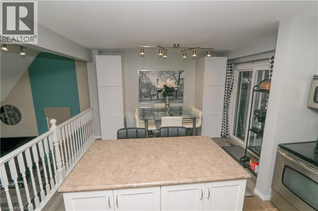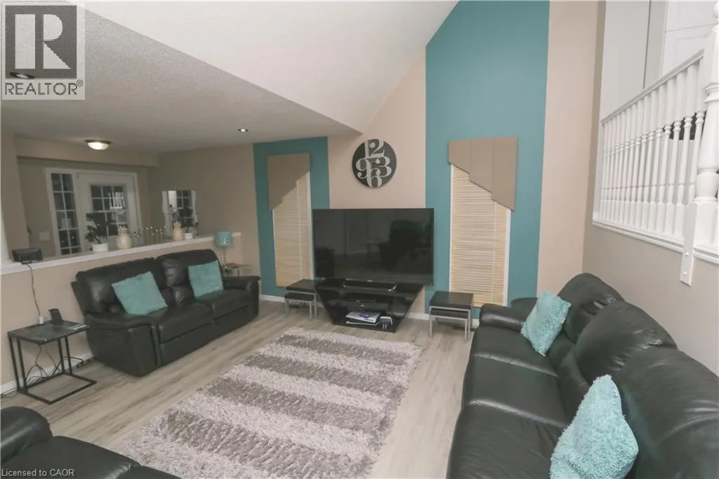 This beautifully designed multi-level home offers 3 spacious bedrooms and 3 bathrooms, blending comfort and functionality throughout. The inviting living room features a stunning cathedral ceiling, creating an open and airy atmosphere that flows seamlessly into the kitchen which overlooks the living space-perfect for everyday living and entertaining. The dining area includes a walkout to the backyard, extending your living space outdoors. A finished rec room provides additional space for family gatherings, a home office or entertainment. Convenient main floor laundry right off inside entry from garage. Outside, enjoy a good sized front porch ideal for relaxing, along with a beautifully landscaped backyard with an above ground pool, stamped concrete patio and low maintenance composite deck-perfect for summer enjoyment The home also features a 1.5 car garage and a stamped concrete driveway with parking for 4 vehicles offering ample parking in the driveway. This property is located in a desirable area in Hespeler, close to schools, Community Centre/skating rinks, and easy access to 401 (id:27476)