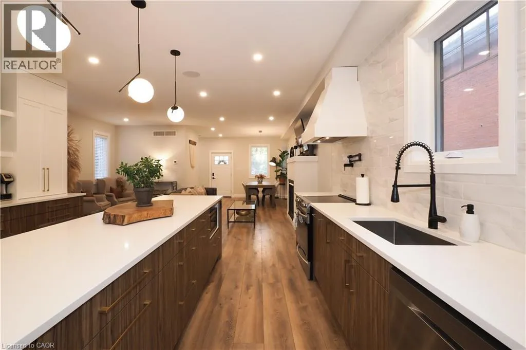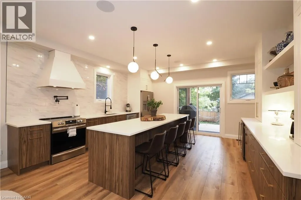 King Street to Eagle Street South, property on the right past Queenston Road Custom built infill home in South Preston! Built to entertain with a fully open concept main floor with gourmet kitchen with expansive counters island and bar area! Enjoy the warmth of the fireplace as the autumn season approaches! But not to worry there is still time to enjoy a glass of wine on the large covered rear deck overlooking the fenced yard and detached garage/shop! The upper level has 3 spacious bedrooms (one used as an office) including a primary bedroom built to spoil you! Including a ensuite with large walk-in shower and heated floors! Rounding out the upper level is an additional 4 pc bath and Laundry! The Lower level has a 4th bedroom, large recreation room with wet bar and another 4pc bath! (4 baths in total!) This home was designed with a separate entrance in to the lower level enabling a perfect in-law suite, just needs an stove! All the boxes have been checked here! All you have to do is place your furniture and enjoy! Note: garage/shop has hydro! Note: Seller willing to convert this home to Duplex prior to closing at agreeable terms. (id:27476)