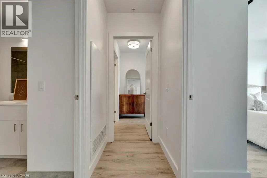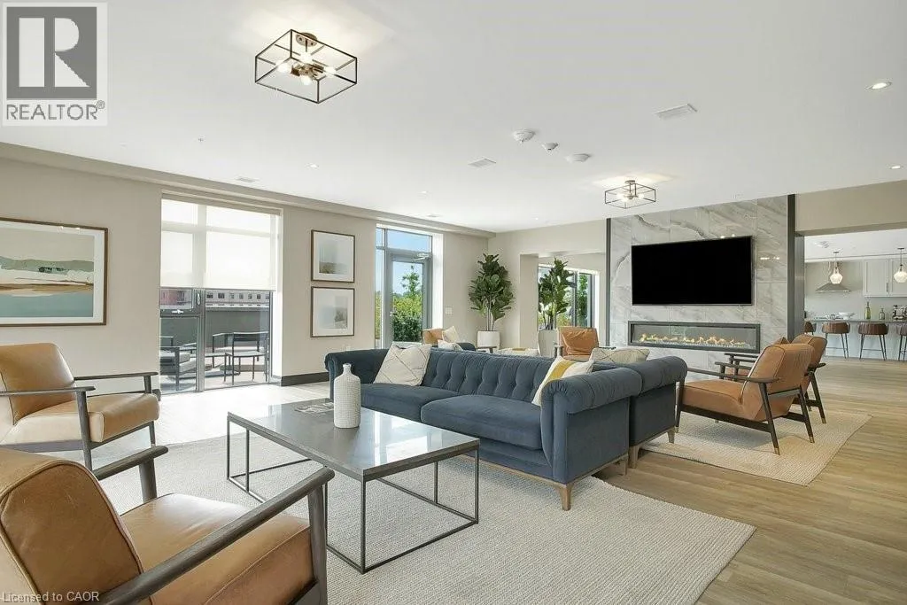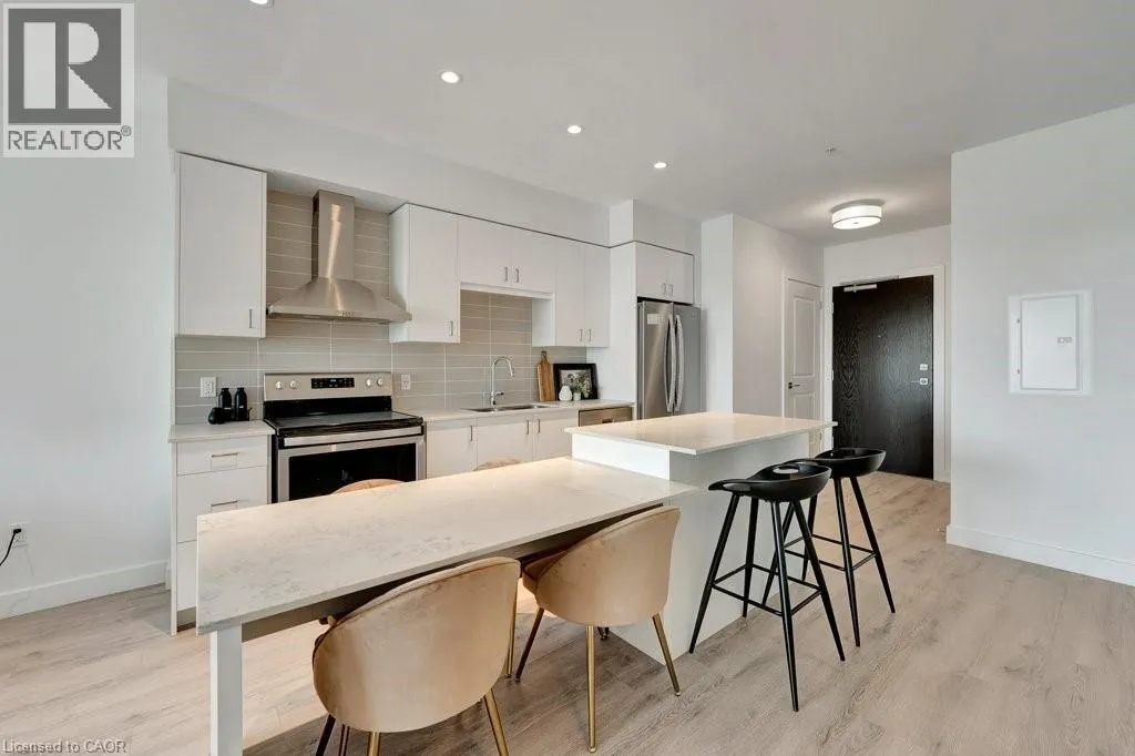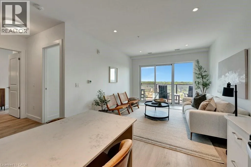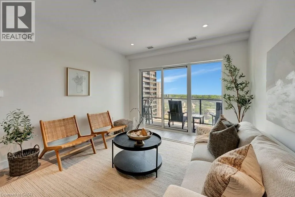 St Andrews St to Glebe St Modern and refined, this 2-bedroom, 2-bathroom condo offers 1,007 sq ft of well-designed living space in Cambridgeâs highly sought-after Gaslight Districtâthe cityâs premier hub for dining, entertainment, and culture. The bright, open-concept layout features 9-foot ceilings, a contemporary kitchen, and expansive windows that fill the space with natural light. The primary bedroom includes a walk-in closet, while in-suite laundry adds everyday convenience. Enjoy a generous private balcony, accessible from both the living room and bedroom, showcasing panoramic views of the Grand River, Gaslight Square, and the surrounding cityscape. This unit also includes two underground parking spaces. Residents of Gaslight Condos have access to an exceptional array of amenities, including a state-of-the-art fitness centre, games room, study and library area, and an outdoor terrace with pergolas, fire pits, and BBQ areas overlooking the vibrant square below. Ideally located in one of Cambridgeâs most dynamic communities, this condo offers a perfect balance of modern comfort and urban living. (id:27476)