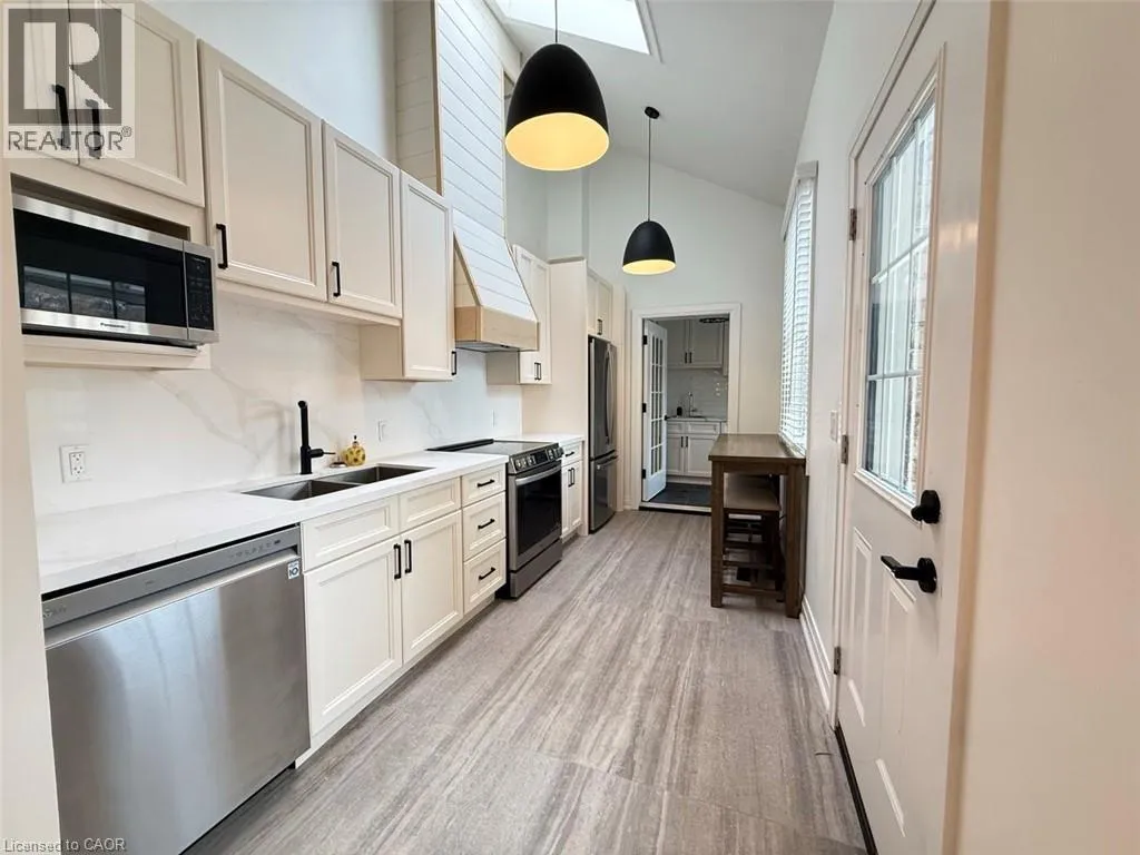 Grand Ave South to Victoria Ave. WELCOME TO THE IRONWORKS PRIVATE RESIDENCE. Step into refined urban living in an exquisitely restored 1895 fourplex, where timeless architecture meets modern luxury. Suite 37A is an elegant main-floor residence offering 959 square feet of thoughtfully designed living space, blending historic character with contemporary comfort. Soaring 10-foot ceilings create an immediate sense of openness, while the chef-inspired kitchen anchors the home with premium finishes, sleek cabinetry, and space designed for both entertaining and everyday indulgence. A spa-inspired bathroom with a thermostatic shower system delivers a boutique-hotel experience, complemented by a dedicated in-suite laundry room for effortless living. Both bedrooms are generously proportioned, filled with natural light, and feature ample closet space. Throughout the suite, modern engineered flooring and curated luxury details elevate the aesthetic and ambiance. Step outside to your private outdoor veranda, overlooking a beautifully landscaped common patioâideal for summer evenings, BBQs, and relaxed entertaining. With both front and rear entrances, the unit offers exceptional convenience and flow. The residence includes one parking space, with the option to secure a second space for $75 per month. Perfectly positioned just steps from the Gaslight District, residents enjoy walkable access to acclaimed restaurants, cafés, and everyday amenities. This is heritage livingâreimagined for those who appreciate craftsmanship, comfort, and a truly elevated lifestyle. Utilities (heat, hydro, gas, and water) are to be paid by the tenant(s). (id:27476)