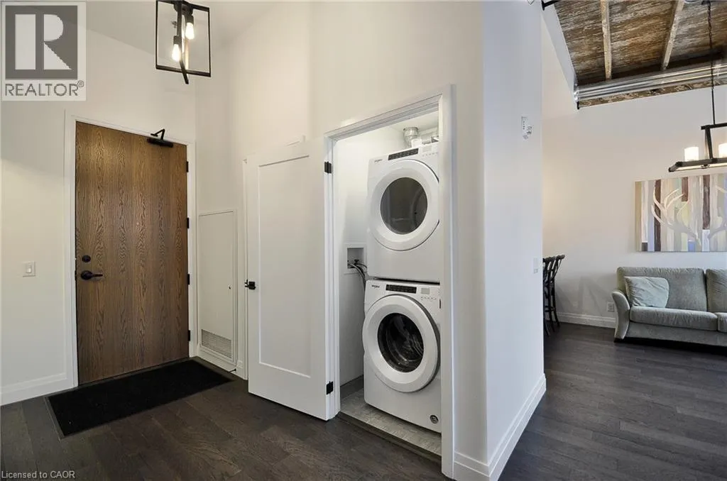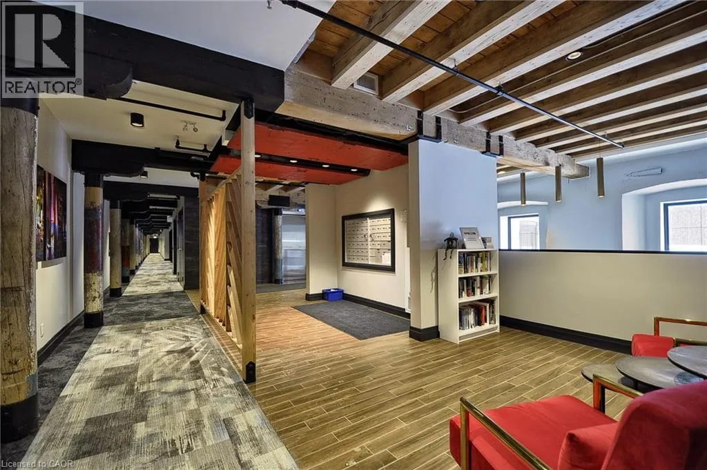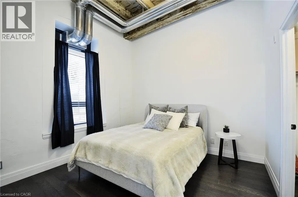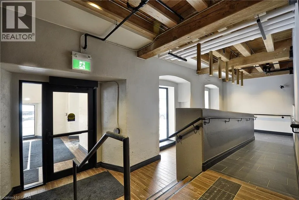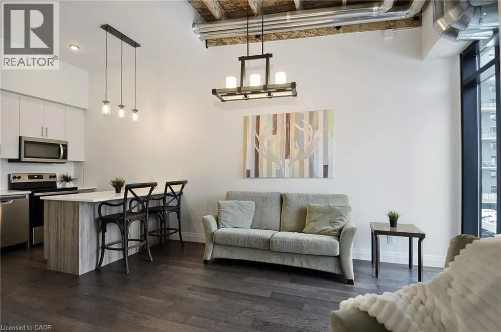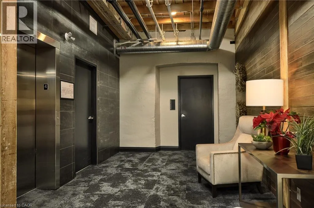 Experience boutique living at Riverbank Lofts, a landmark conversion in the heart of historic downtown Hespeler. This iconic riverside building blends heritage charm with modern sophistication along the banks of the Speed River. This bright one-bedroom condo features soaring ceilings, oversized windows, and exposed wood beams that highlight the buildingâs character. The open-concept living space flows into a contemporary kitchen with quartz countertops and a breakfast bar, perfect for entertaining. Step out onto your private balcony to unwind. The spacious bedroom includes a large walk-in closet, in-suite laundry, and high ceilings throughout. Includes one parking space and access to premium amenities such as three resident lounges, a fitness centre, bike storage, and a dog wash station. Just steps to cafés, shops, parks, and scenic river trails, this is boutique urban living at its finest. (id:27476)