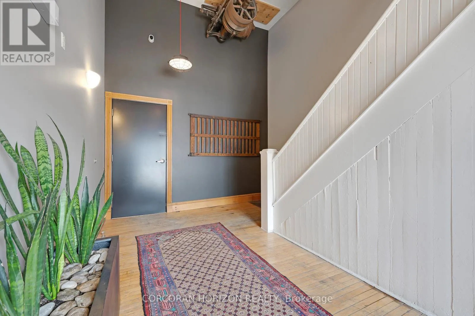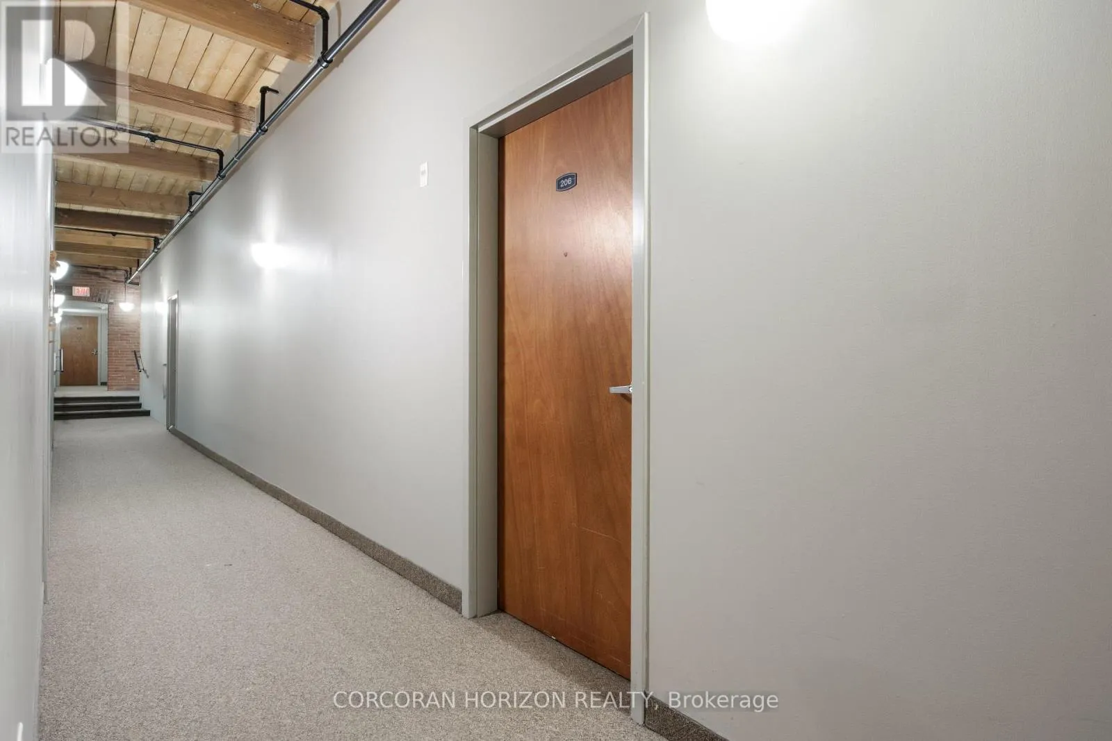 Cross Streets: McNaughton St. ** Directions: Main St to Spruce St. Rarely offered with TWO PARKING SPACES, this exceptional modern industrial-style condo at 206-85 Spruce Street in Cambridge offers a perfect balance of space, style, and convenience. The unit also includes a storage locker and features over 1,200 sq. ft. of thoughtfully designed single level living, freshly painted throughout for a crisp, move-in-ready feel. Exposed brick, soaring ceilings, and oversized windows flood the interior with natural light, showcasing its warm yet bold urban character. The open-concept living and dining areas extend through double doors to a private balcony overlooking lush gardens, creating a peaceful and private retreat with beautiful nature views-ideal for morning coffee or effortless entertaining. The kitchen is appointed with contemporary cabinetry, generous counter space, and built-in storage, enhanced by distinctive industrial details. The primary bedroom offers a walk-in closet with direct access to the ensuite, while the second bedroom provides flexible space for guests, a home office, or creative use. Completing the unit is a convenient second bathroom, thoughtfully designed with the option to add a shower for enhanced functionality. Located just steps from downtown Cambridge and the vibrant Gaslight District, with shops, dining, and scenic trails nearby, this home presents a rare opportunity to enjoy refined industrial living in a highly walkable setting. (id:27476)