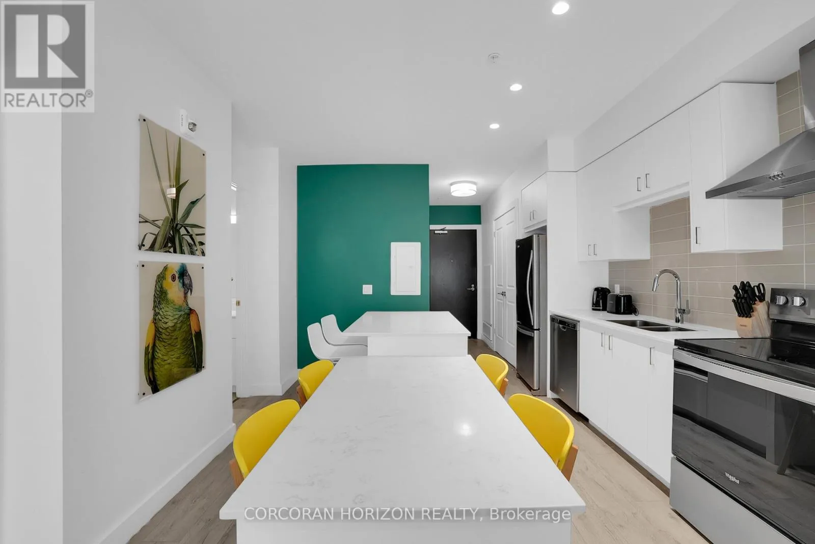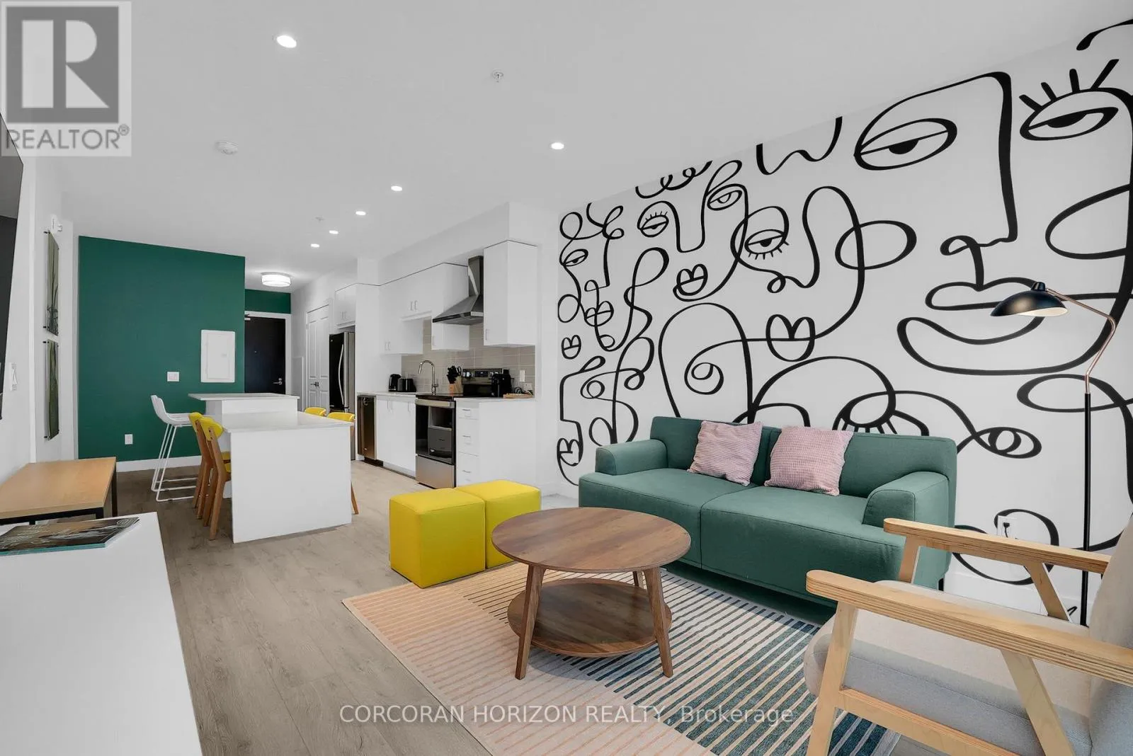 Cross Streets: St. Andrew's St. ** Directions: St Andrews St to Glebe St. Welcome to 605-15 Glebe Street, a one-bedroom condo set in the heart of Downtown Galt's Gaslight District. The space features 9-foot ceilingsand an open layout that feels bright and easy to settle into. The kitchen offers plenty of cabinet storage, quartz countertops, a tile backsplash, designer hardware, and stainless steel appliances, flowing effortlessly into the living area for comfortable everyday living or hosting friends. Floor-to-ceiling windows bring in abundant natural light and open onto a generous balcony with views of the Grand River, Gaslight Square, and surrounding historic churches. The bedroom includes a walk-in closet and access to a private balcony, creating a quiet place to unwind. In-suite laundry is conveniently located in the bathroom. Residents can enjoy access to a fitness room, games room, and a rooftop terrace with seating areas, BBQs, and a fire pit. One parking space is included. Located in the historic core of Galt, the Gaslight District offers a walkable lifestyle surrounded by restaurants, shops, arts, and year-round community events. (id:27476)