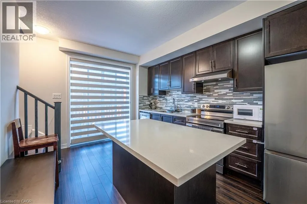 Pinebush Rd & Struck Crt Welcome to this modern townhouse, sits in a sought-after area just south of Highway 401 and Pinebush Road, giving you quick access to everything you need. The main floor feels bright and open, with large windows, hardwood flooring, and a kitchen finished with quartz counters, a stylish backsplash, and stainless steel appliances. Step out to a spacious deck, perfect for relaxed evenings, barbecues, or hosting friends. Upstairs, youâll find three comfortable bedrooms with good closet space and a full bathroom on the third level. Youâre minutes from Conestoga College, close to parks and just a short stroll from the Smart Centre for easy shopping and everyday essentials. All utilities to be paid by the tenant including HVAC by Ener care. (id:27476)