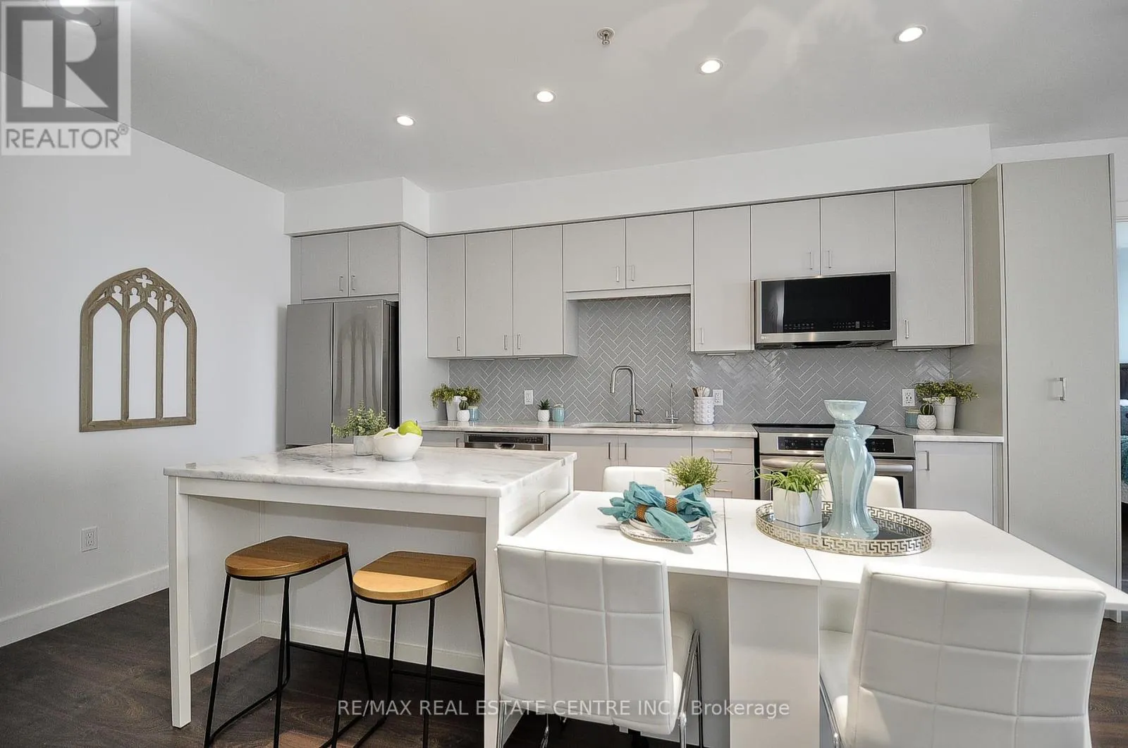 Cross Streets: St Andrews St and Water St. ** Directions: Concession St to Grand Ave S. This elegant and spacious 2-bedroom, 2-bathroom apartment is completely move in ready, located in the Gaslight District. A beautifully designed suite offering a bright open-concept kitchen and living area, enhanced by custom built-ins and expansive windows that flood the space with natural light. Upgraded appliances, pull out cabinetry in the pantry, and other closet built ins. Both bedrooms and the living room feature direct walkout to the expansive balcony, creating an inviting indoor-outdoor living experience. The primary ensuite is complete with double sinks, while in-suite stacked laundry adds everyday convenience. Both bathrooms are 4 piece. Reverse osmosis system, and one out of the two parking spaces is equipped with EV plug for an electrical car. Residents enjoy access to premium amenities, including a fully equipped fitness centre, outdoor terrace, and stylish event spaces. Ideally located just moments from downtown Galt's renowned restaurants, cafés, markets, and more. (id:27476)