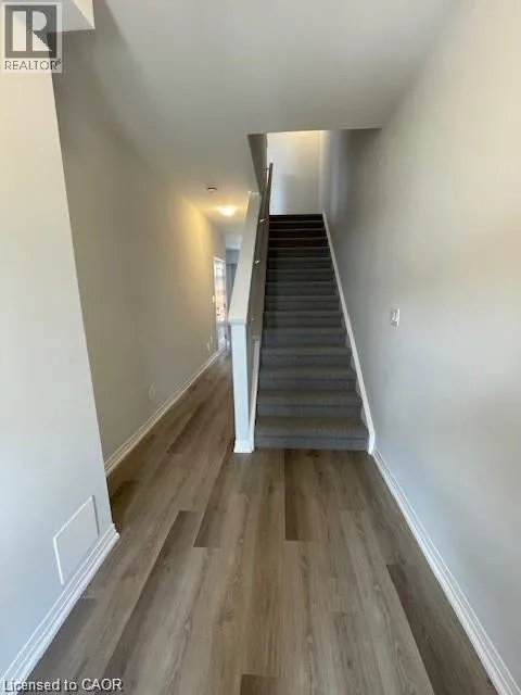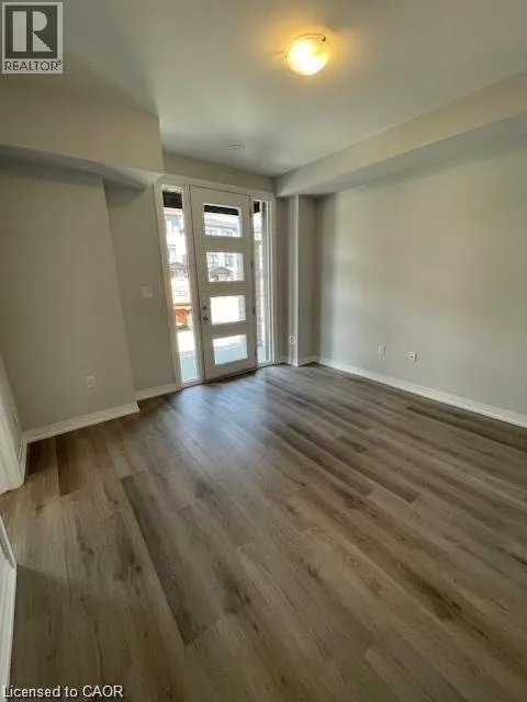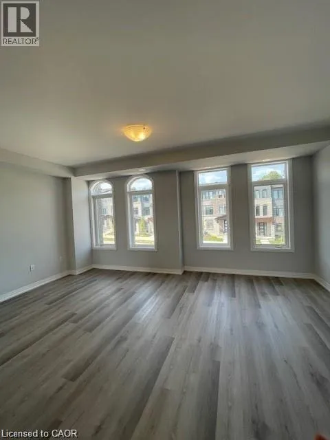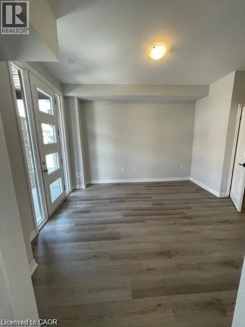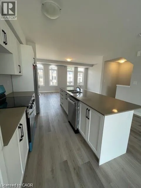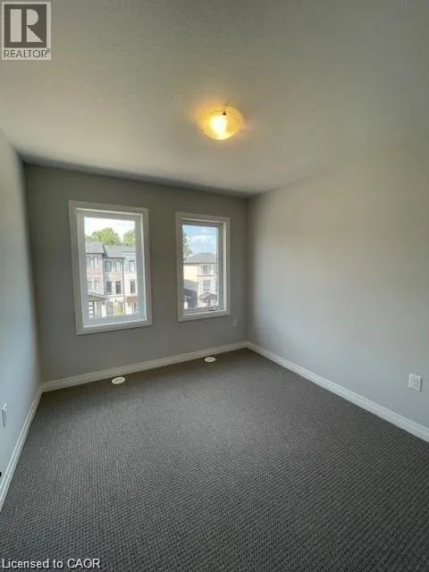 SPEEDSVILLE/EQUESTRIAN WAY Brand new executive 3-storey townhouse with a bright open-concept design, 3 bedrooms + den (ideal as a home office or 4th bedroom) and 4 bathrooms. Loaded with upgrades featuring high ceilings, modern kitchen with stainless steel appliances and oversized island, private balcony, and upper-level laundry. Enjoy 2 parking spaces, attached garage, and front & rear access. Spacious primary bedroom with walk-in closet and upgraded ensuite. Excellent location close to schools, parks, trails, shopping, restaurants, transit, expressway, and HWY 401. A perfect home for tenants seeking style, space, and convenience. (id:27476)
