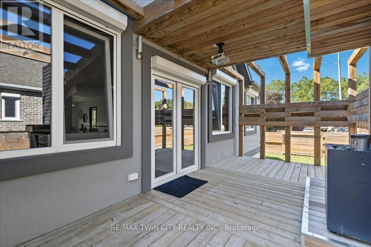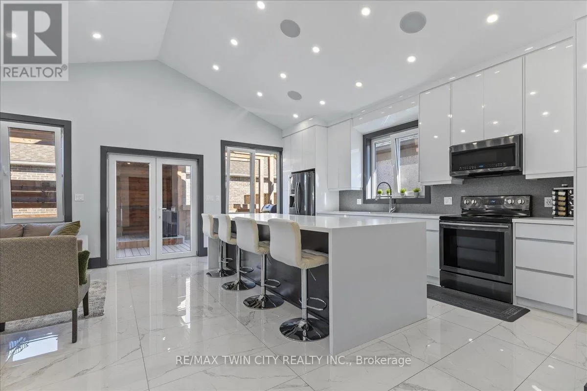 Cross Streets: Winterhalt Ave. ** Directions: King Street East to Montrose Street North. Custom built 2019 bungalow! Located in Preston North, walking distance to St Michael Catholic School, this home offers tons of structural andcosmetic updates. With over 2500 sq feet of total living space and 9' ceilings heights on each level, the home offers capacity and useability; alsofeatured on the main level are vaulted and coffered ceiling accents. The kitchen is a modern design and offers capacity with style, featuring afour person island with waterfall countertops and stainless steel appliances. It sits adjacent to the family room, in the open space along the backof the home. The focal point is a stunning contemporary feature wall with electric fireplace insert. Smart home features are integratedthroughout, including over 160 LED pot lights with diming capacity, multi zone surround sound system, and programable thermostat. Thebalance of the main level consists of the primary suite with walkin closet and 4 pc luxury ensuite complete with body jets and rainfall glassshower, 4 pc main bathroom, second bedroom, and laundry mud room with direct access to the garage. A hardwood staircase leads to the fullyfinished basement offering an oversized recreation room with wet bar rough in, 4 pc bathroom, two bedrooms, one with 3 pc ensuite. The homeis carpet free with porcelain and engineered flooring throughout. For maximum comfort, an in-floor heating system organized in multiple zonesspans the entire home, making sure you eliminate cold basement floors. The home is also thermally superior and safe, not only is it completelycladded in stucco, providing for a higher than required R value, it also features high quality European tilt and turn windows and doors with robustlocking mechanisms and electronic exterior shutters, giving you the ability to completely shut out light during daytime if desired. The house sitson a larger corner lot with a fully fenced yard, backyard deck, and double concrete driveway. A home you need to see in person to fullyappreciate! (id:27476)