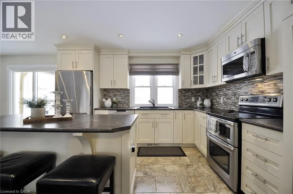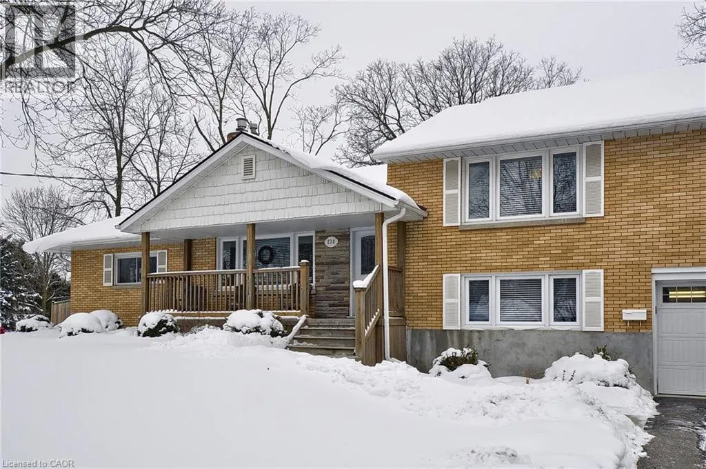Fountain St to Kitchener Rd Welcome to 230 Kitchener Rd, a spacious 3+2 bedroom, 2-bathroom side split offering over 2500 sqft on a rare half-acre plus city lot. This unique property is an entrepreneur's dream, boasting parking for up to 10 vehicles, a 20x20 detached workshop with full hydro, and a double-car garage featuring a fully functional service pit â perfect for an RV or home-based business. Inside, enjoy maple hardwood and ceramics throughout the main levels, an all-wood custom kitchen, separate dining room, and a cozy gas fireplace. A finished man cave with heat and roughed-in plumbing extends from the garage, leading to the backyard. The property also features one of Waterloo Region's largest black walnut trees, a large wrap-around deck, and updated 200 amp service. The full unfinished basement with a French drain and roughed-in bath provides ample storage and future potential. Don't miss your chance to view this well-kept, move-in-ready family home. Call today and book your private showing to see this one of a kind property and all it has to offer! (id:27476)