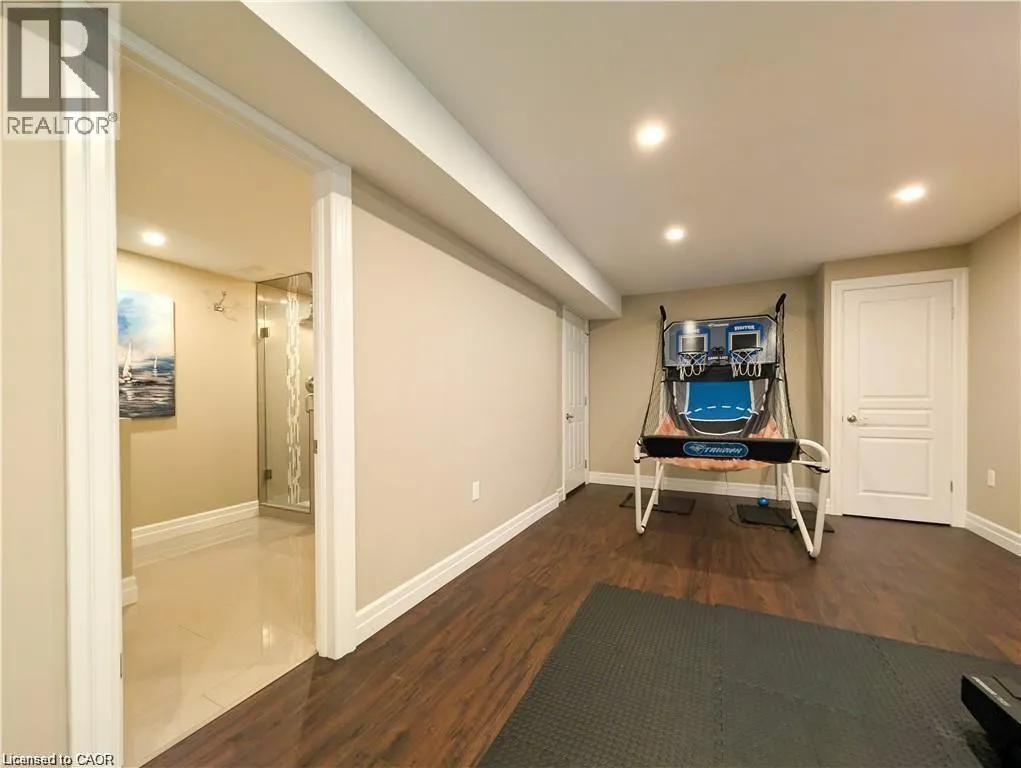BISMARK DRIVE Welcome to 76 Blossomfield, Magnificent formerly Builders model home. This Immaculate west Galt Beauty situated on 51 ft lot boasts 4800 sq ft of Luxury living space and loaded with all kind of upgrades. The main floor has 9 ft ceiling, hardwood, porcelain tiles, surround sound system, open to above great room with gas fireplace, surrounded with big windows offering natural flow of light, formal dining/living room combo. The Gourmet kitchen has upgraded cabinetry, granite counters, under cabinet lighting, high end SS appliances, a sit up island and much more. The Dinette has sliders to the Oasis B/Yard. The main floor also offers a remodeled laundry room/ mudroom and walk in pantry, powder room and a office completes the main floor. Hardwood stairs with a runner leading to upper level large Master bedroom with deep walk in closet( organizers in the closet) luxurious 5 piece Ensuite. 2nd bedroom also has a walk in closet with windows in closet. 3rd and 4th very good size bedrooms and 4 piece bathroom completes the upper level. The finished basement offers big size windows a huge entertainment room with gas fireplace, 5th bedroom with walk in closet , 3pc bathroom and workshop! California shutters on main and upper level windows! The backyard features an inground gas heated saltwater pool,stamped concrete patio spanning the ENTIRE width of the house, a large custom aluminum screen room by Luminand is fully professionally landscaped. You would love to entertain your guest in style throughout the year both indoor and outdoors with so much this house has to offer. Located on a family friendly Crescent within minutes to great schools, trails, the Grand River, restaurants, shopping, Gaslight district and much more! (id:27476)