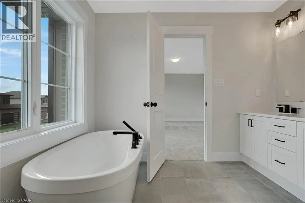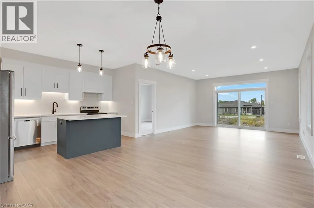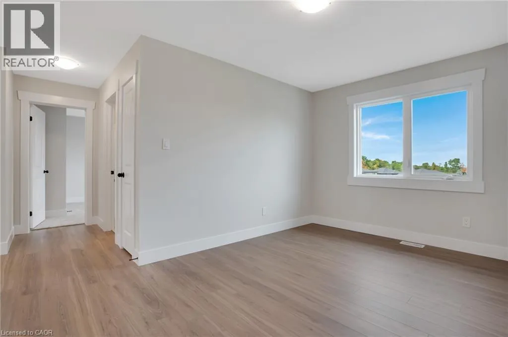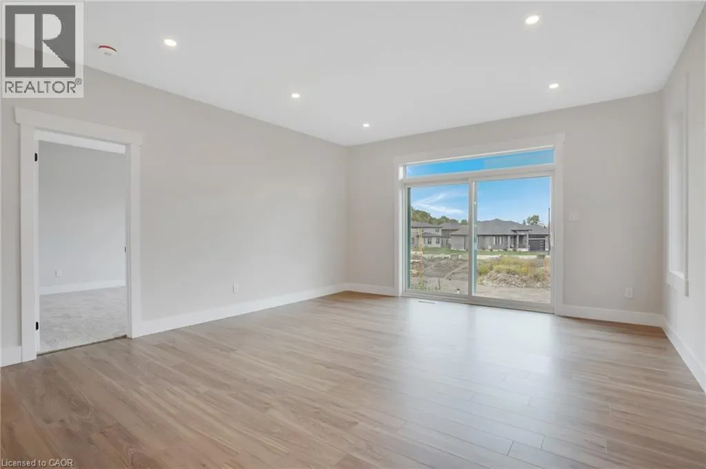 Newman Dr to Moon Cres Welcome to 24 Moon Crescent, Cambridge â a beautifully designed home located in the desirable Westwood Village Preserve community. Set on a unique pie-shaped lot, this newly built property is move-in ready! Featuring 4 bedrooms, 3.5 bathrooms, and multiple upgrades throughout, this home blends modern comfort with thoughtful design. The bright and airy open-concept layout seamlessly connects the kitchen, living, and dining areas â perfect for both everyday living and entertaining. The upgraded contemporary kitchen will feature sleek finishes and generous counter space, truly becoming the heart of the home. A versatile main floor bedroom offers flexibility for guests, a home office, or multigenerational living. Upstairs, youâll find three spacious bedrooms and a cozy family room. The primary suite includes a private ensuite and a walk-in closet, while each additional bedroom offers ample closet space. The unfinished basement provides a blank canvas for your future plans â whether you envision a home gym, media room, or extra living space, the possibilities are endless. Located in a vibrant and family-friendly neighbourhood close to schools, parks, and shopping, 24 Moon Crescent is ready to welcome you home. (id:27476)