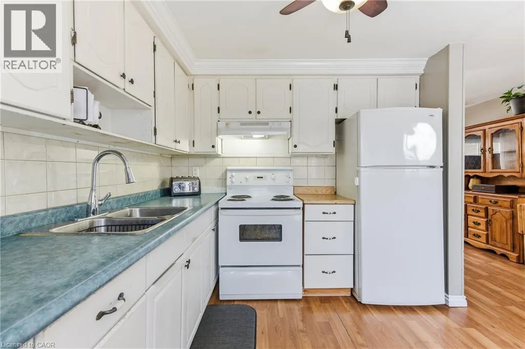 Preston Parkway to Parkview Welcome to a fantastic opportunity to own a freehold townhouse in the City of Cambridge, conveniently located with quick access to Highway 401. This well-maintained home offers 4 bedrooms and 2 full bathrooms, perfect for families or first-time buyers. Enjoy a spacious living room and an eat-in kitchen with a walk-out to a fully fenced rear yard. The finished basement features a recreation room, 4-piece bathroom, and laundry area. Step outside to a lovely private backyard complete with a shed, small garden, and gate access to the greenspace behind. This is your chance to enter the marketâdonât miss it! (id:27476)