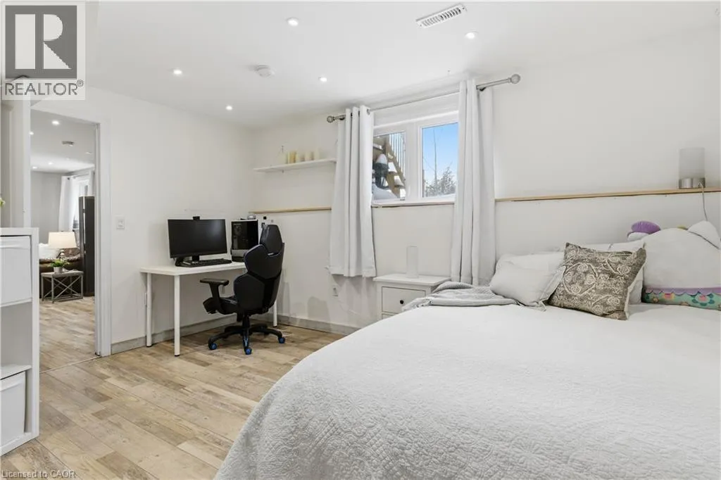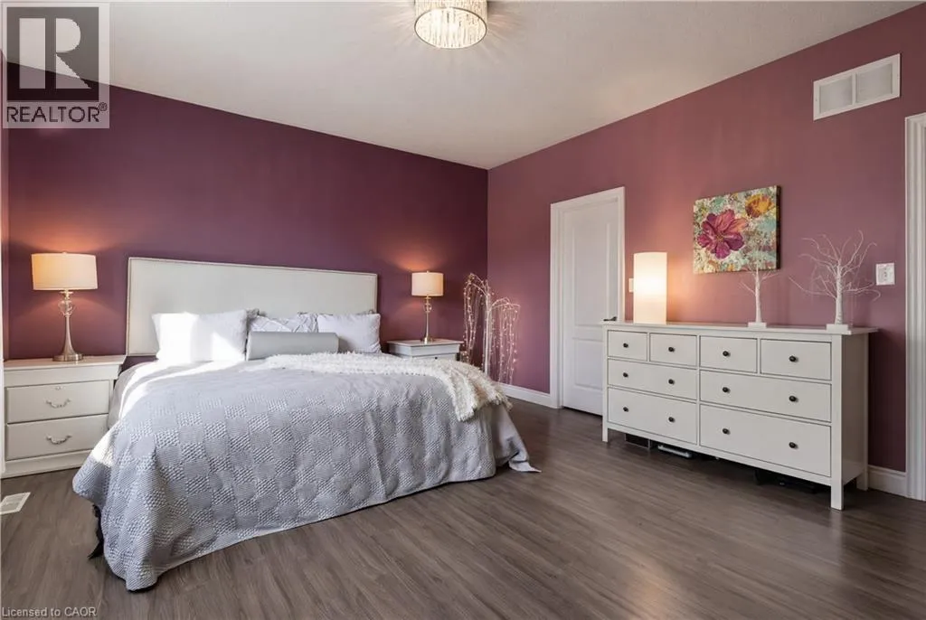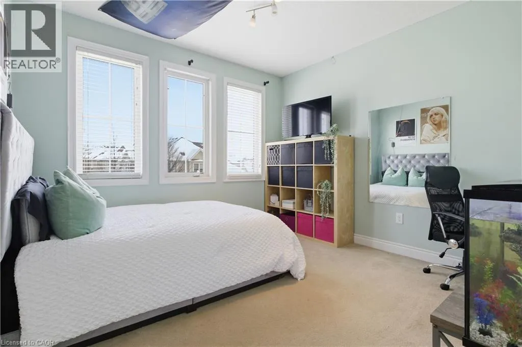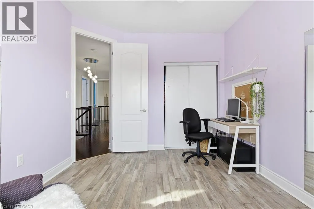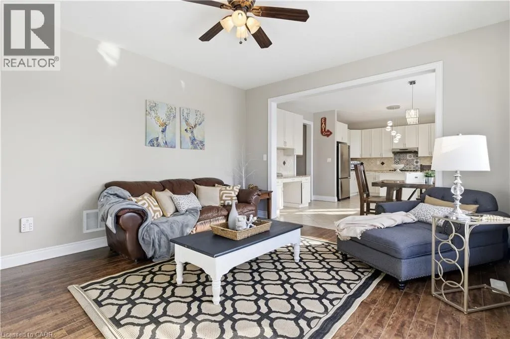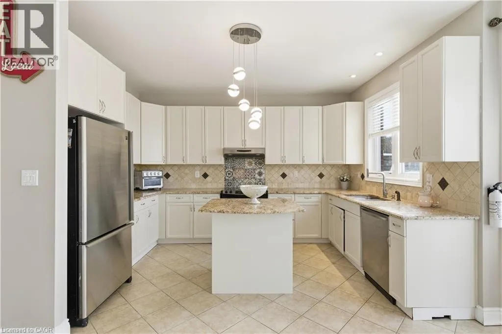 Just minutes to the 401, this spacious Mattamy-built home offers approximately 2,460 square feet of well-designed above-grade living space in the highly sought-after Millpond community of Hespeler, surrounded by prestigious homes. Set on a premium lookout lot backing onto peaceful green space and located just a few doors from the park, this home offers both privacy and convenience. A covered front porch welcomes you into a bright, open-concept layout with large principal rooms and meticulous upkeep throughout. Rare 9-foot ceilings on both the main and second floors are complemented by upgraded 8-foot interior doors. Hardwood floors highlight the living and dining areas, while the eat-in kitchen features a centre island, chefâs desk, and ample cabinetry, ideal for family living and entertaining. The upgraded hardwood staircase with wrought iron spindles leads to the second level, offering four generously sized bedrooms, three with walk-in closets. The primary retreat includes his and hers closets and a spa-inspired ensuite with an upgraded six-foot soaker tub and glass-enclosed shower. Plush upgraded broadloom adds comfort, and the second-floor laundry room includes an upgraded vanity and tub. Walk out from the dinette to a large deck with stairs overlooking scenic greenspace views. The fully fenced backyard also features a concrete patio and an extra-large shed. Additional highlights include central air conditioning, a central vacuum rough-in, water softener, and garage door opener. The partially finished lookout basement offers a large recreation room with pot lights and a spacious fifth bedroom. An exceptional home in a prime location that truly checks all the boxes. **Please note some photos are virtually staged** (id:27476)