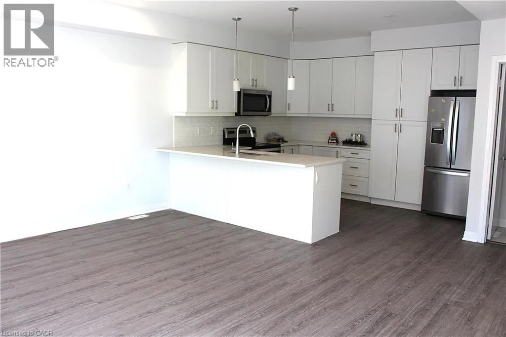 Main street to Nottinghill Dr to Sparrow Ave. Turn onto Sparrow. Located in the sought-after East Galt community, this modern townhome offers over 1,400 sq ft of well-designed living space in a family-friendly setting, close to schools and everyday amenities. The main level features a bright open-concept layout with a stylish kitchen offering ample counter space, a breakfast bar, stainless steel appliances, and seamless flow into the dining and living areas, with sliding doors leading to a private balcony and a convenient powder room. Upstairs, youâll find two good sized bedrooms including a primary suite with a 3-piece ensuite, an additional 4-piece bathroom plus a versatile third bedroom or den with a skylight plus an upper-level laundry. The home includes parking for two vehicles, visitor parking, and numerous builder upgrades such as quartz countertops, upgraded lighting, pot lights etc.all contributing to its contemporary appeal and functional layout. (id:27476)