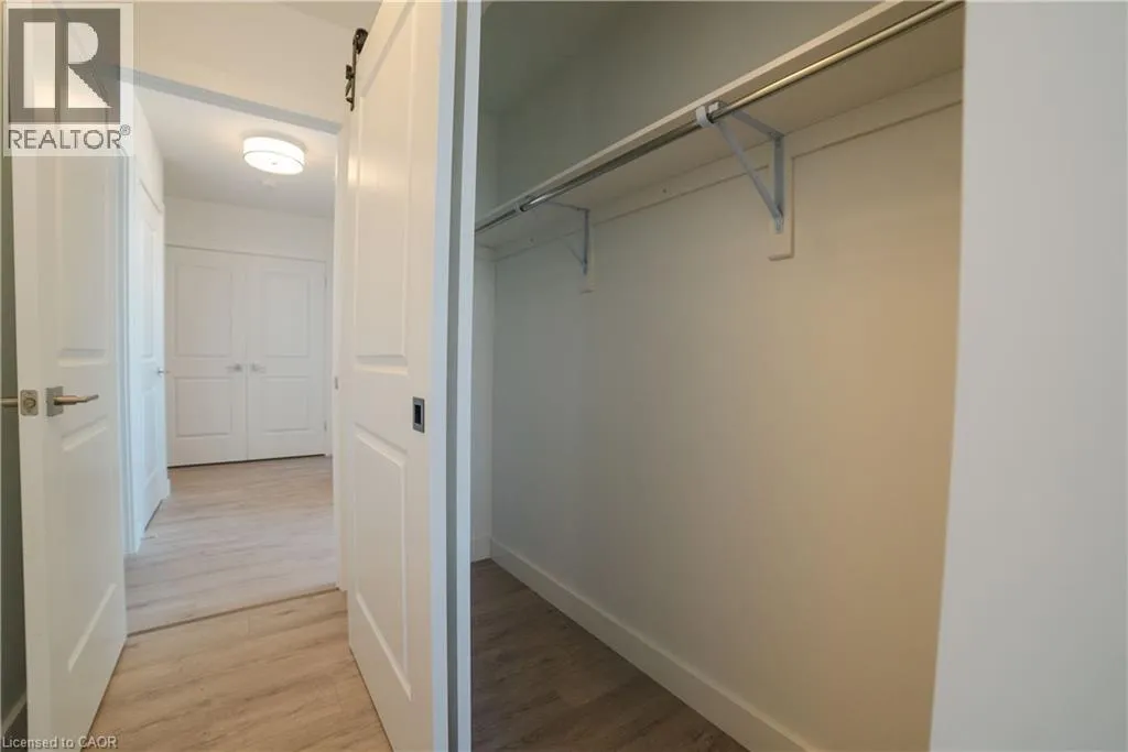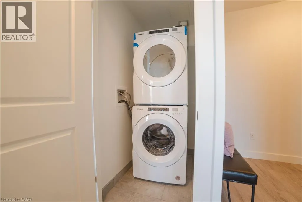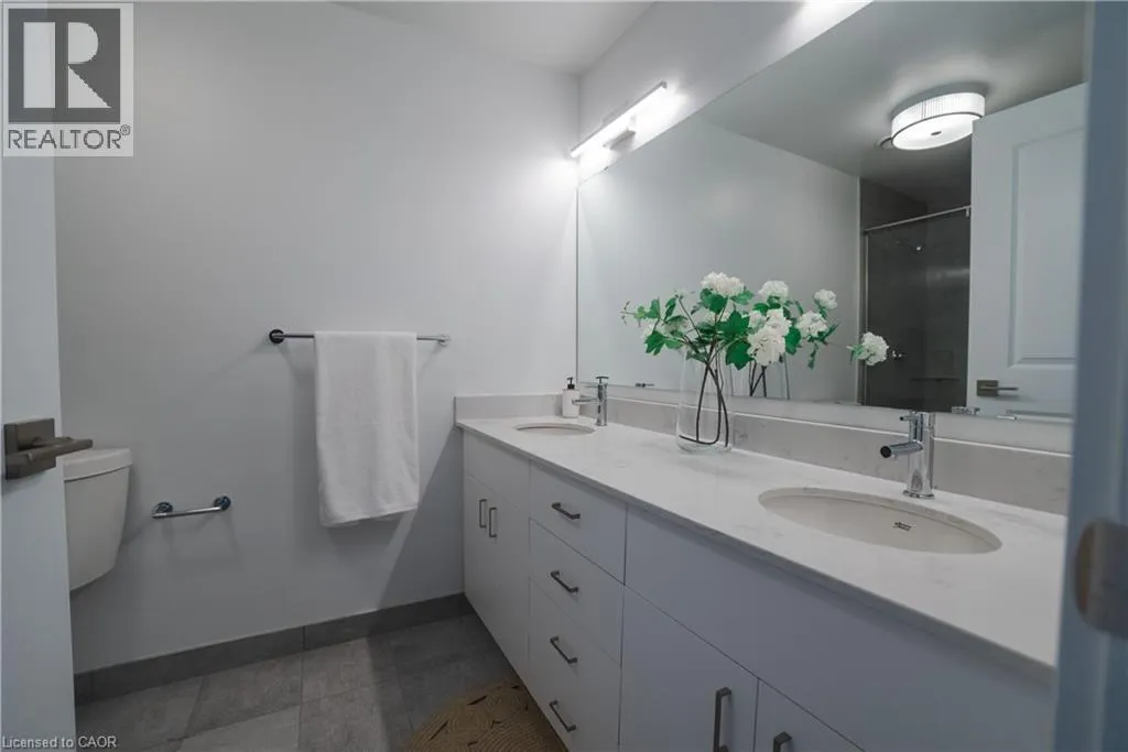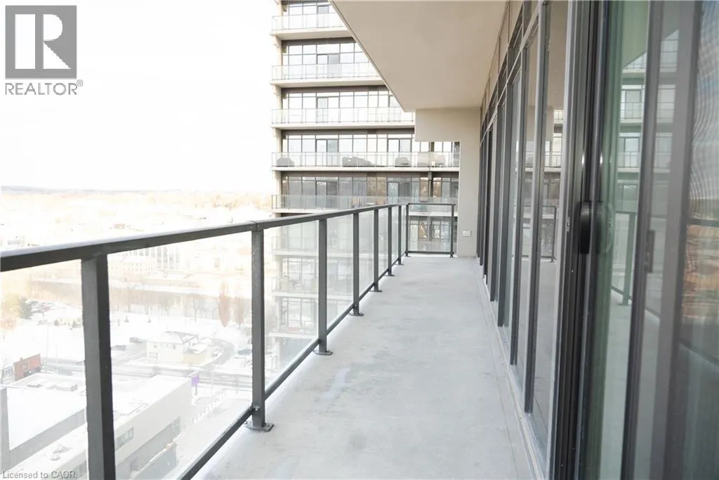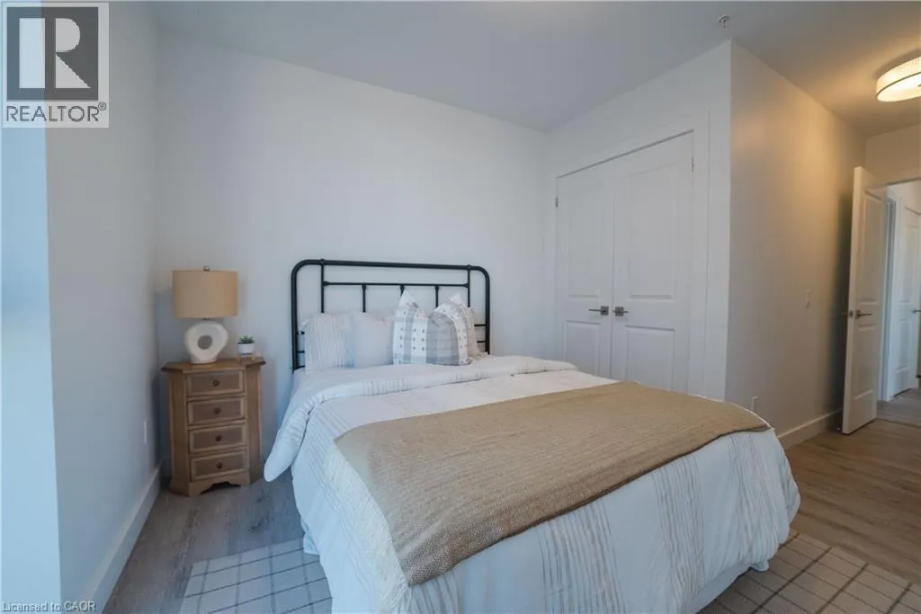 St Andrews St to Glebe St Located in the heart of historic downtown Galt, this beautiful condo is part of the vibrant Gaslight Districtâa new center for residential, commercial, retail, dining, art, and culture. Here, life, work, and leisure come together to create an unparalleled living experience. This impressive unit has nine-foot painted ceilings, wide-plank light flooring, and premium finishes throughout. The spacious kitchen features modern cabinetry with designer hardware, quartz countertops, a tile backsplash, an oversized island with an under-mount sink and gooseneck faucet, and stainless steel appliances. The open-concept design flows seamlessly from the kitchen into a generous living and dining area, ideal for entertaining. Floor-to-ceiling windows and access to a large balcony let natural light flood the space. The primary suite offers his & her closets, glass doors leading to the balcony, and a luxurious four-piece ensuite with dual sinks and a walk-in shower. A second bedroom with floor-to-ceiling windows, a four-piece bath with a tub and shower combo, and in-suite laundry complete this premium unit. This condo also includes two parking spaces for your convenience. Residents enjoy access to an array of amenities, including a welcoming lobby with seating, secure video-monitored entry, a fitness area with a spacious yoga and Pilates studio, a games room with billiards, ping-pong, and a large TV, a catering kitchen, a private dining room, and a cozy library. The lounge opens onto a spacious outdoor terrace overlooking Gaslight Square, featuring multiple seating areas, pergolas, fire pits, and a BBQ area for outdoor relaxation. (id:27476)