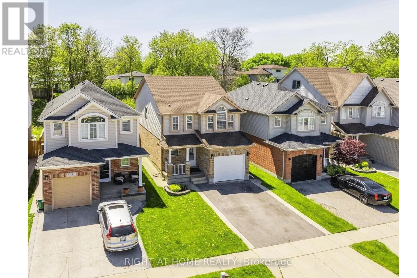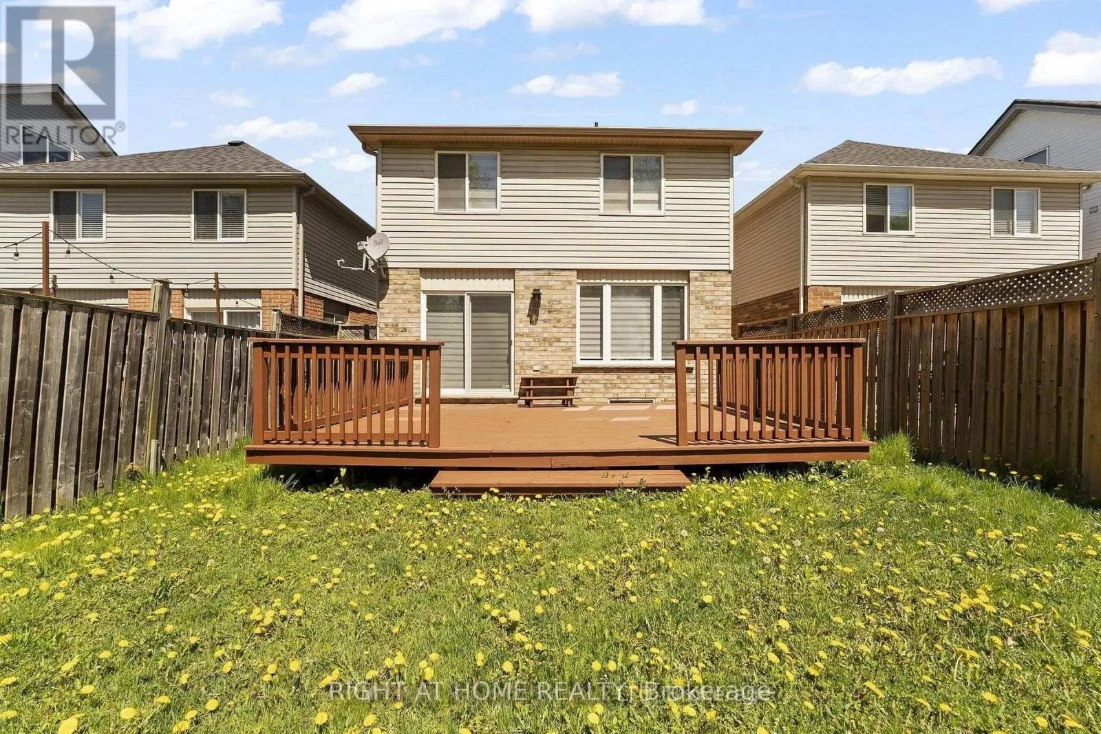 Chrysler Cres/ New Port Dr Move-In Ready - Don't Miss This One! Welcome to this excellent family home in the heart of one of Cambridge's most convenient and family-friendly neighbourhoods, Lang's Farm. This charming, fully renovated 3-bedroom, 3-bathroom residence showcases a clean, modern aesthetic throughout. Professionally painted and thoughtfully updated, the home features stainless steel appliances (gas stove, dishwasher, fridge, and range hood), new flooring, new blinds, LED lighting, and fully renovated bathrooms with quartz countertops and a glass sliding stand-up shower, offering a luxurious retreat.Enjoy outdoor living with a concrete pathway leading to a wooden deck in the spacious, fully fenced backyard-perfect for summer entertaining. The attached garage and double driveway provide ample parking.The home has no rental items. Conveniently located close to HWY 401, parks, schools, banks, and major amenities. Basement apartment not included. (id:27476)