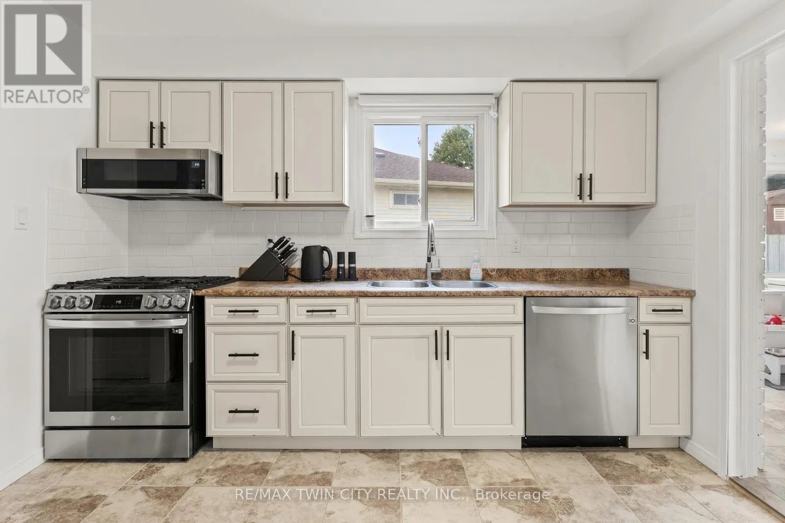 Cross Streets: JOANNA. ** Directions: GRAND RIDGE DR. TO JOHANNA DR. TO ANGELA CRES. Welcome to 36 Angela Crescent, Cambridge! Tucked away on a quiet mini cul-de-sac in desirable West Galt, this charming home offers peace and privacy with very little traffic. Thoughtfully updated over the past five years, it features mostly newer windows, roof (2018), furnace (2018), replaced kitchen and bathrooms, updated flooring, new deck, modern light fixtures, fresh paint, and newer appliances. This home was the original model home and the 1 car garage was used as their sales office which has now been converted to the 4th bedroom which could easily be converted back to the garage. The finished basement provides additional living space, perfect for family, hobbies, or guests which also includes the laundry room and added storage. Enjoy the convenience of parking for four cars, a welcoming front deck ideal for morning coffee or evening drinks, and a prime location close to schools, parks, and scenic trails. Local shopping is just 3 minutes away, and downtown Galt is a quick 5-minute drive. This home truly combines comfort, updates, and an excellent location. (id:27476)